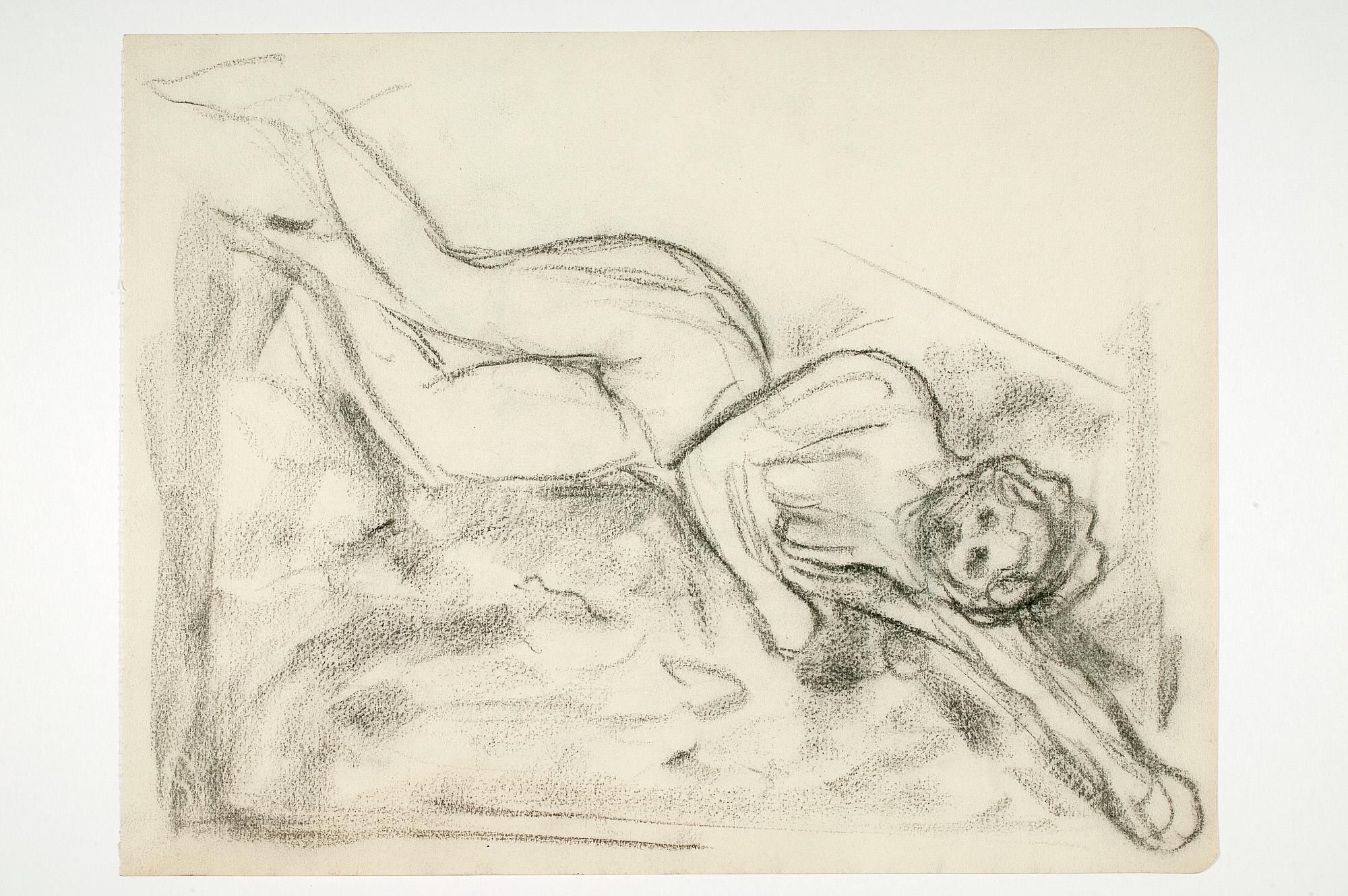 Comment:Det er vanskelig å tidfeste de raske croquis'ene i denne skisseboken, men en løs tegning som stammer fra samme bok viser trolig tigertemmeren Sawade med tigere på Cirkus Hagenbeck. Den har en ganske sikker datering til 1916, og vi velger derfor å gi skisseboken samme datering. (MB)