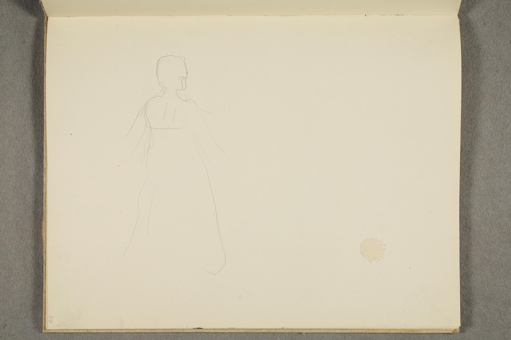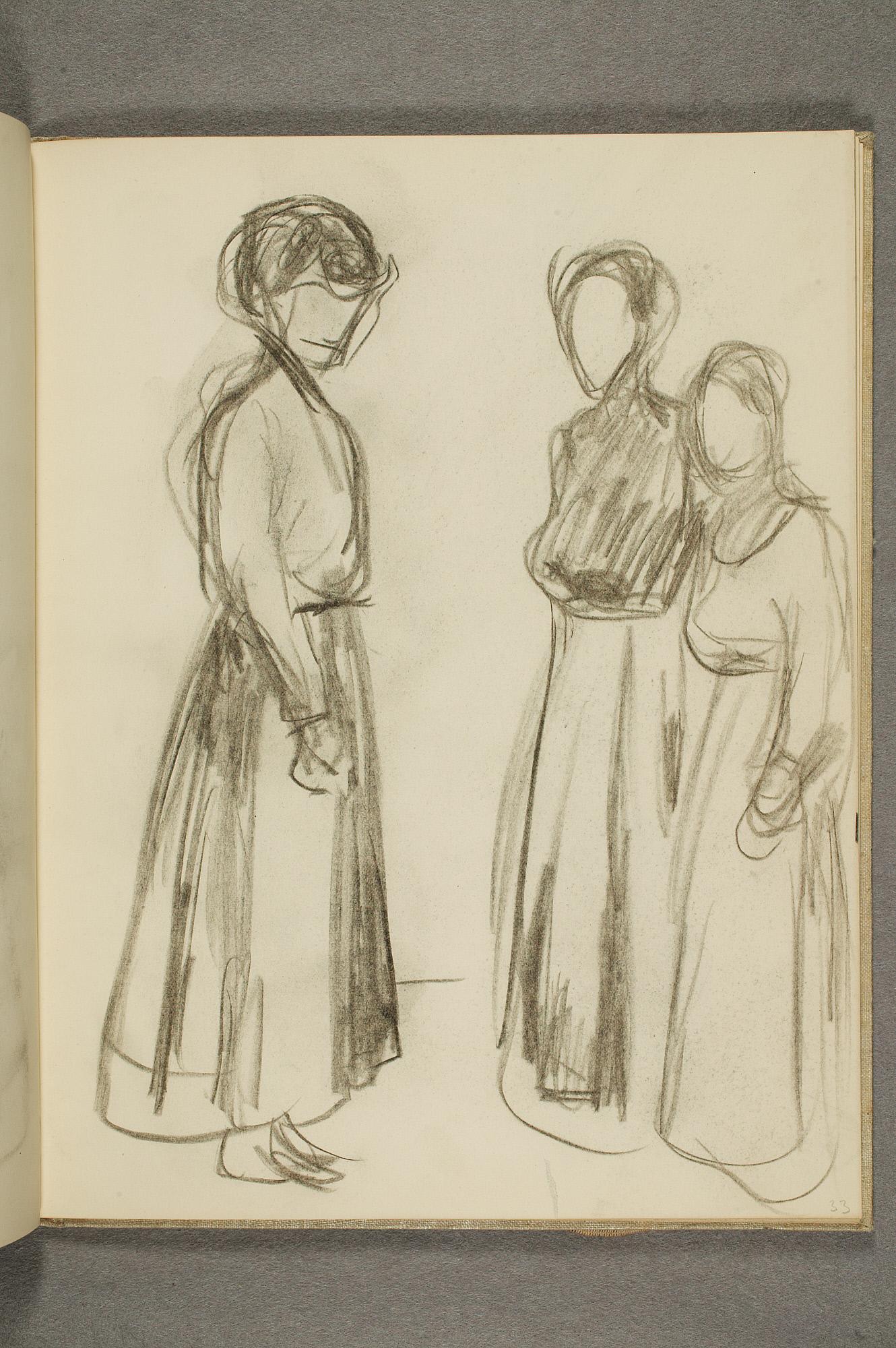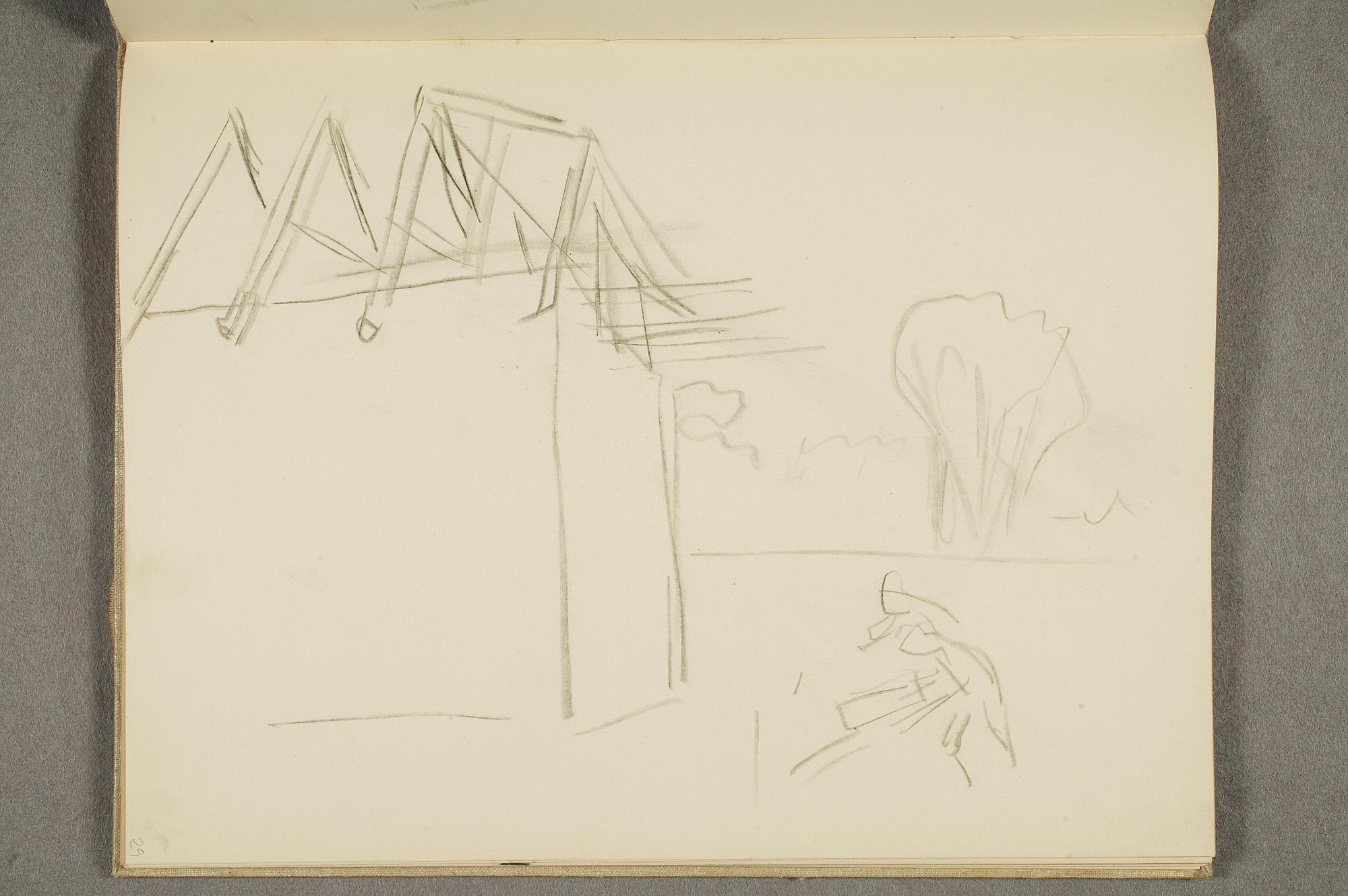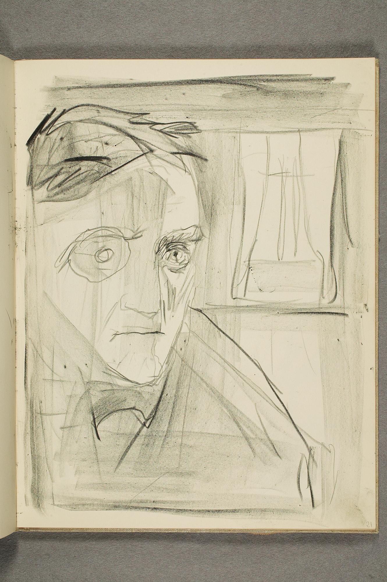 Comment:Flere motiver i denne skisseboken, bl.a. tegningene med kabaretscener, synes å ha tilknytning til 1916, mens andre er av senere dato. Hildur Christensen begynte hos Munch som husholderske i 1923, og ble også benyttet som modell. Hennes karakteristiske skikkelse er lett å kjenne igjen i akttegningen på side 38. Skisseboken var trolig i bruk i tidsrommet 1916–25. (PP)
