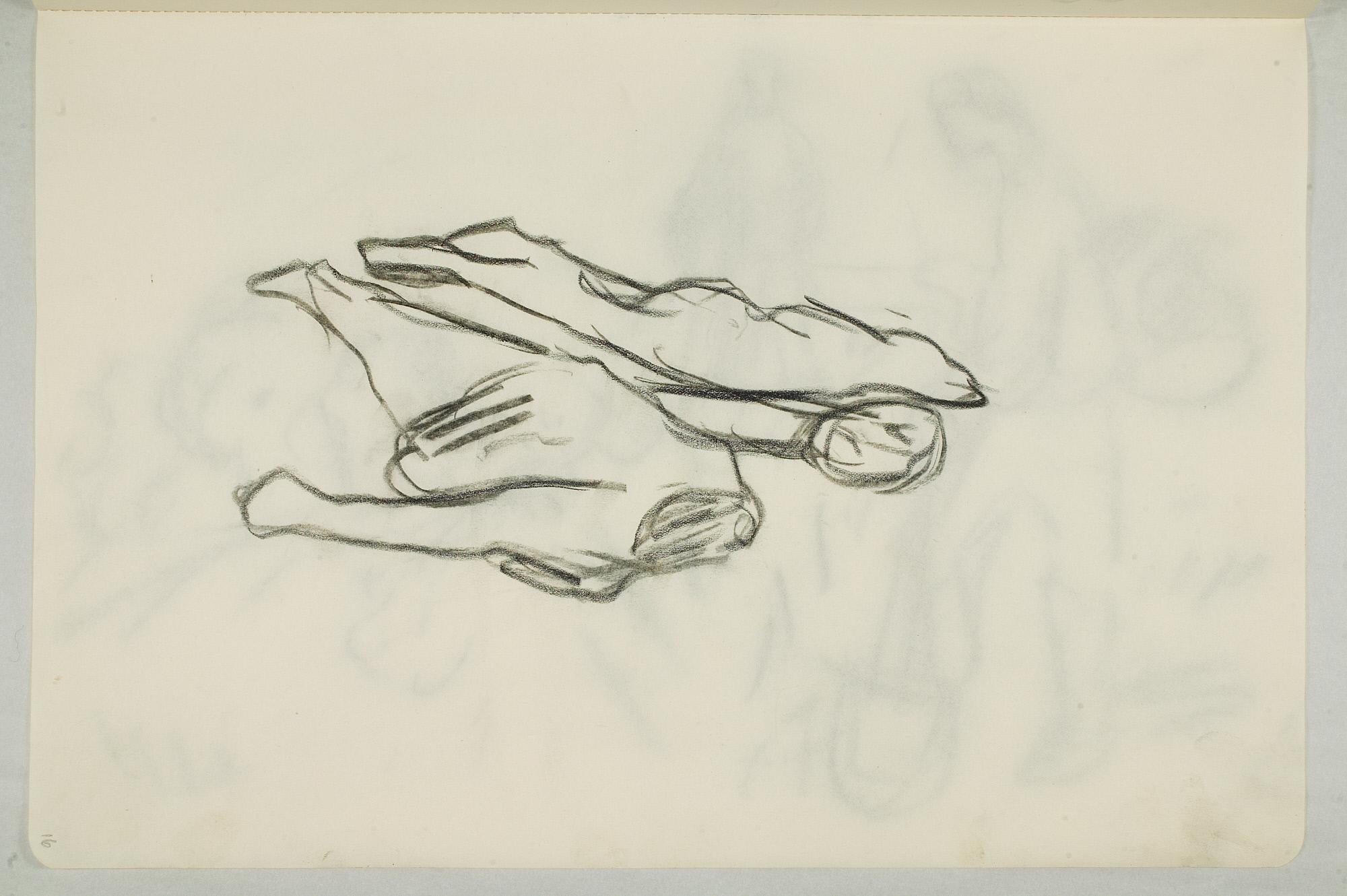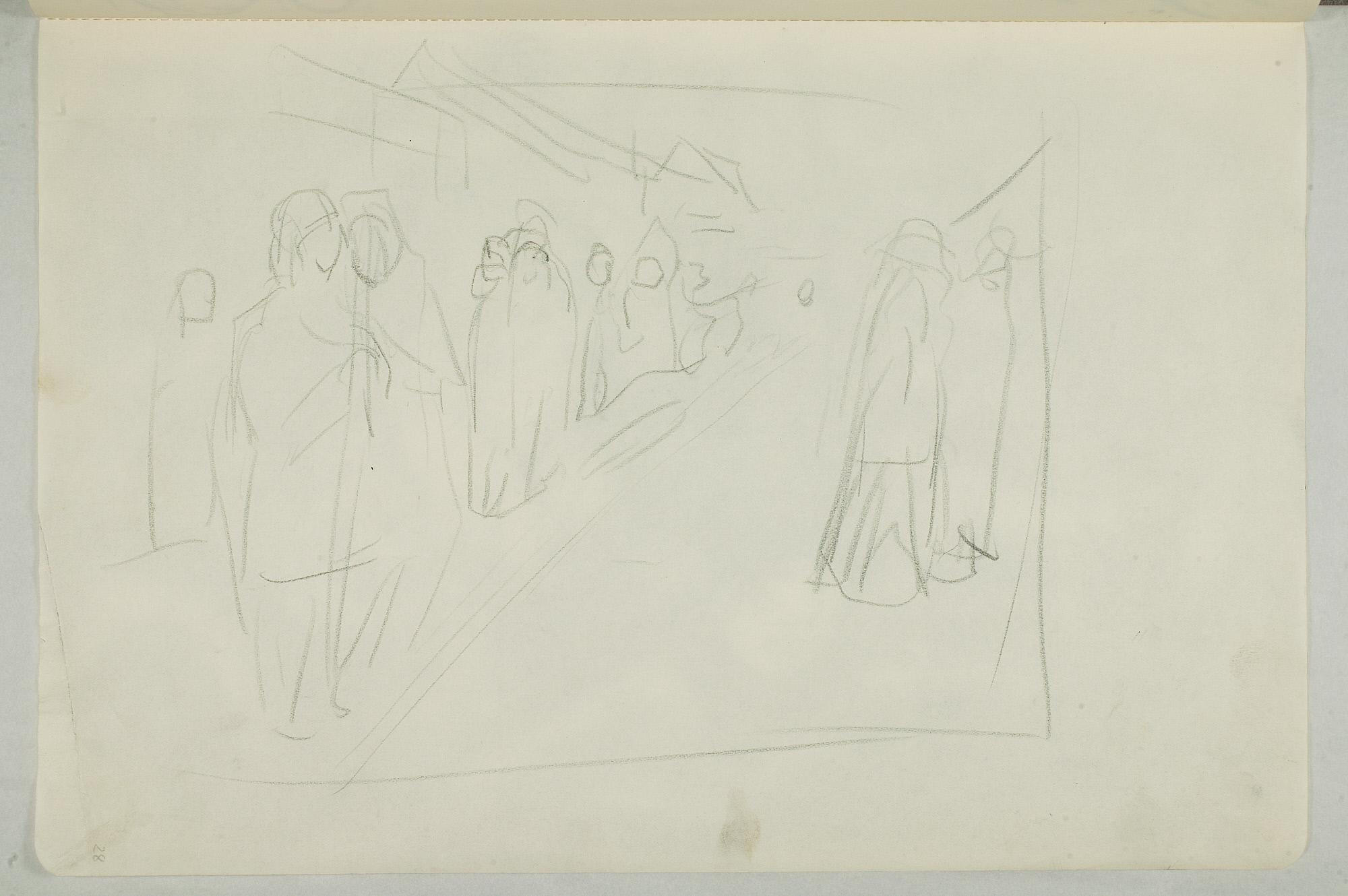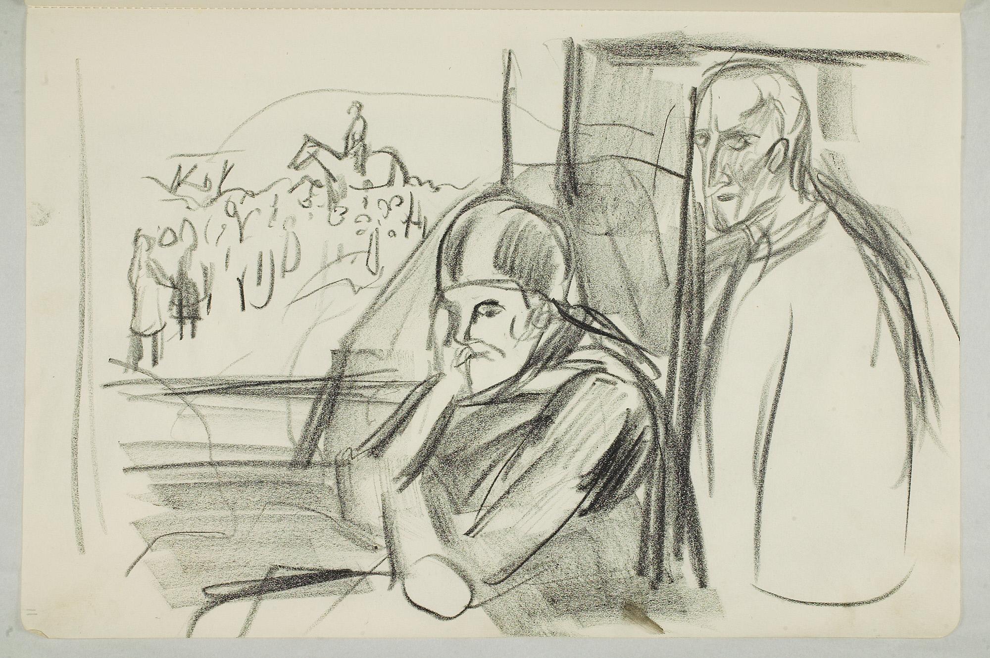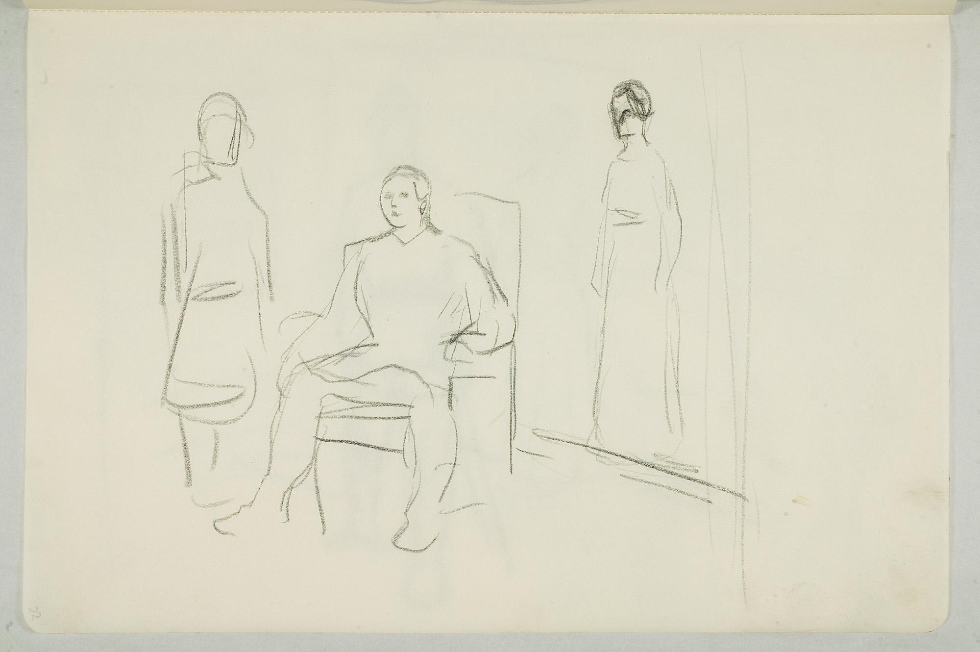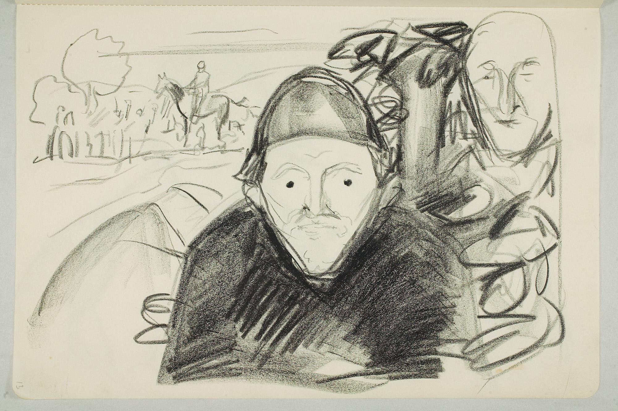 Comment:Det er naturlig å se de mange tegningene med motiv fra Ibsens "Kongsemnene" i sammenheng med serien av tresnitt med samme motiv som Munch utførte i 1917. Skisseboken gis derfor samme datering. (MB)