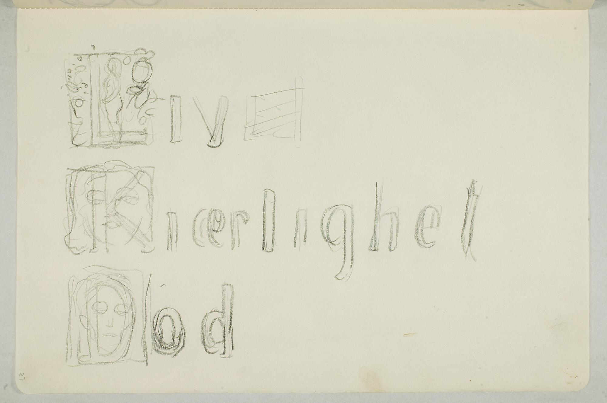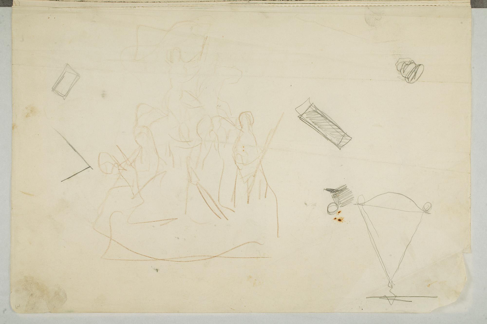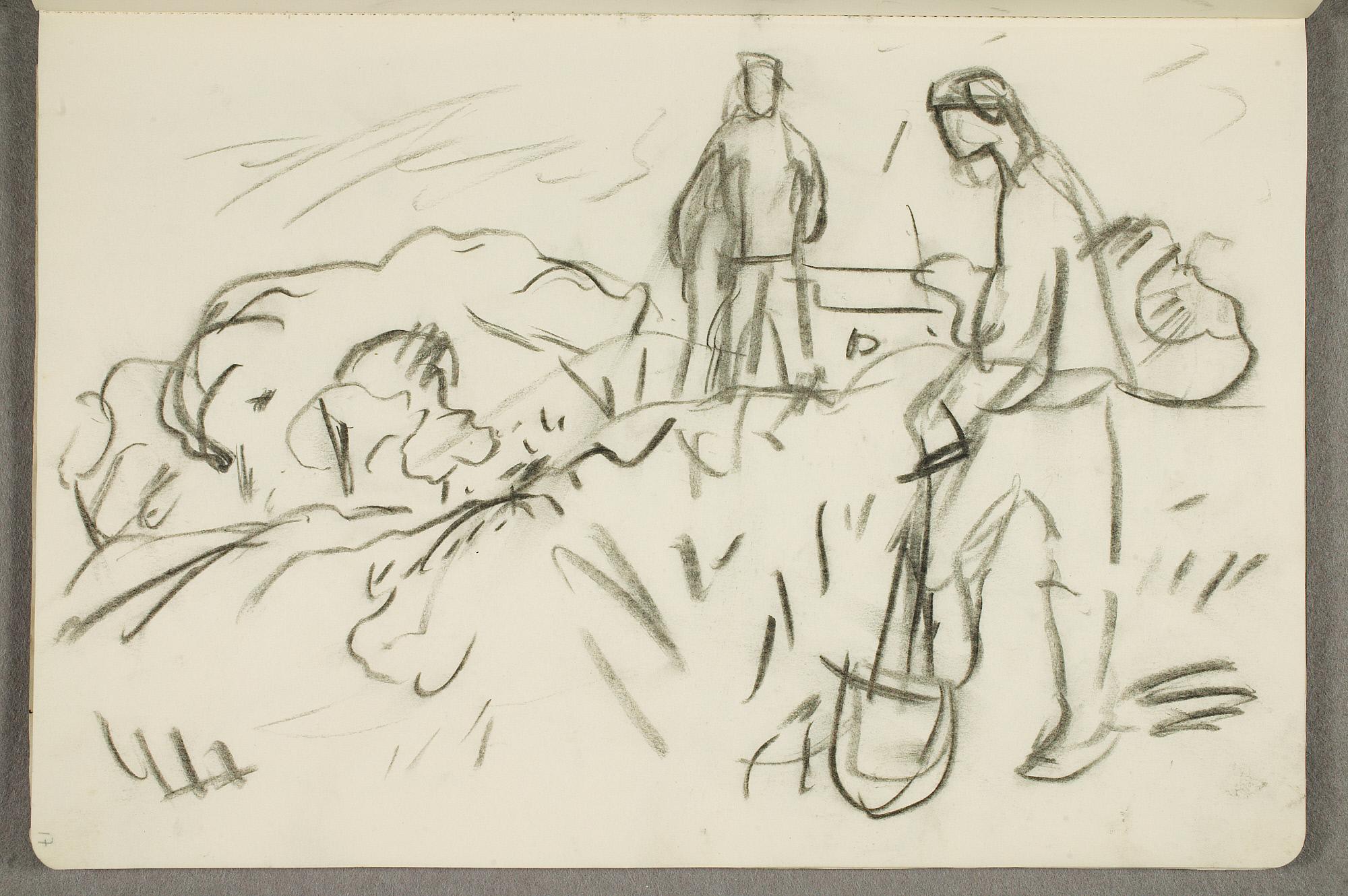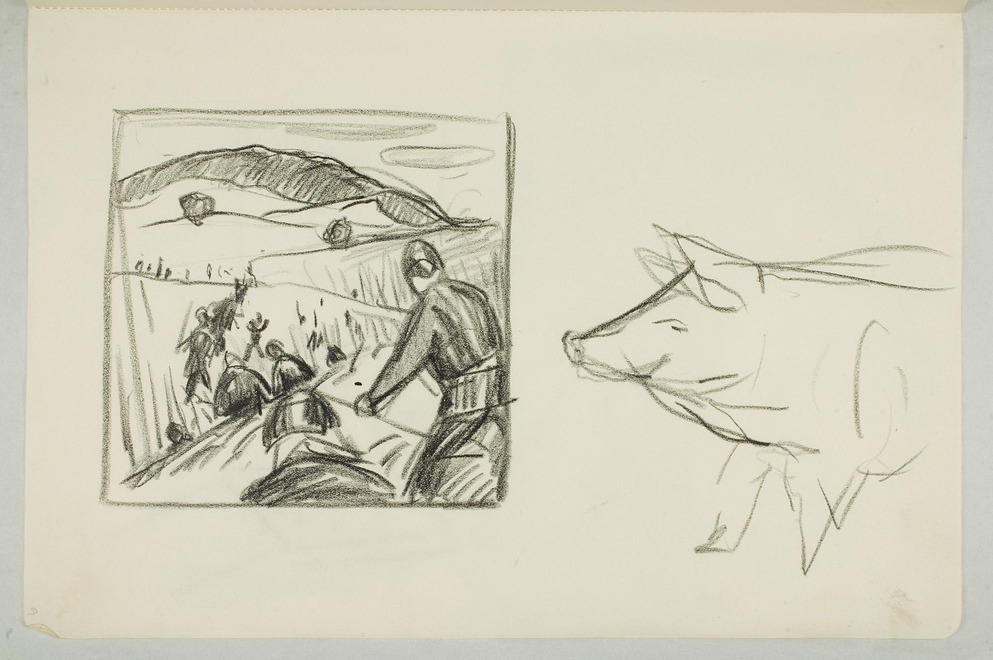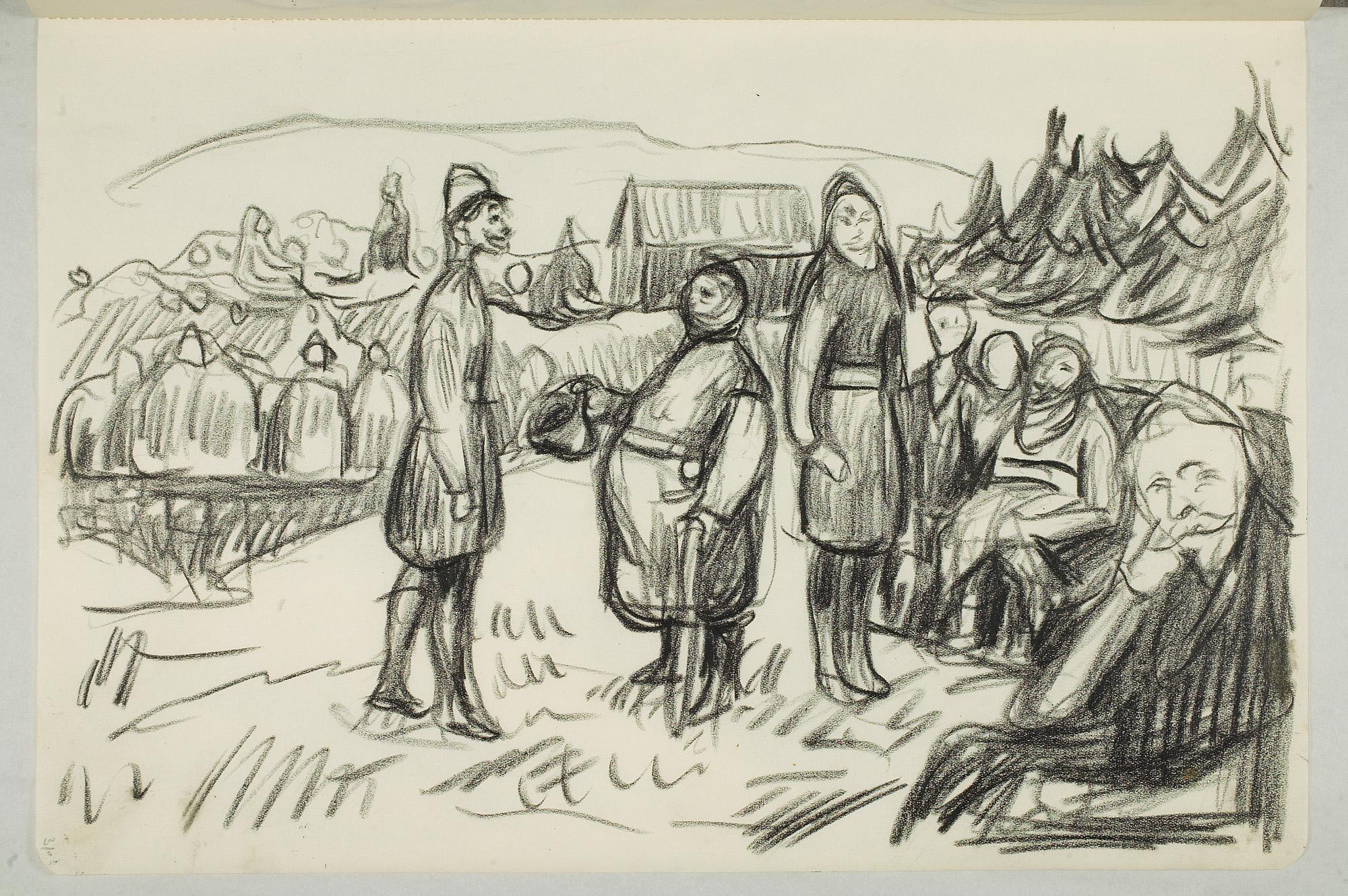 Comment:Det er naturlig å se de mange tegningene med motiv fra Ibsens "Kongsemnene" i sammenheng med serien av tresnitt med samme motiv som Munch utførte i 1917. Skisseboken gis derfor samme datering. (MB)