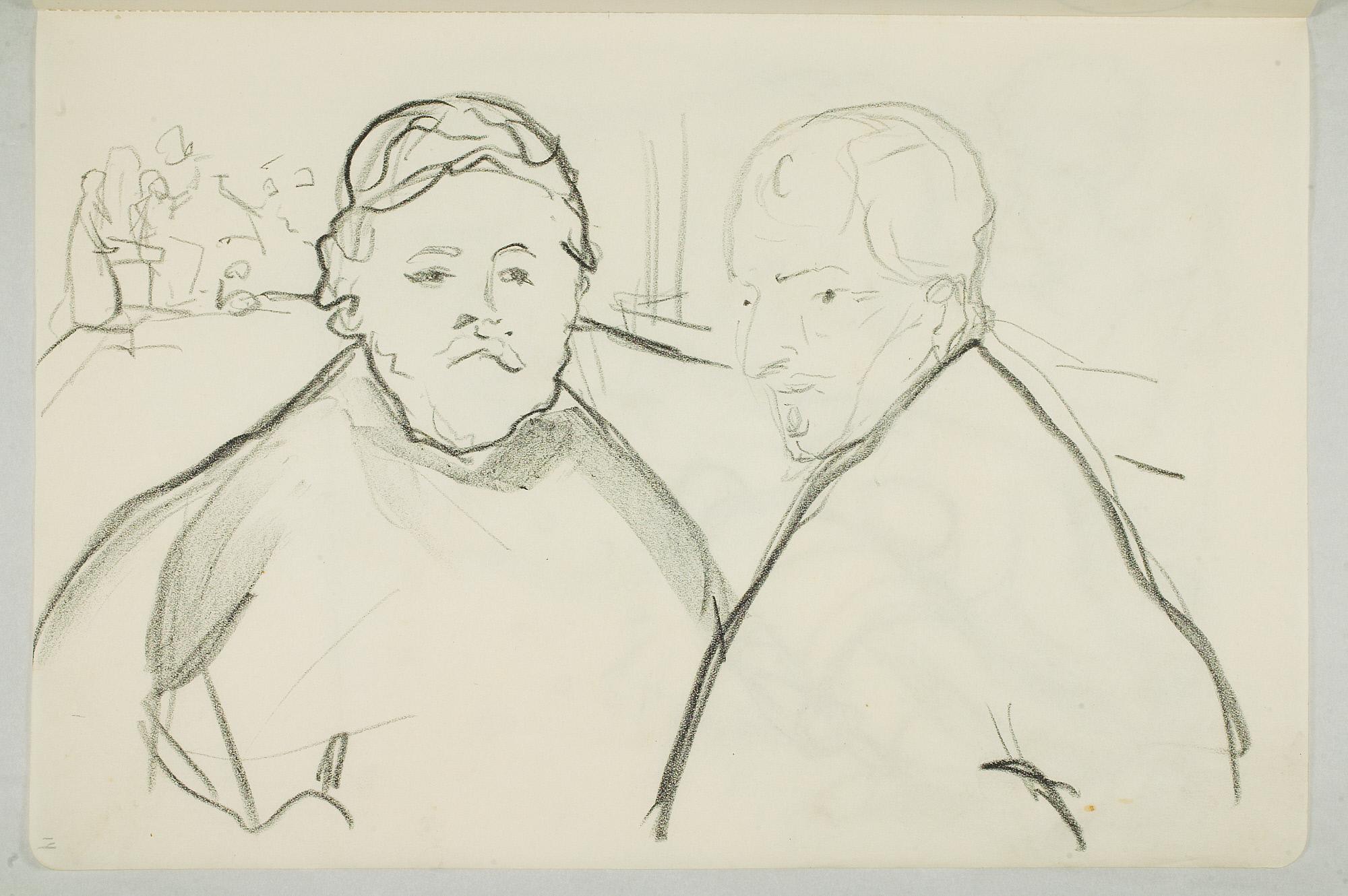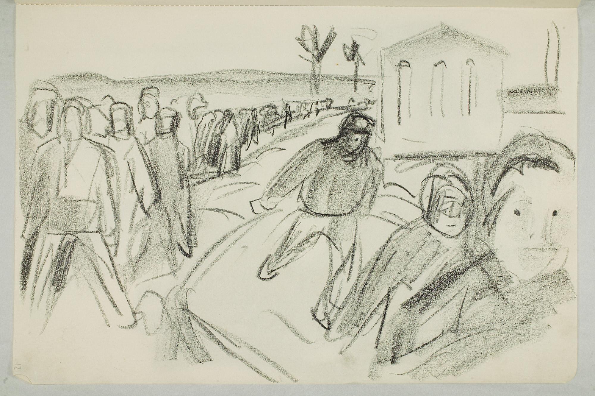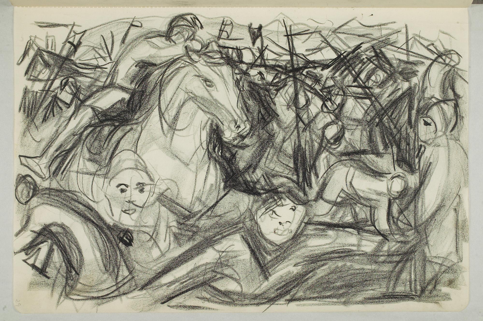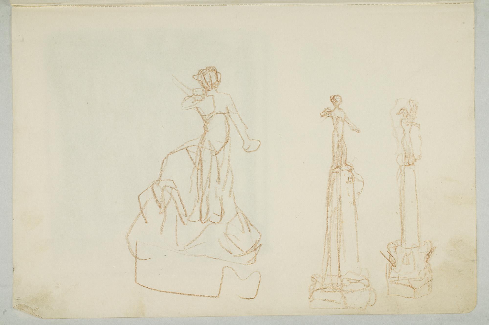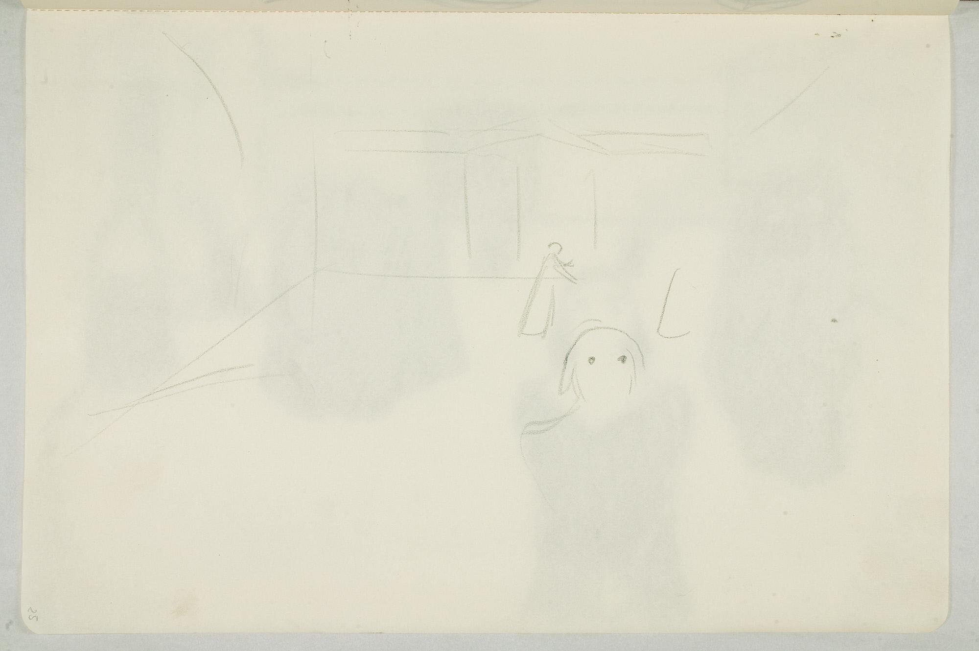 Comment:Det er naturlig å se de mange tegningene med motiv fra Ibsens "Kongsemnene" i sammenheng med serien av tresnitt med samme motiv som Munch utførte i 1917. Skisseboken gis derfor samme datering. (MB)