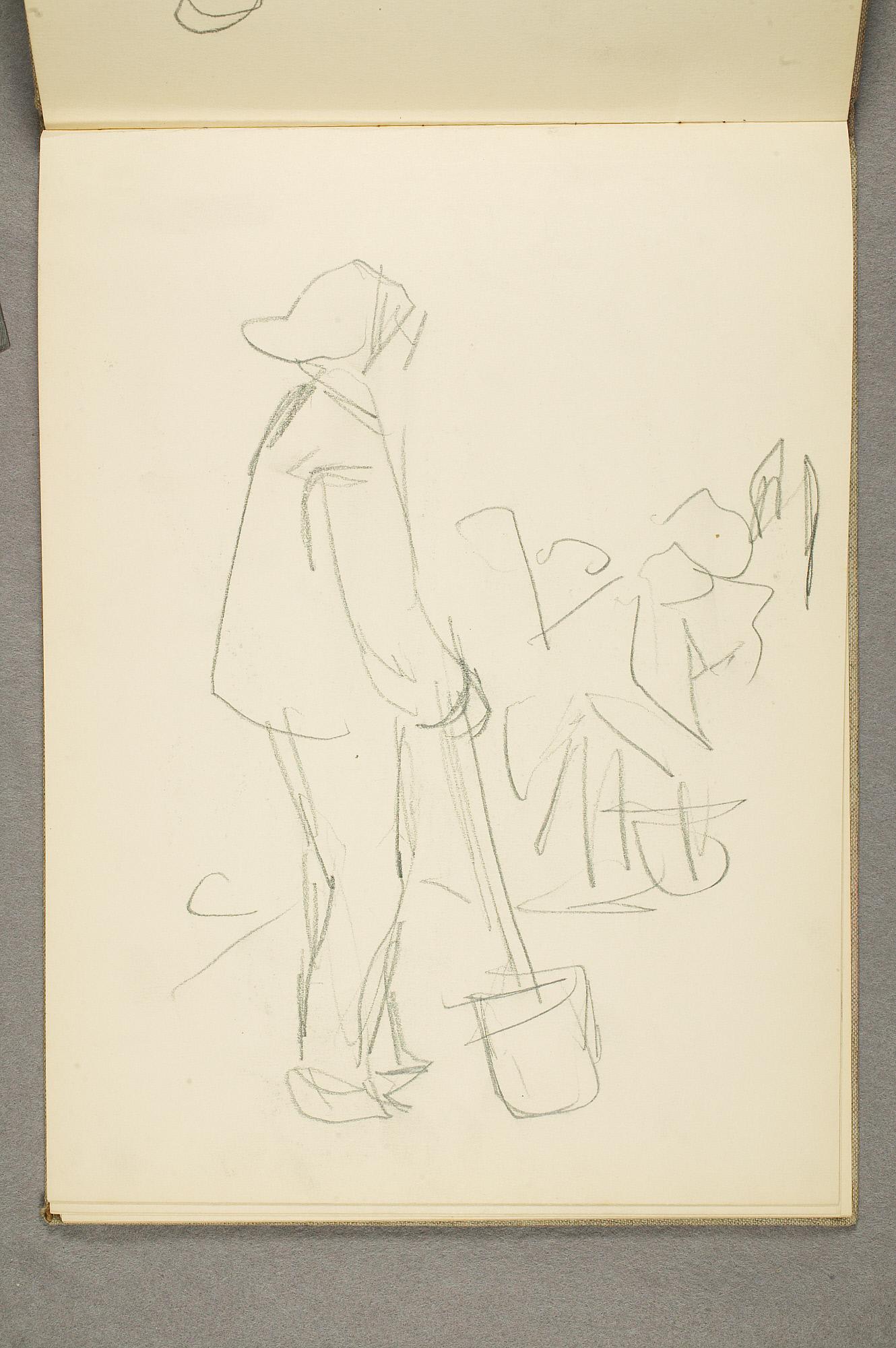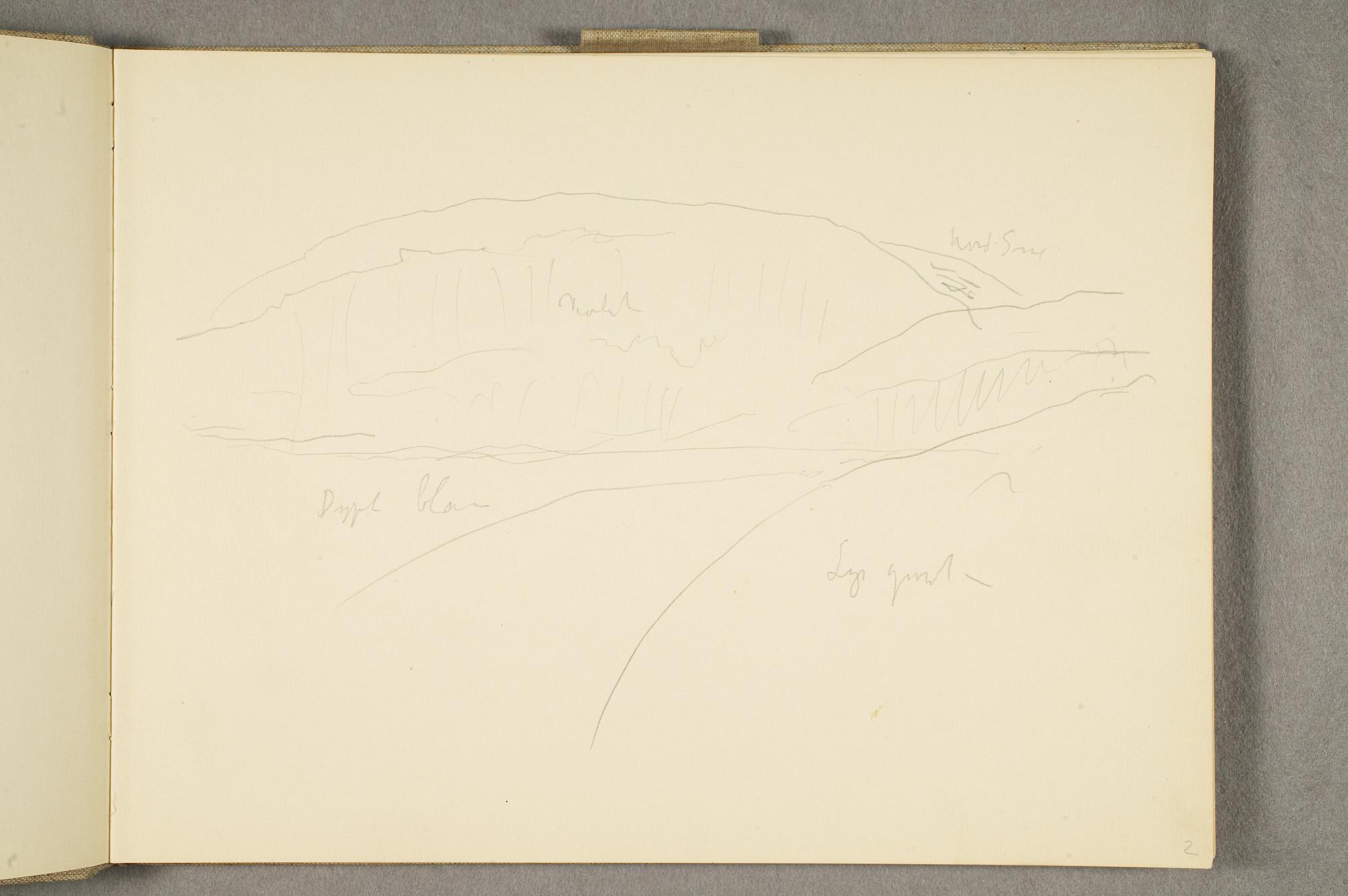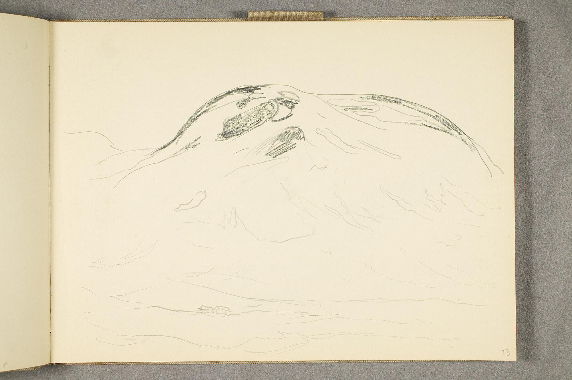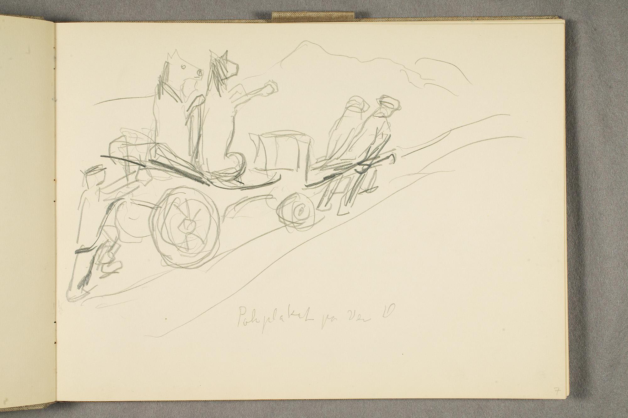Comment:The first part of this sketchbook contans sketches and watercolours made during a travel from Bergen to Kragerø in June 1909. He travelled by boat, horse, and carriage and part of the way on the recently opened Bergen railway, and his travelling companion was his cousin Ludvig Ravensberg, who kept a detailed diary of the tour. Among other things, he writes about the drive by horse and carriage between Eide and Voss on Thursday, 1 July: "We had a wonderful drive. M was in good spirits the whole time and made a lot of brilliant remarks. He wanted to show me a number of things and demonstrated them with drawings, all of which were excellent, because, said M, this is how art was originally … created."