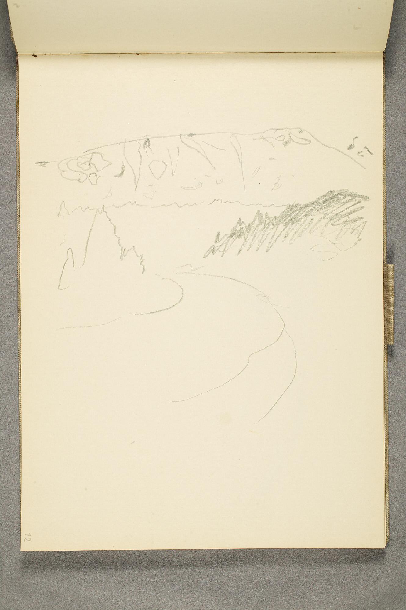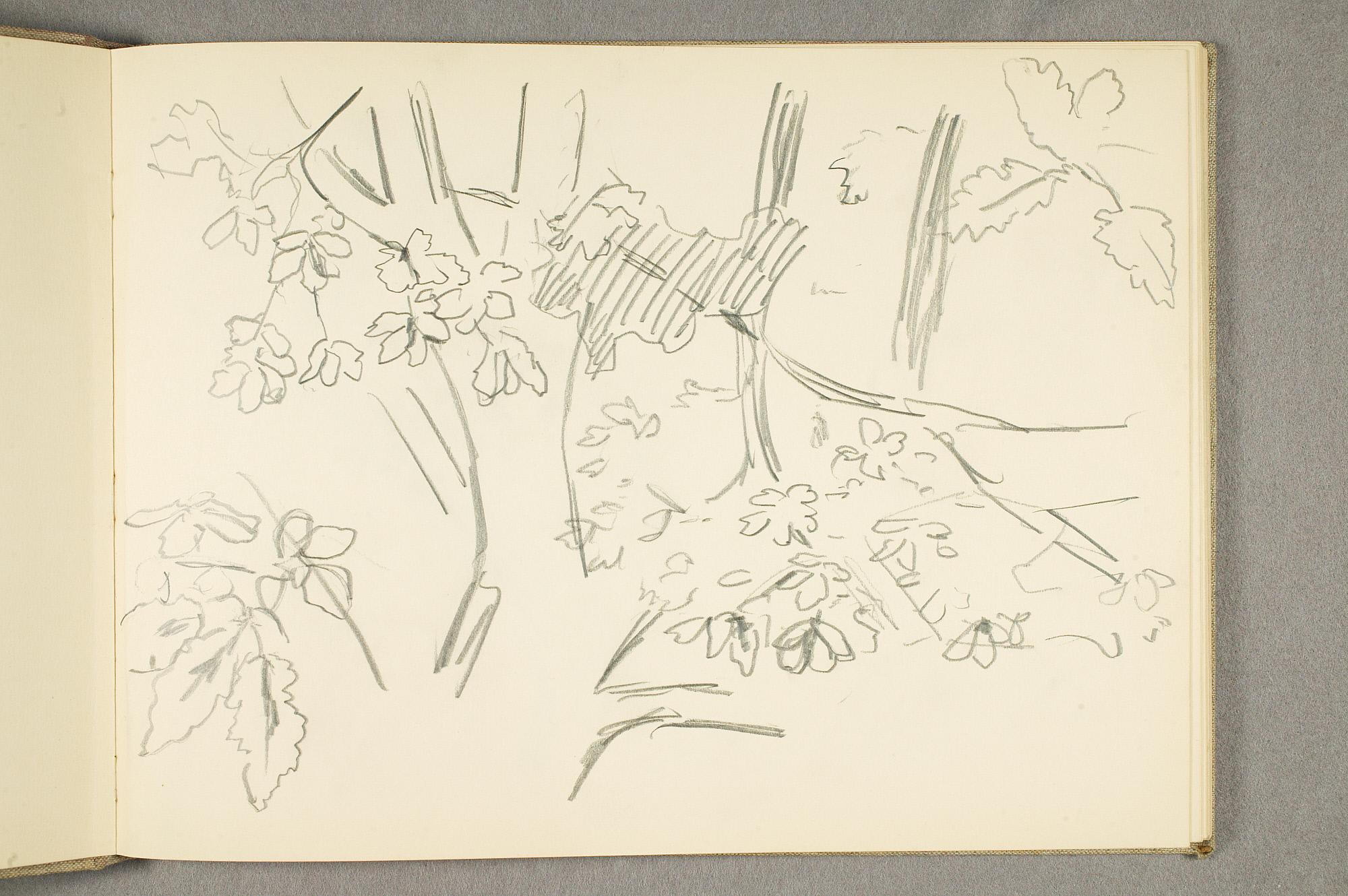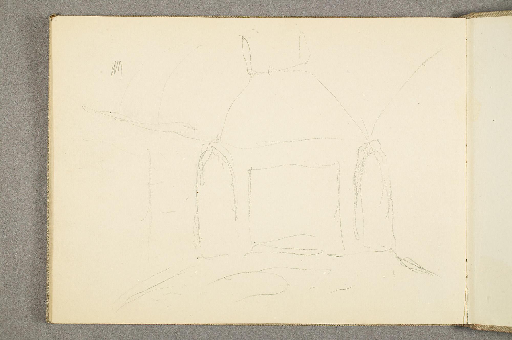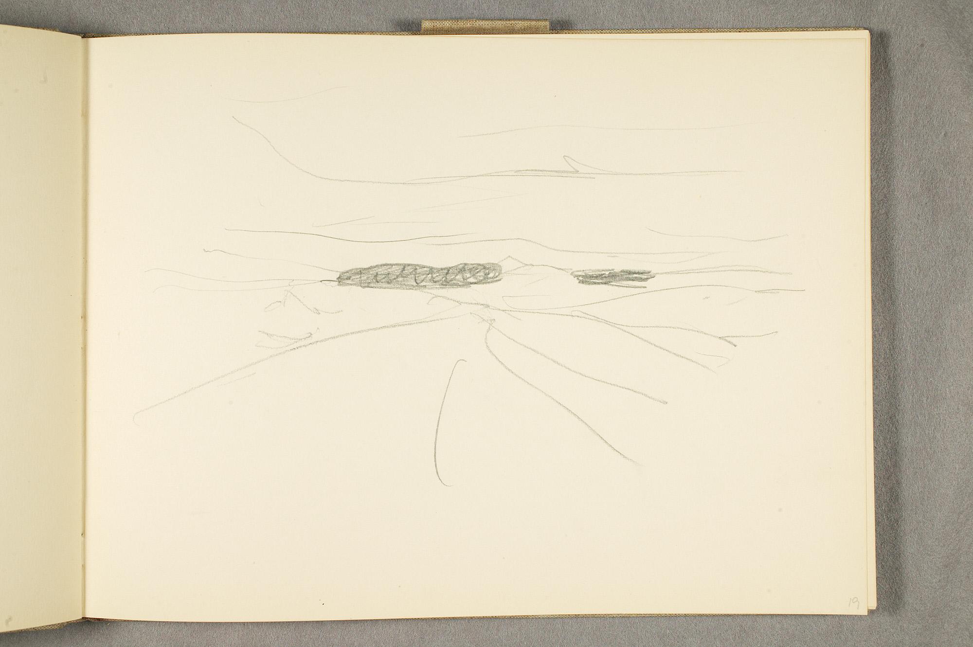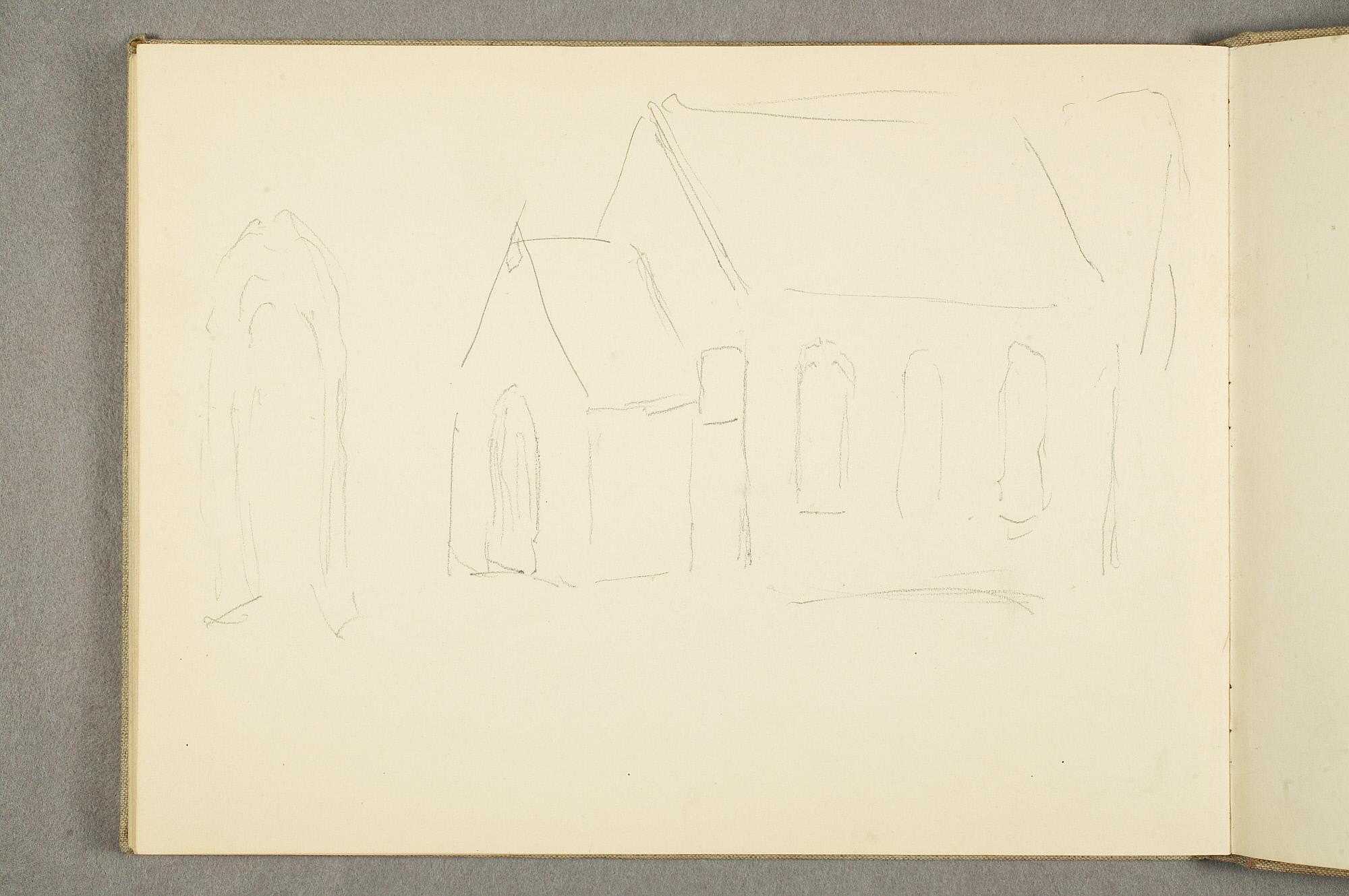 Comment:The first part of this sketchbook contans sketches and watercolours made during a travel from Bergen to Kragerø in June 1909. He travelled by boat, horse, and carriage and part of the way on the recently opened Bergen railway, and his travelling companion was his cousin Ludvig Ravensberg, who kept a detailed diary of the tour. Among other things, he writes about the drive by horse and carriage between Eide and Voss on Thursday, 1 July: "We had a wonderful drive. M was in good spirits the whole time and made a lot of brilliant remarks. He wanted to show me a number of things and demonstrated them with drawings, all of which were excellent, because, said M, this is how art was originally … created."