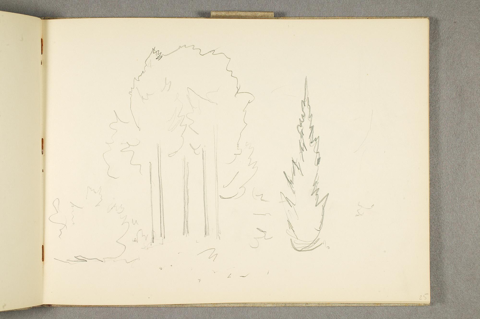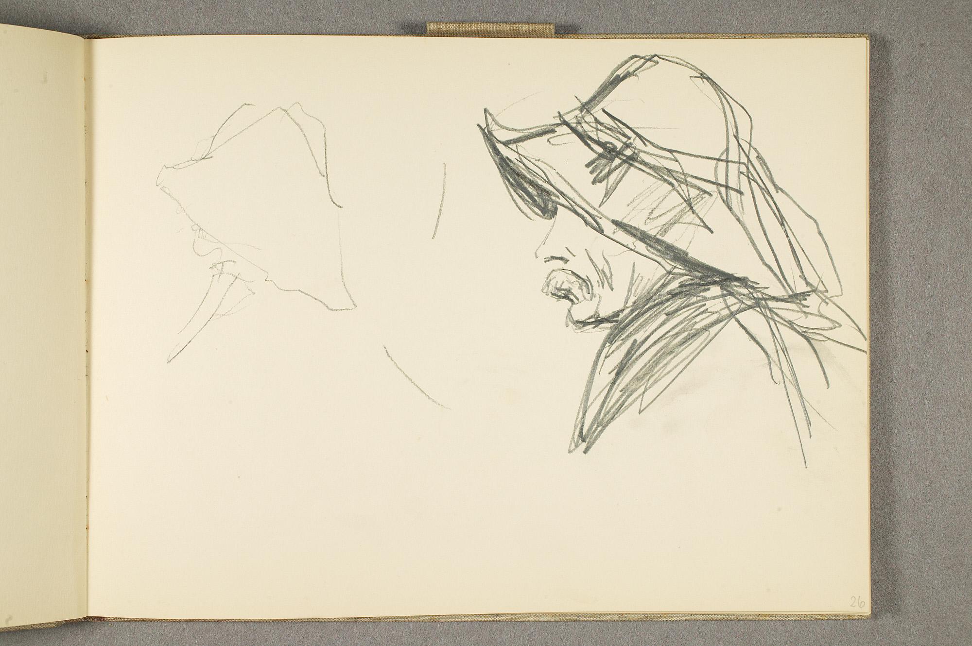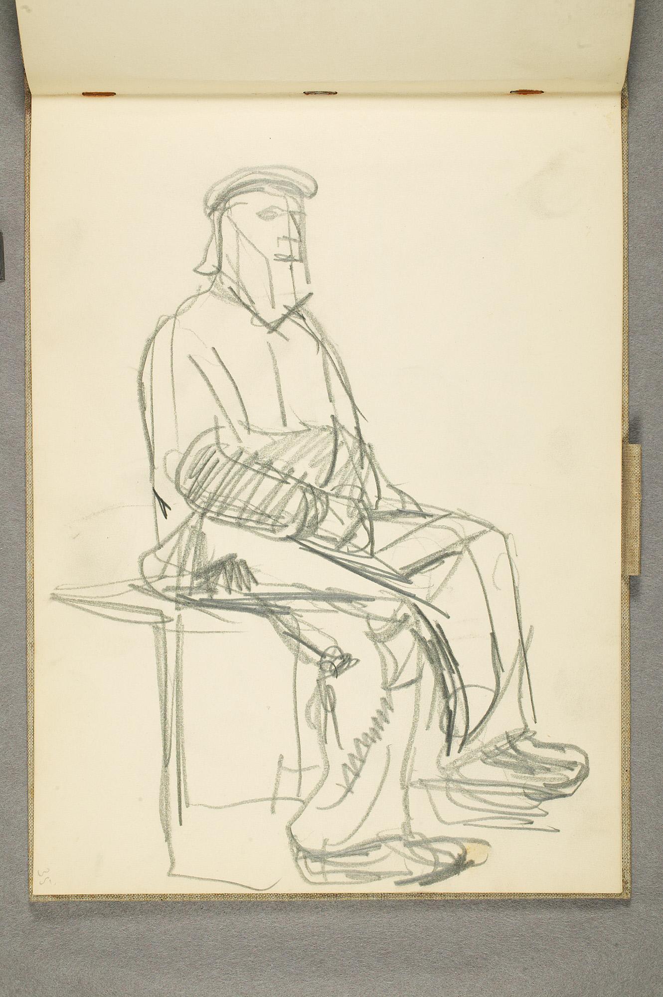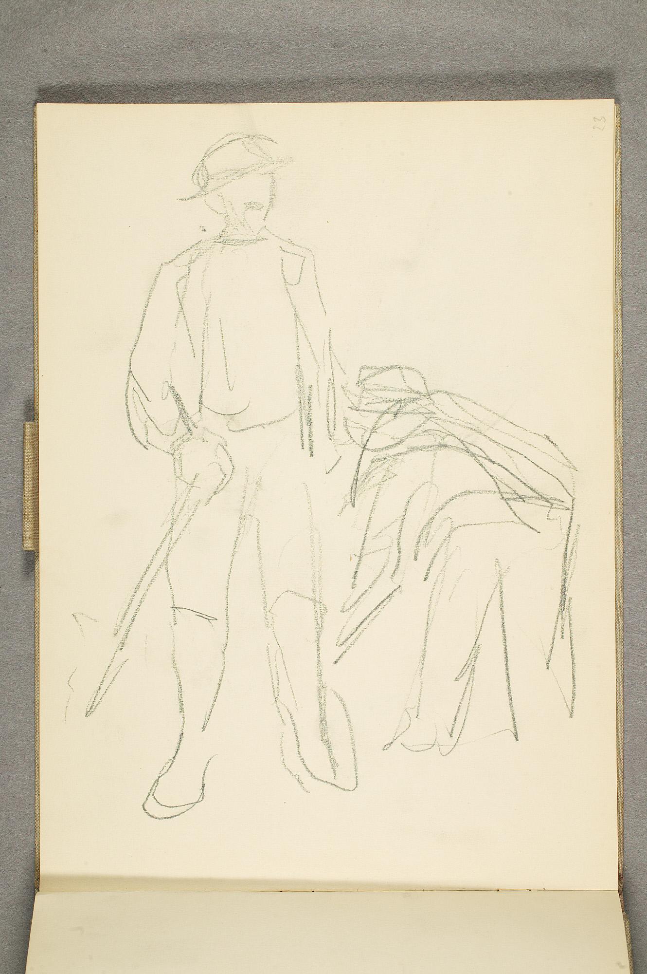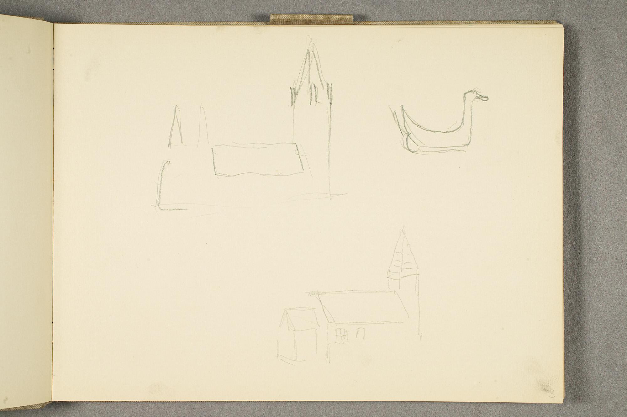 Comment:The first part of this sketchbook contans sketches and watercolours made during a travel from Bergen to Kragerø in June 1909. He travelled by boat, horse, and carriage and part of the way on the recently opened Bergen railway, and his travelling companion was his cousin Ludvig Ravensberg, who kept a detailed diary of the tour. Among other things, he writes about the drive by horse and carriage between Eide and Voss on Thursday, 1 July: "We had a wonderful drive. M was in good spirits the whole time and made a lot of brilliant remarks. He wanted to show me a number of things and demonstrated them with drawings, all of which were excellent, because, said M, this is how art was originally … created."