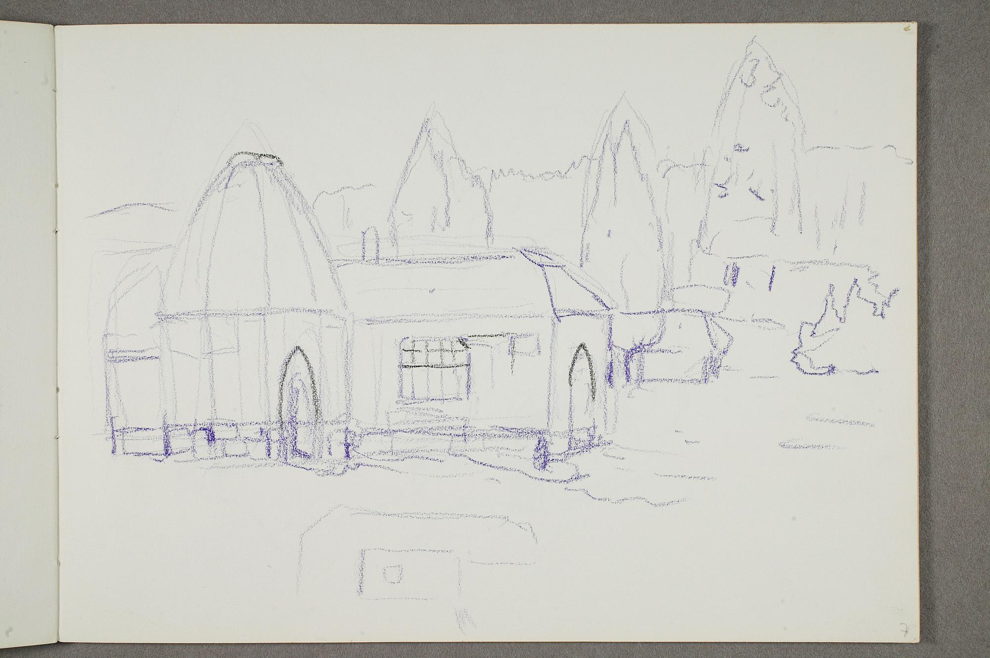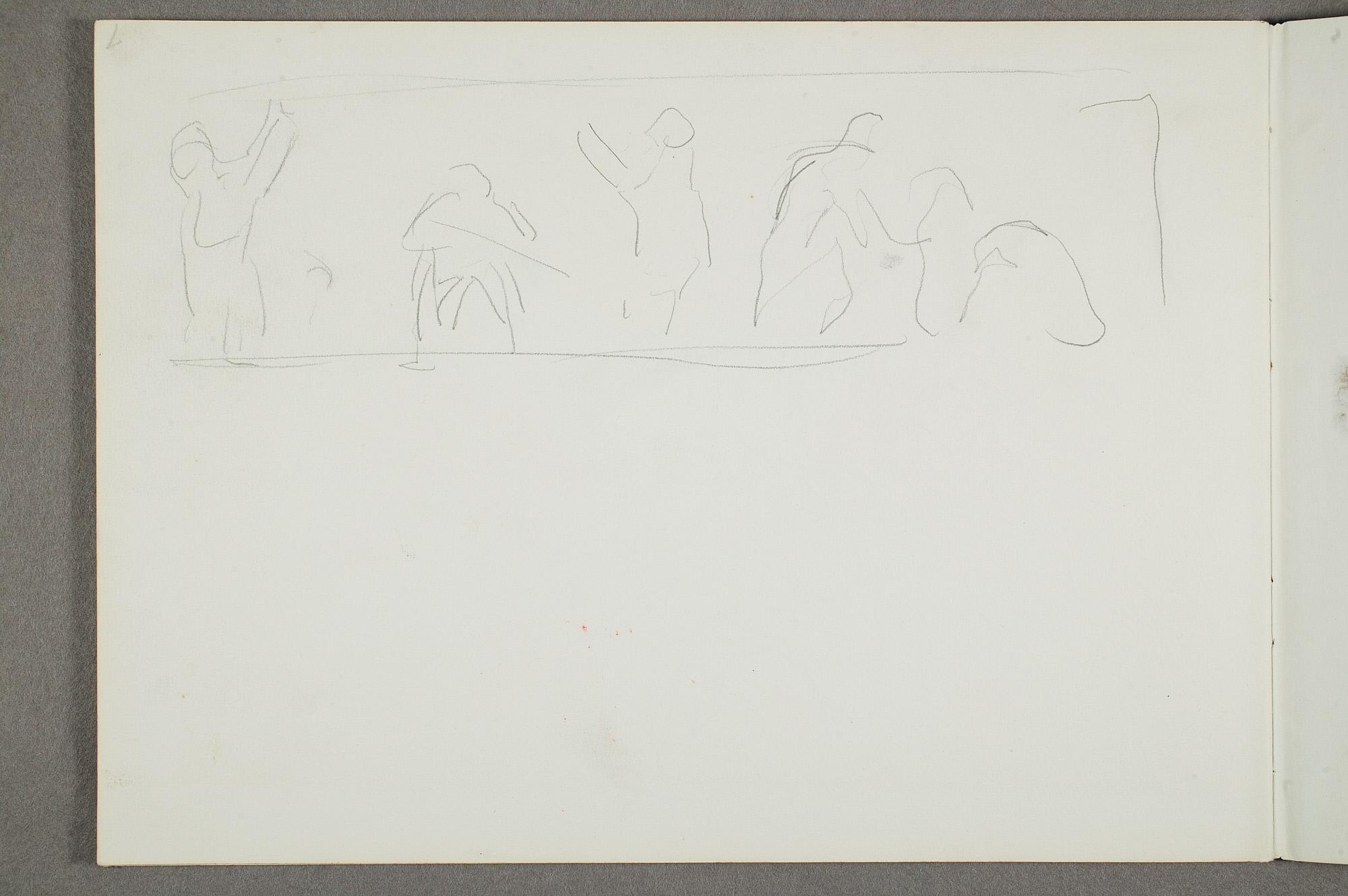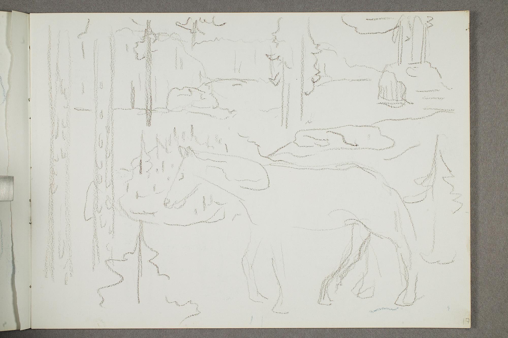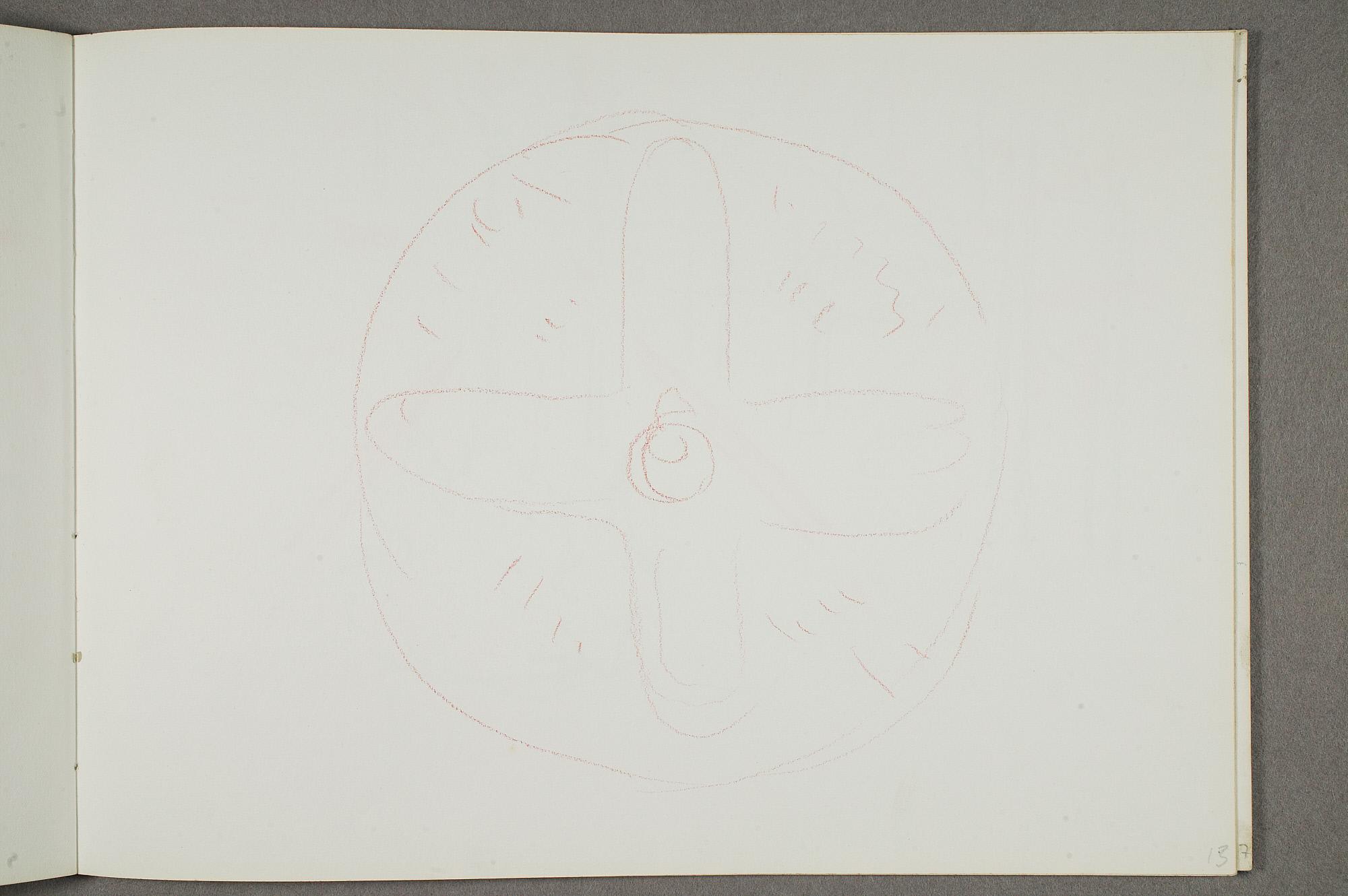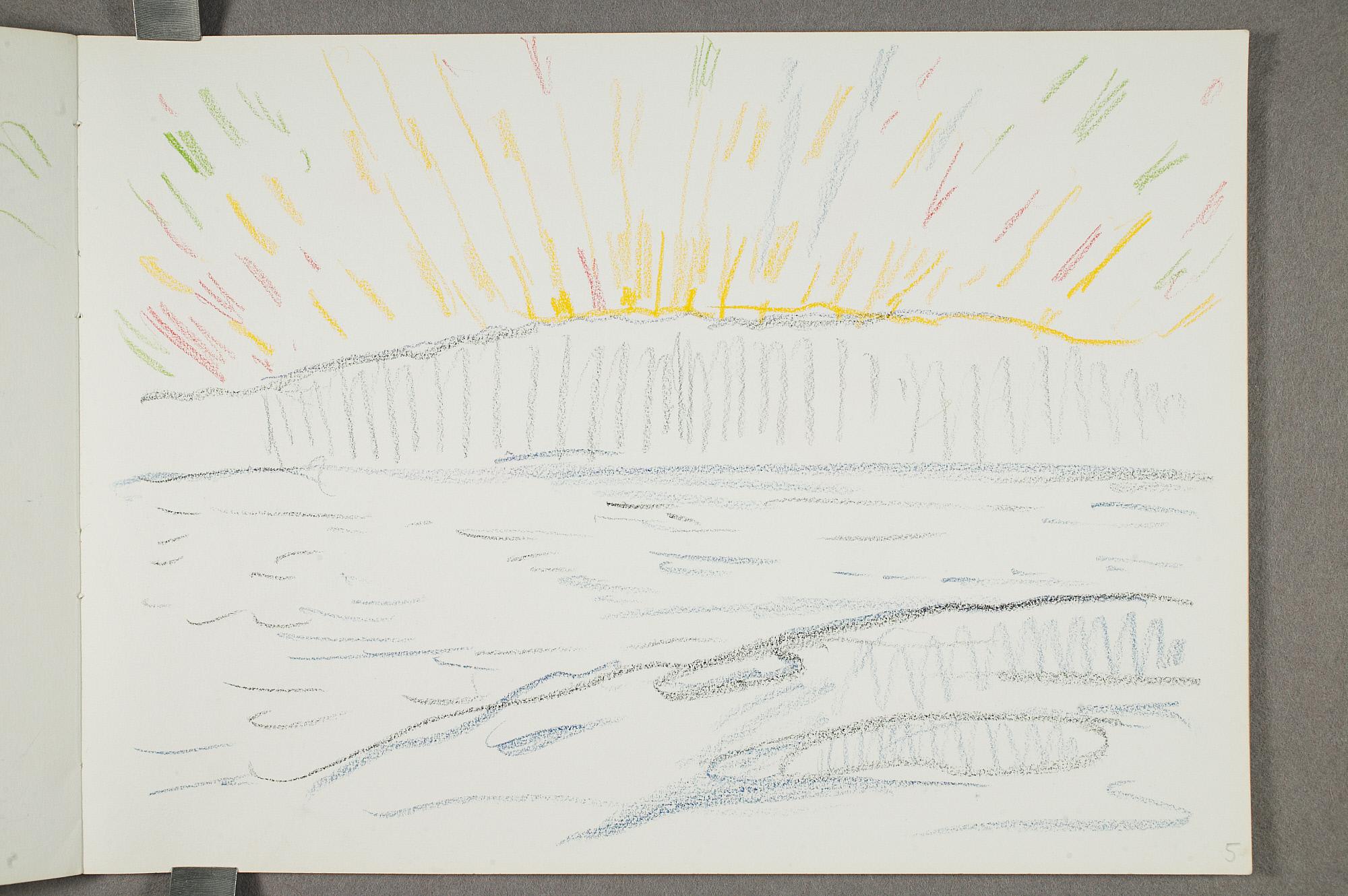 Comment:Denne typen skissebok, fra Winsor & Newton, finnes det 10 av i Munchmuseets samling, og alle er blitt brukt i Kragerø-perioden, 1909–15. Tegningene i denne skisseboken består av blant annet aulamotiver, «Adam og Eva», «Skogskatedral», «Klutesamleren» og «Arbeidere i snø». Flere er utført i samme teknikk – fargestift i flere farger, som følger etter hverandre i boken, noe som er med på avgjøre skissebokens datering. (PP)