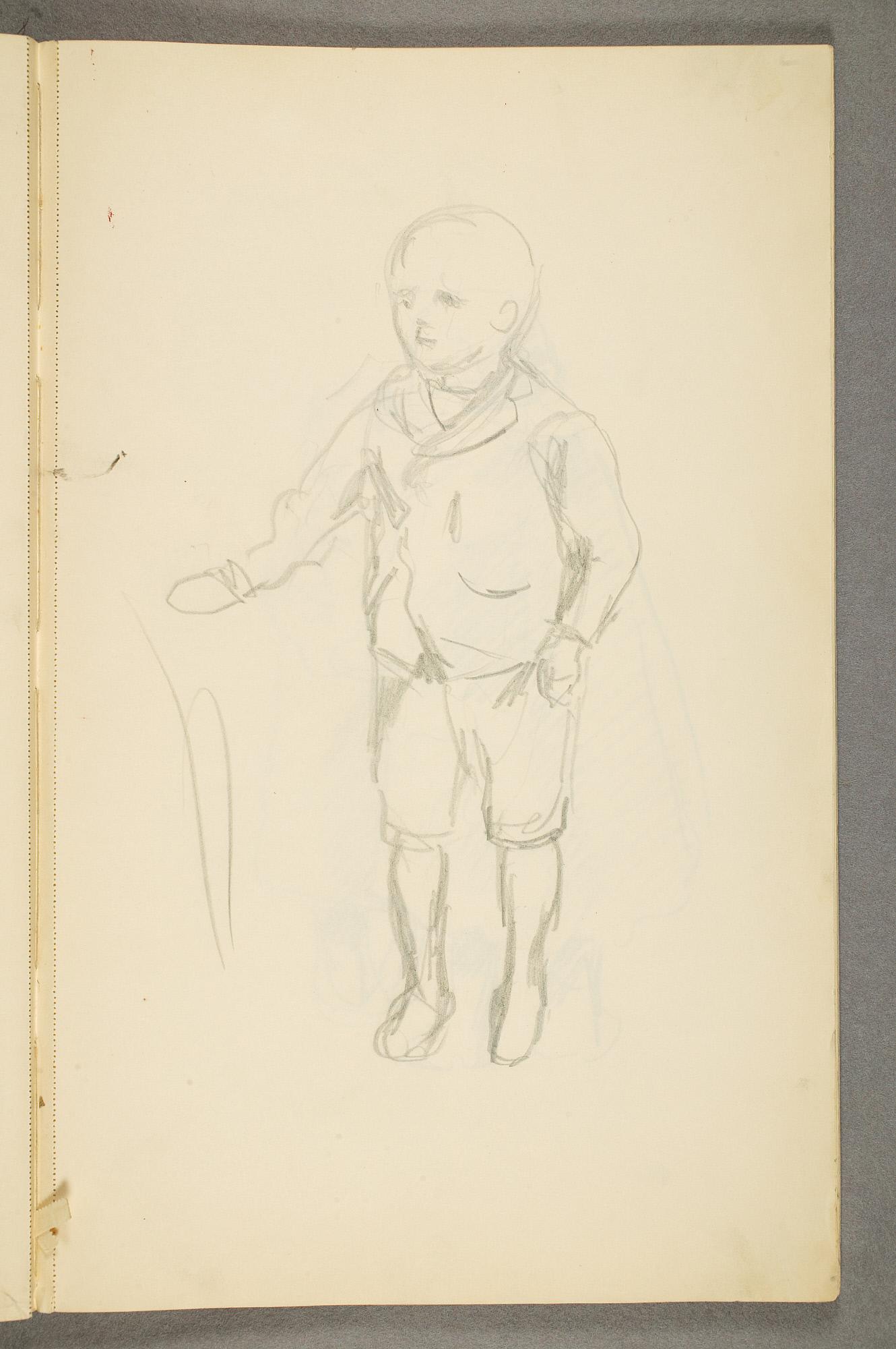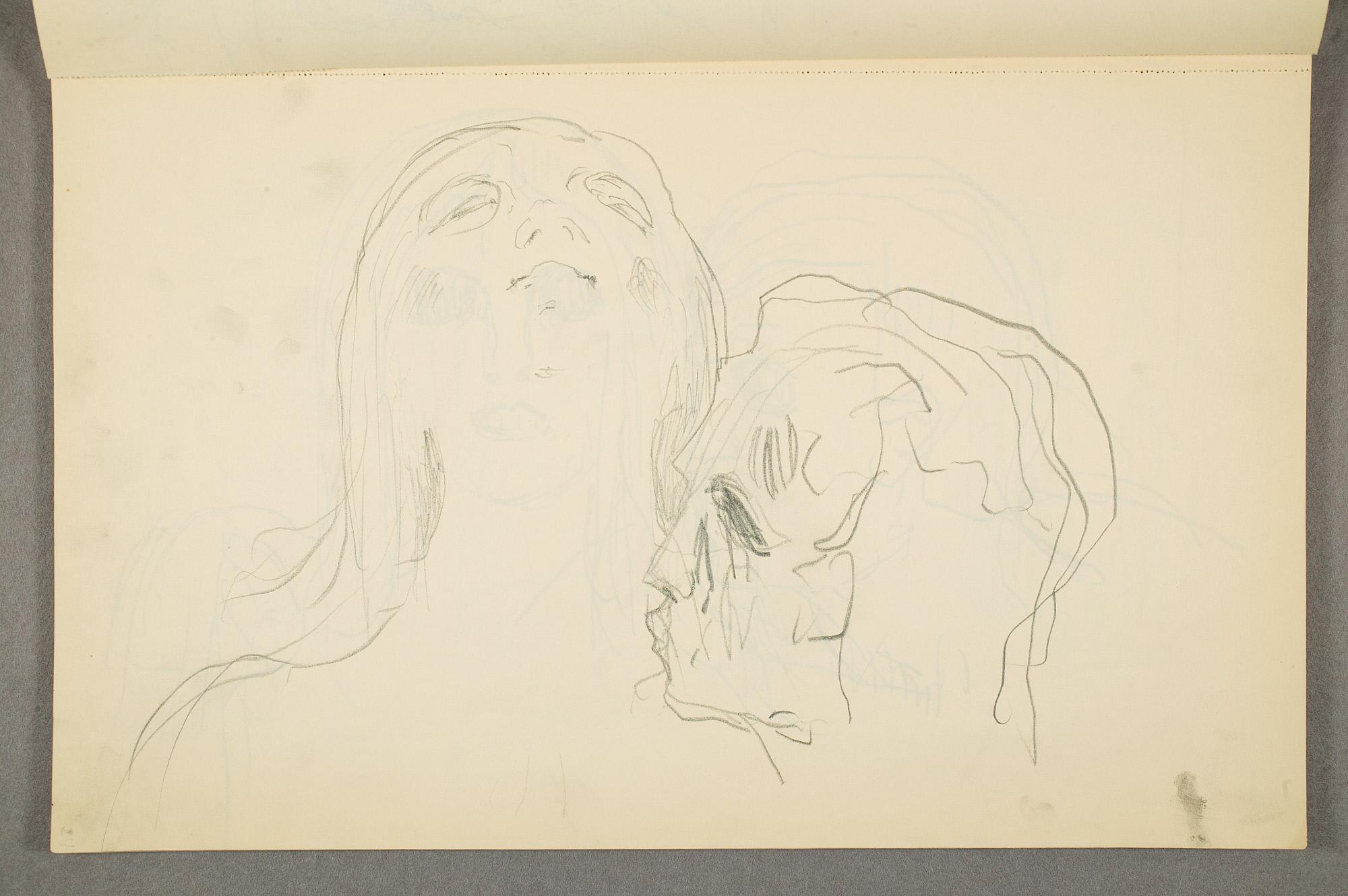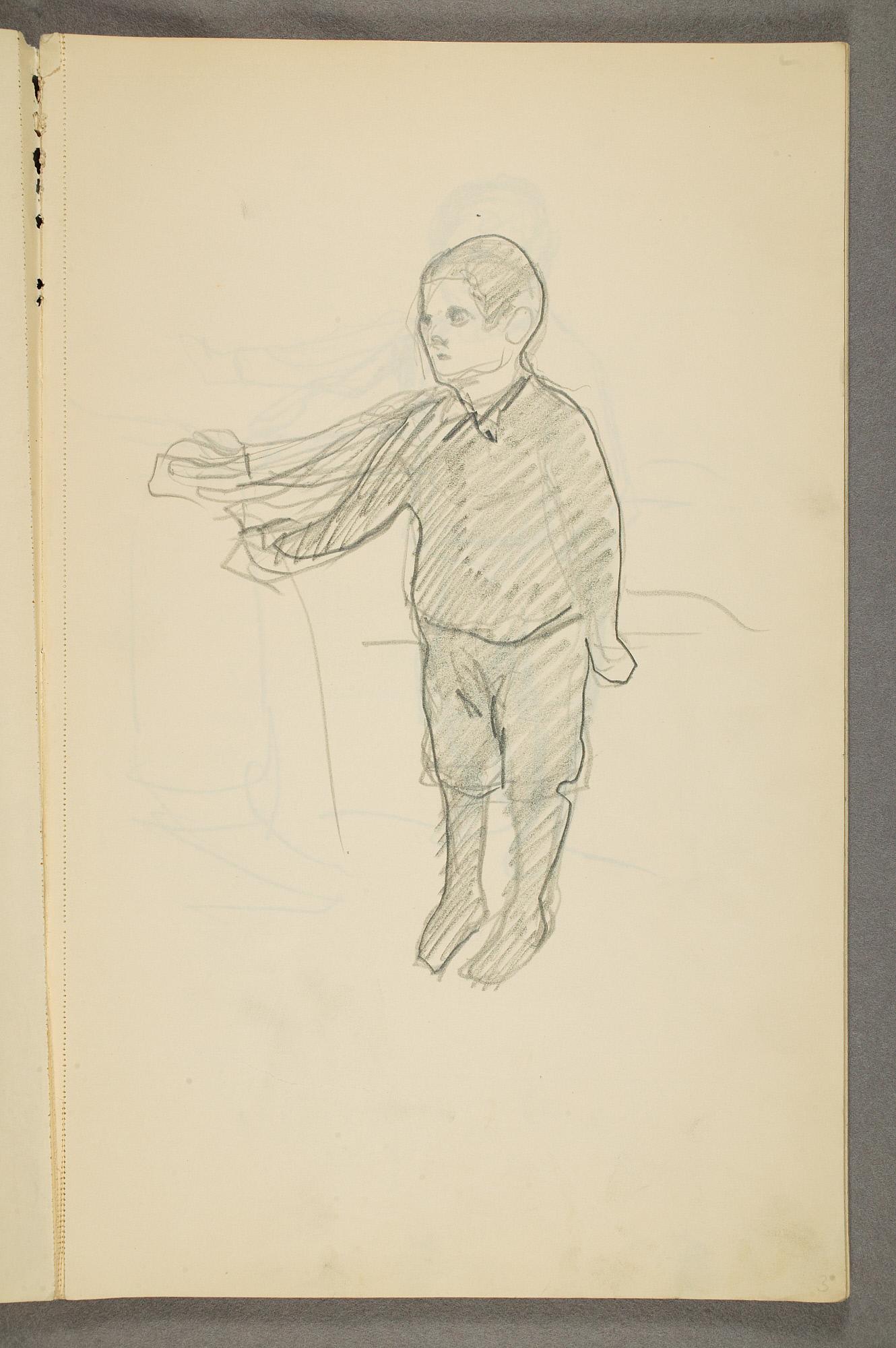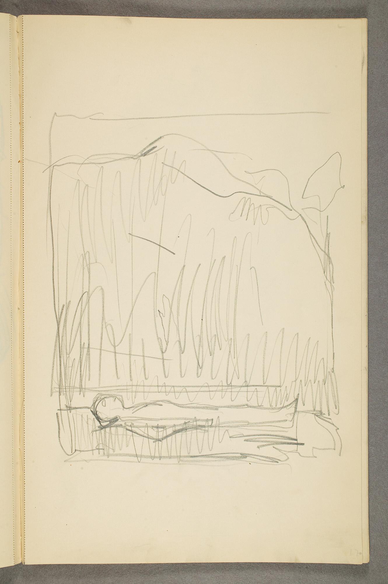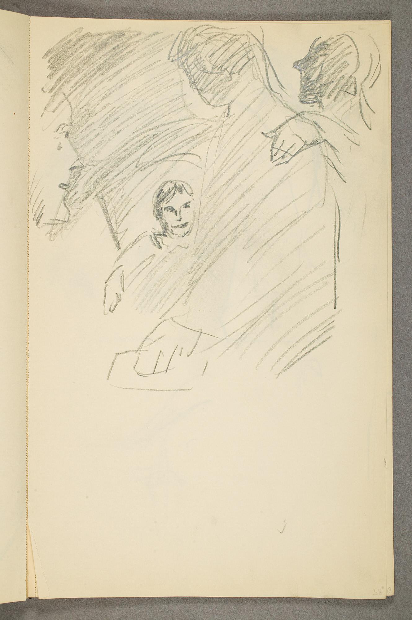 Comment:Det er stor motivvariasjon i denne skisseboken, og flere av tegningene har få eller ingen holdepunkter for datering. Mange kan likevel dateres innenfor perioden 1910–15, og alle er utført med enten blyant eller svart fargestift. Ingen av tegningene skiller seg nevneverdig ut med hensyn til stil, og det kan se ut som om alle ble utført innenfor en tidsramme på få år. En usikkerhet knyttes til tegningene med «Alma Mater. Forskerne» som er plassert helt mot slutten av skisseboken og der en sen datering kan være mulig. (PP)