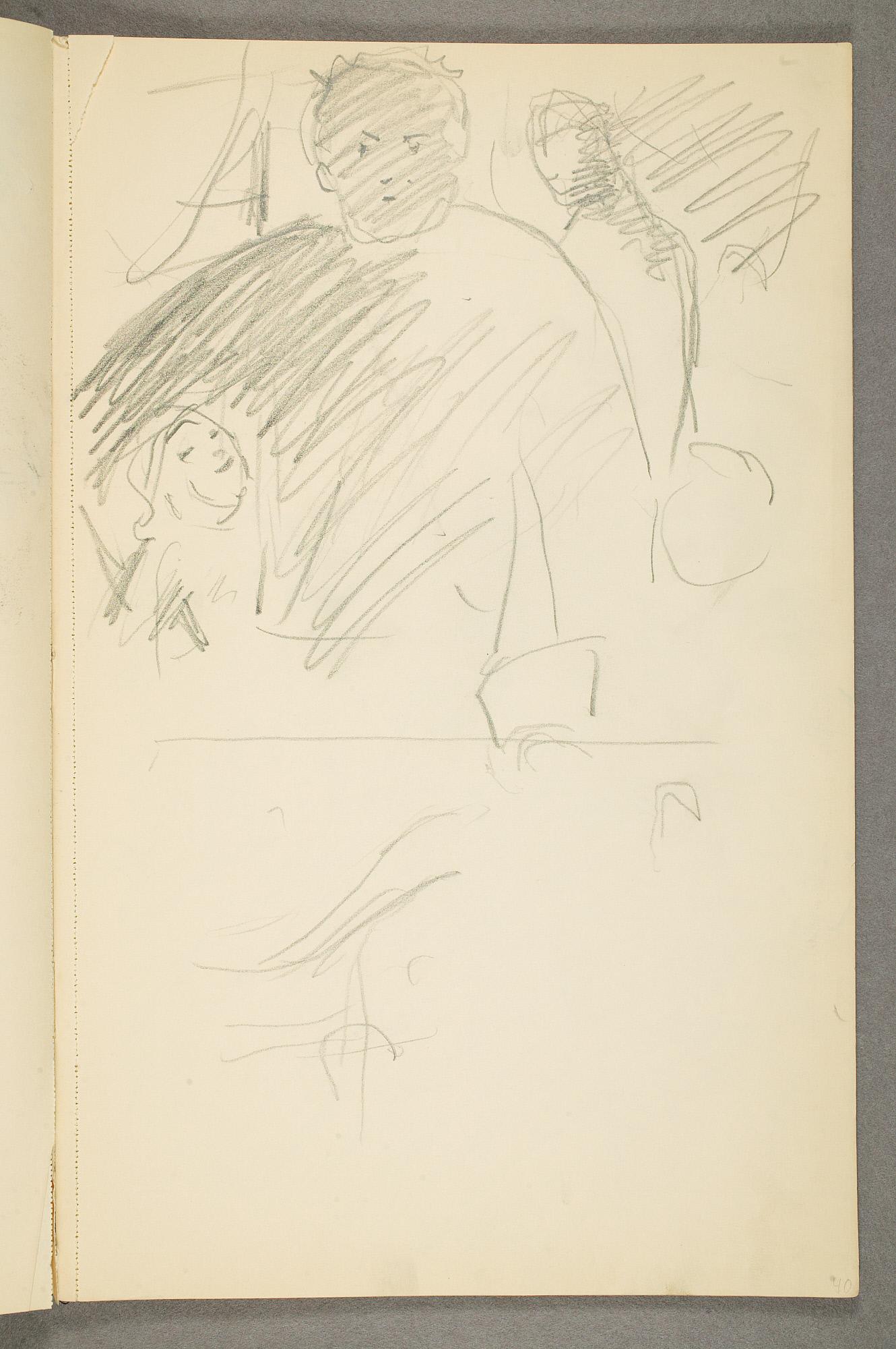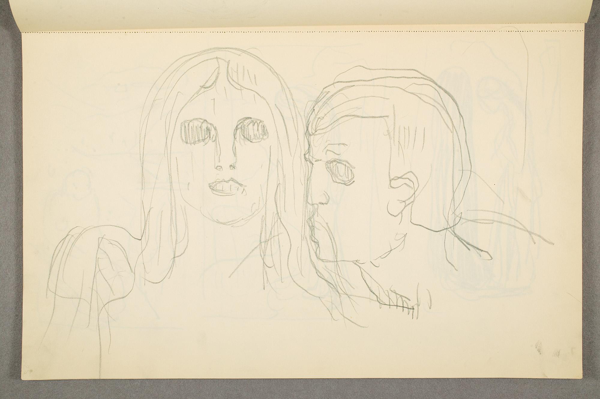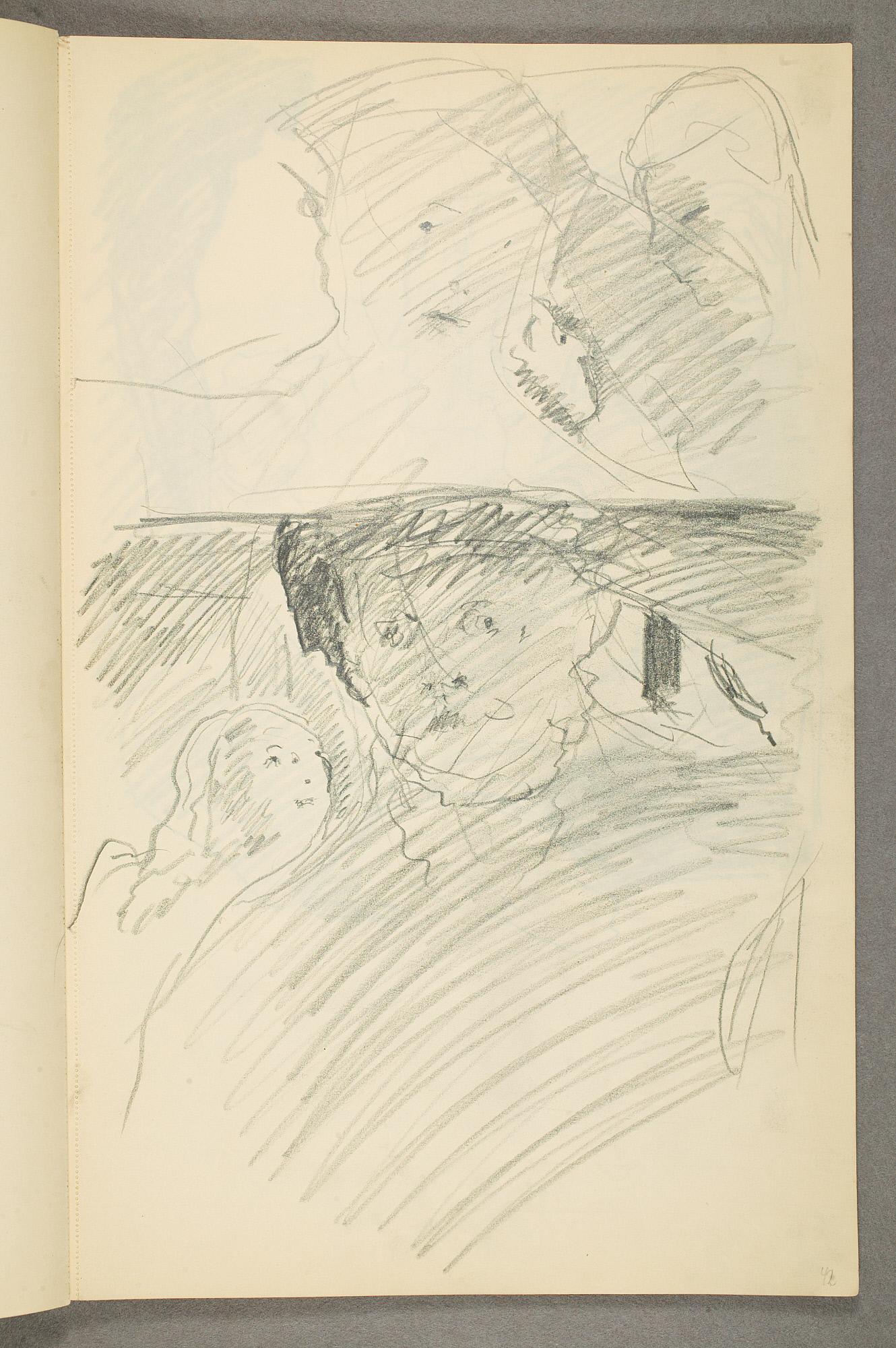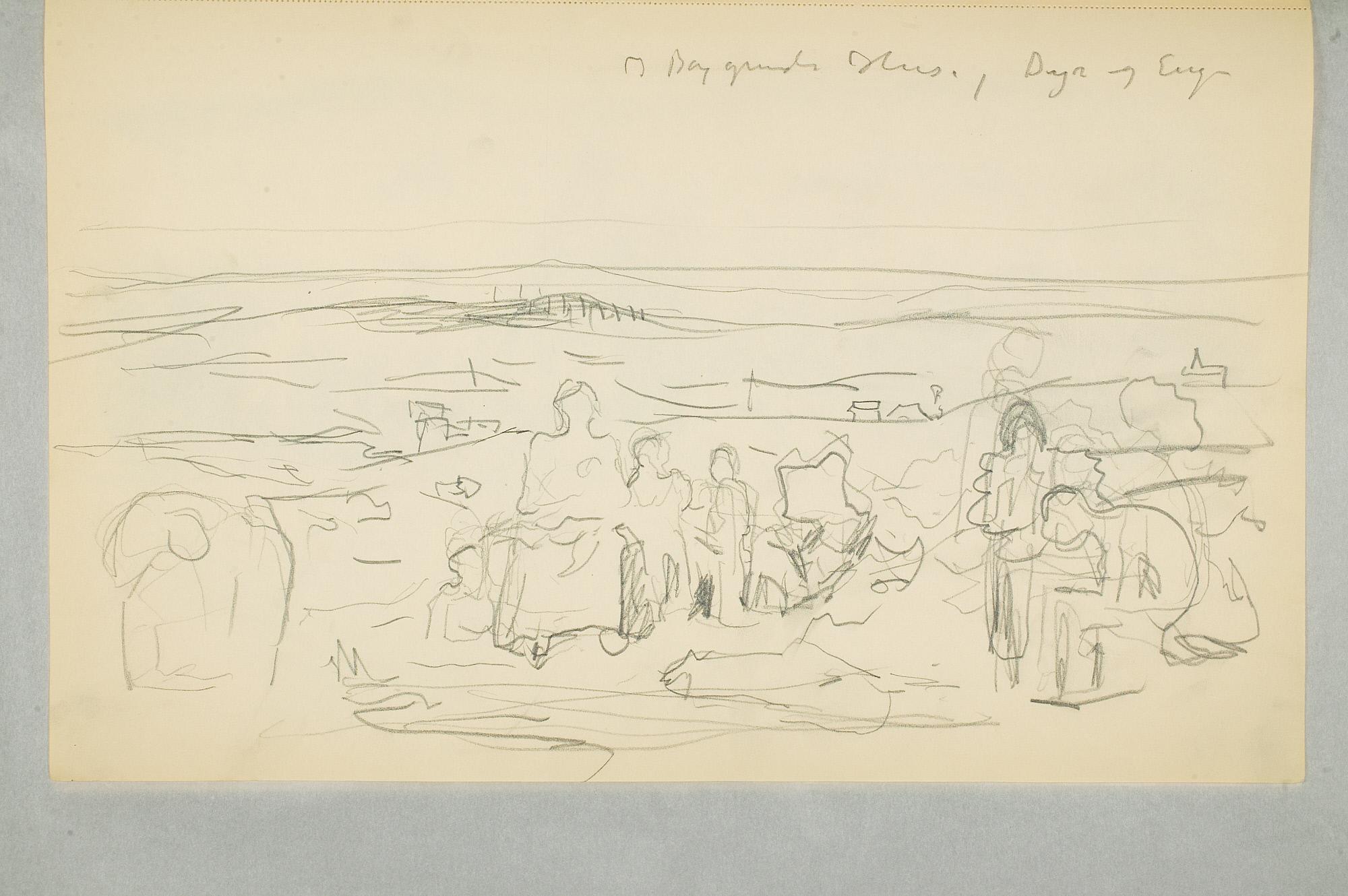 Comment:Det er stor motivvariasjon i denne skisseboken, og flere av tegningene har få eller ingen holdepunkter for datering. Mange kan likevel dateres innenfor perioden 1910–15, og alle er utført med enten blyant eller svart fargestift. Ingen av tegningene skiller seg nevneverdig ut med hensyn til stil, og det kan se ut som om alle ble utført innenfor en tidsramme på få år. En usikkerhet knyttes til tegningene med «Alma Mater. Forskerne» som er plassert helt mot slutten av skisseboken og der en sen datering kan være mulig. (PP)
