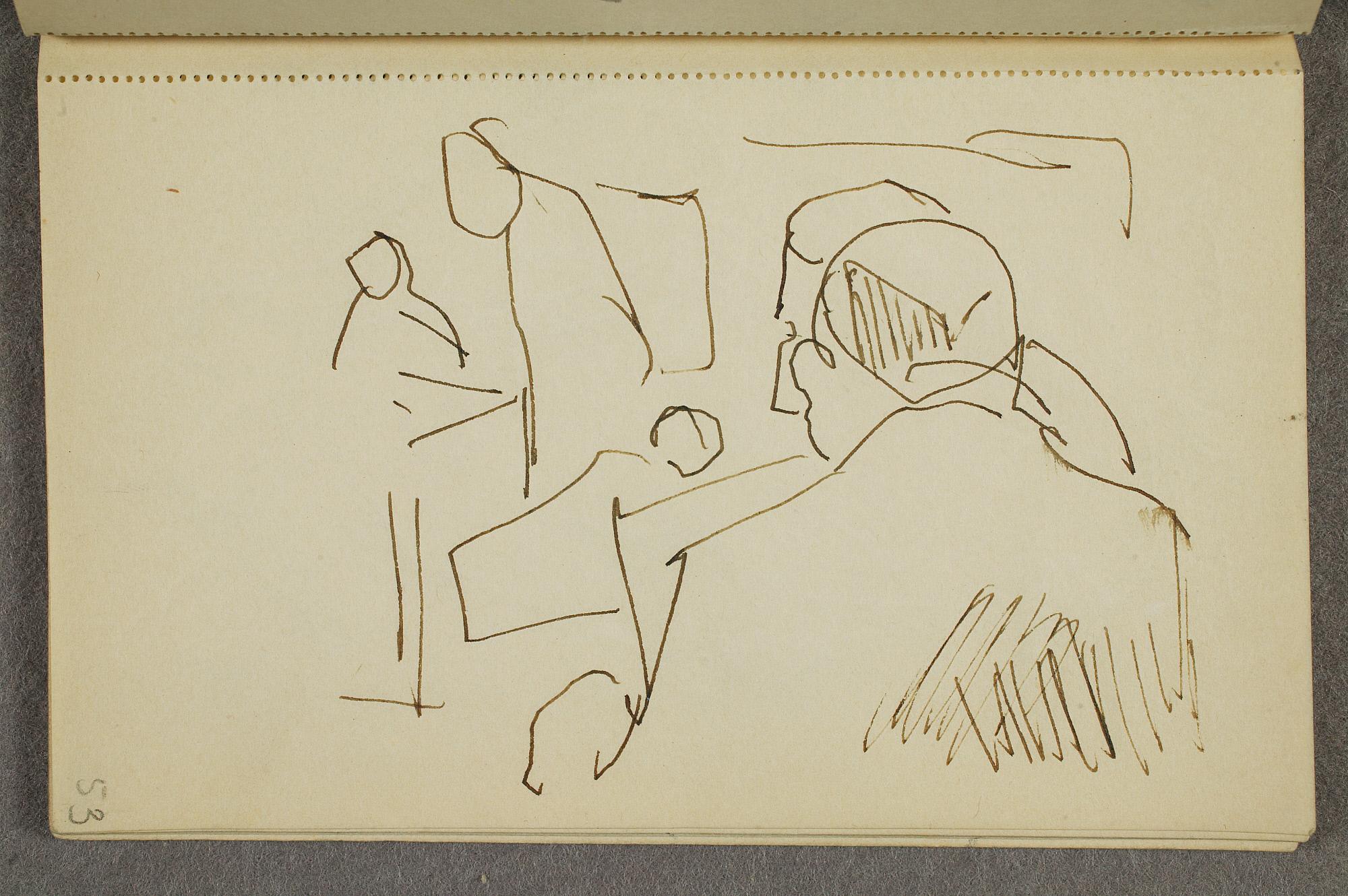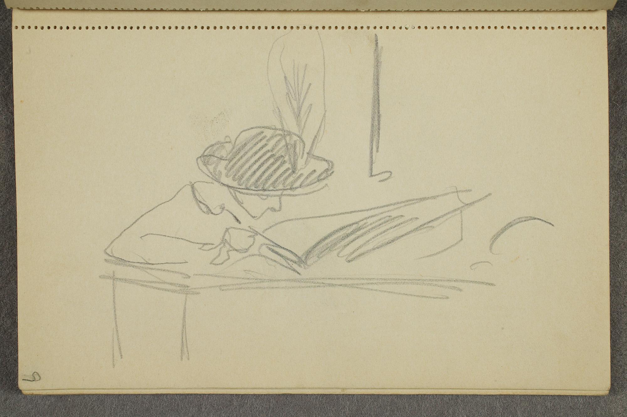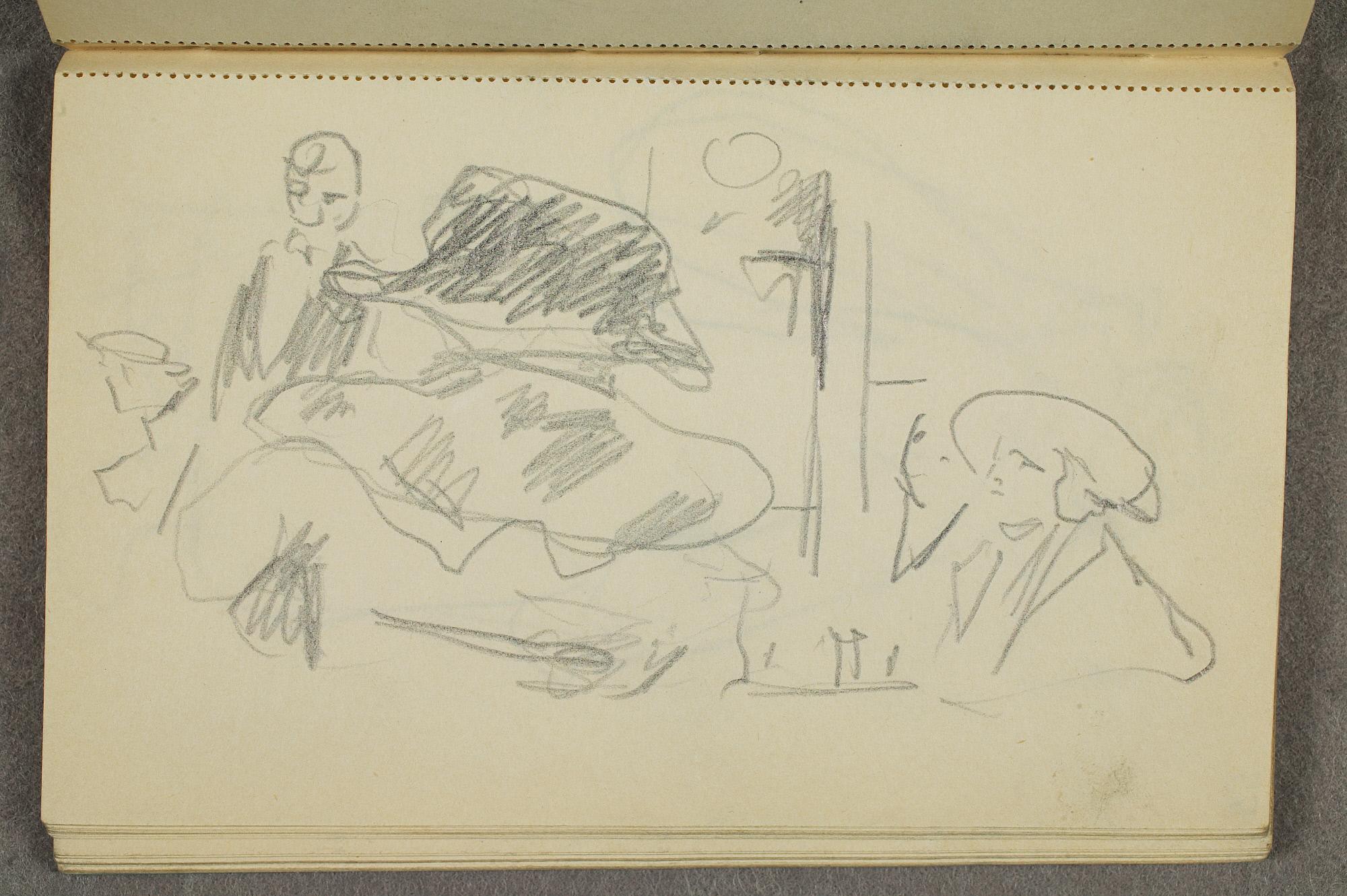 Comment:Selv om mange av tegningene i denne skisseboken ikke kan knyttes til andre kjente verk med etablert datering, og mange av skissene i boken ikke er fullført og vanskelig å identifisere, gjør påskriftene i boken – med anførte datoer og referanser – dateringen 1914 sannsynlig. (PP)