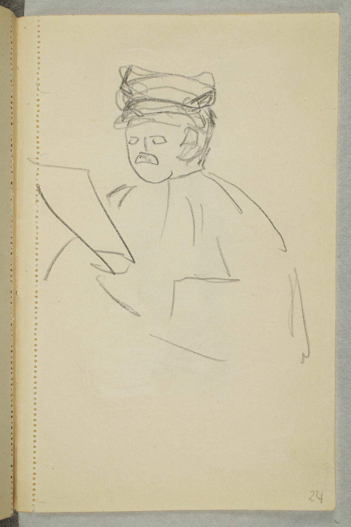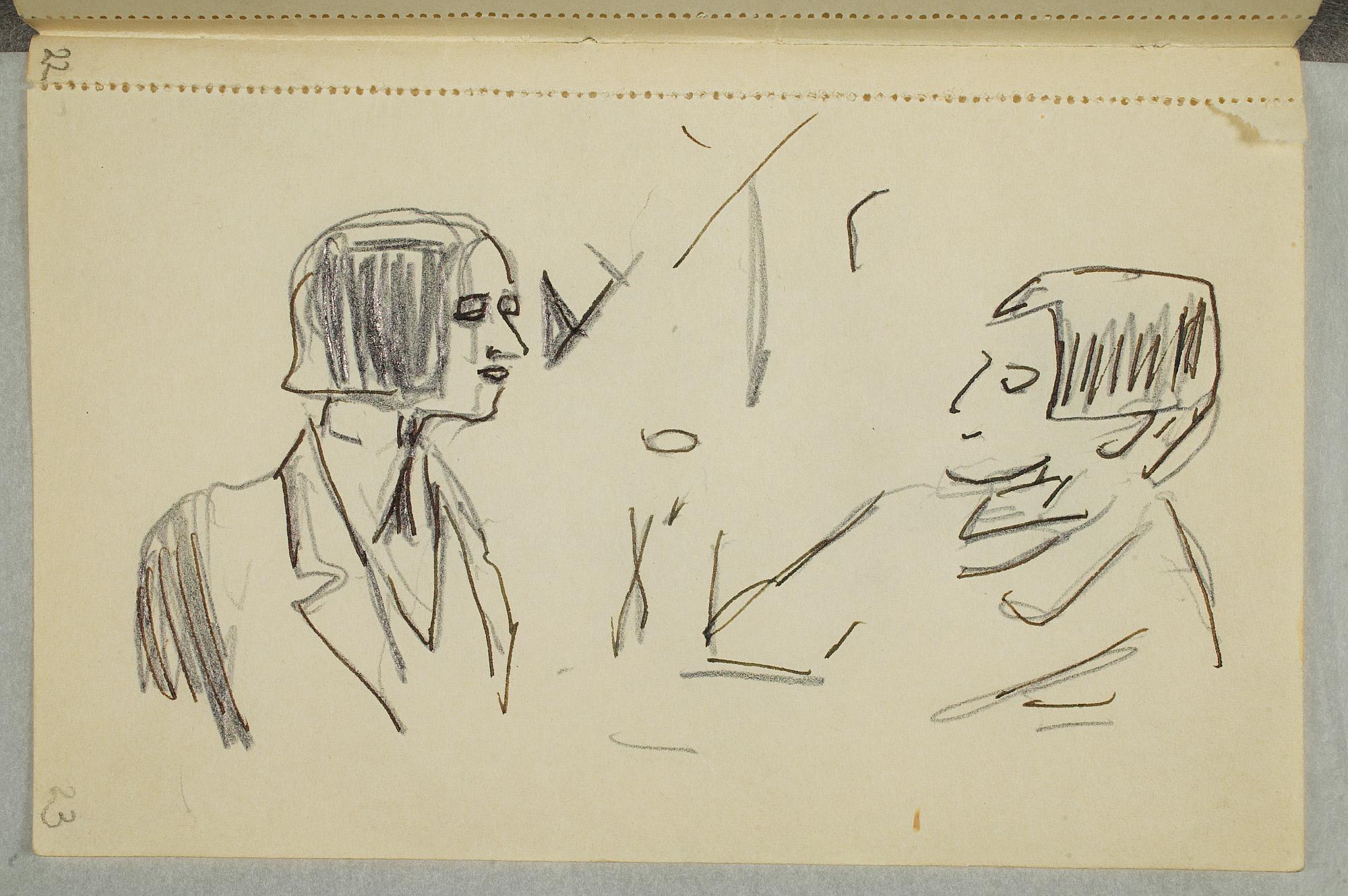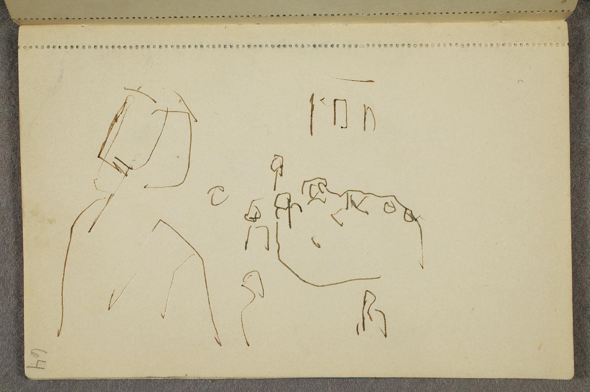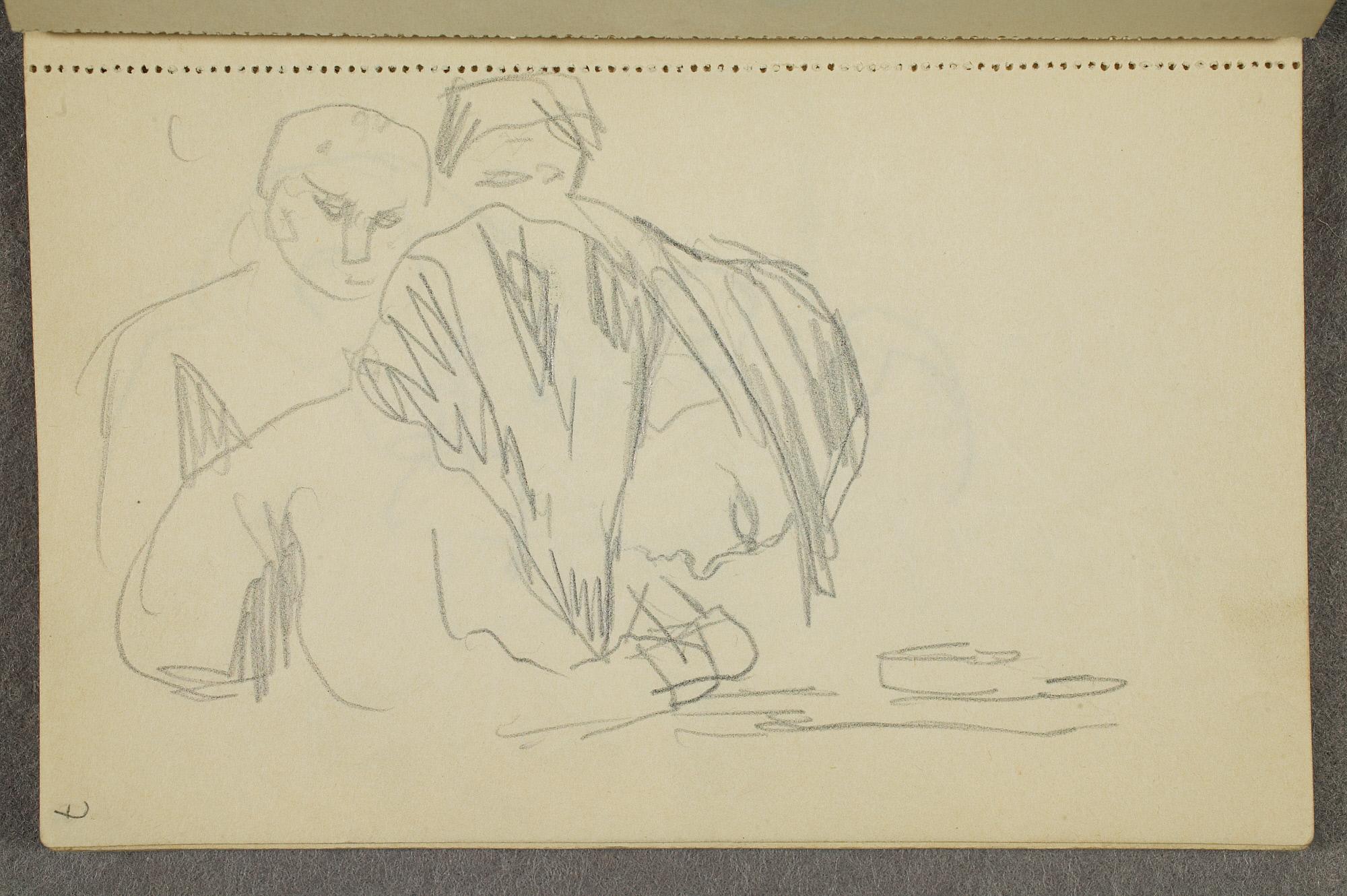 Comment:Selv om mange av tegningene i denne skisseboken ikke kan knyttes til andre kjente verk med etablert datering, og mange av skissene i boken ikke er fullført og vanskelig å identifisere, gjør påskriftene i boken – med anførte datoer og referanser – dateringen 1914 sannsynlig. (PP)