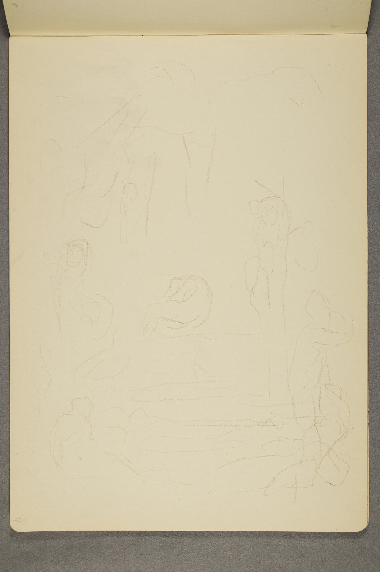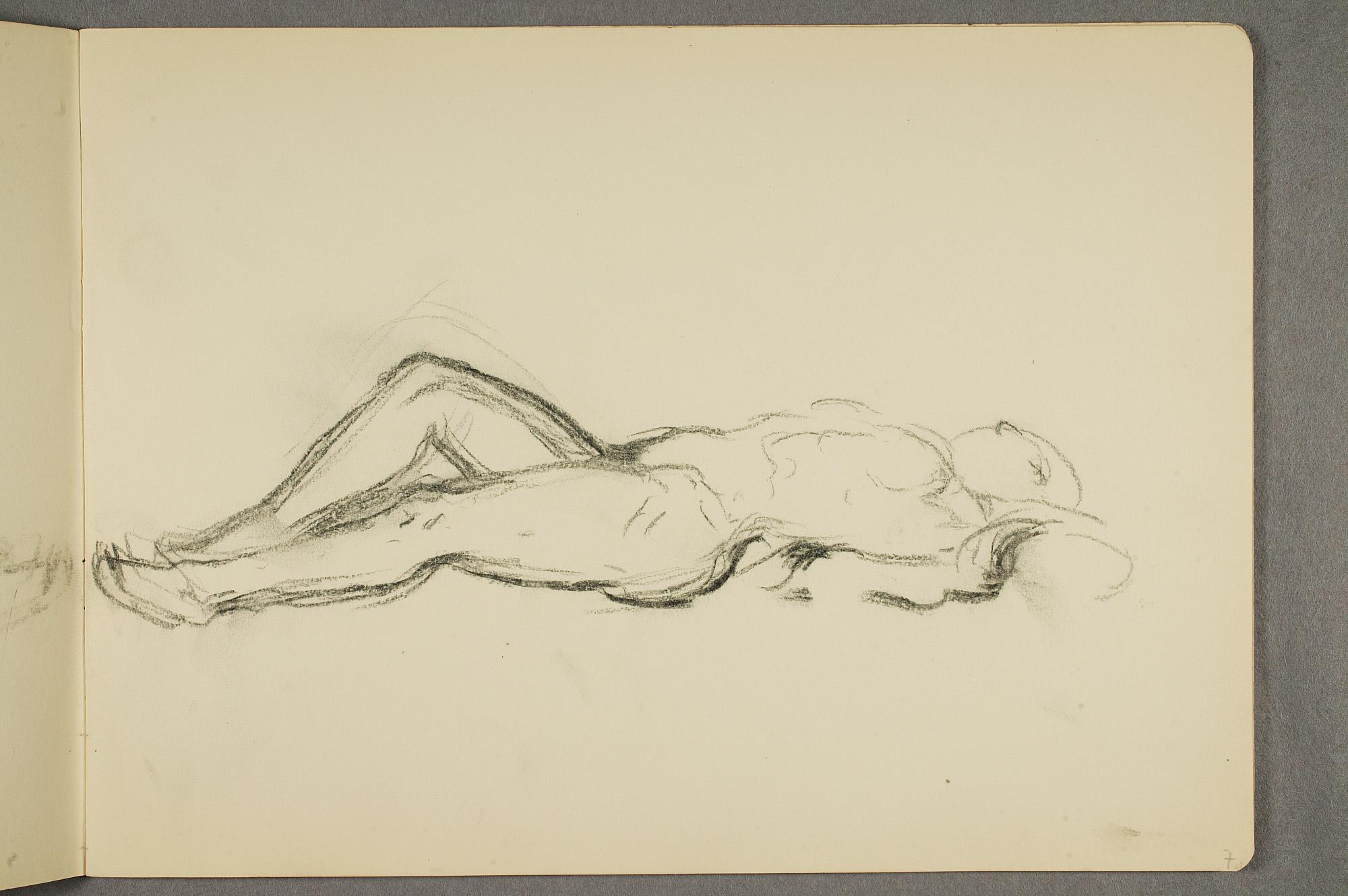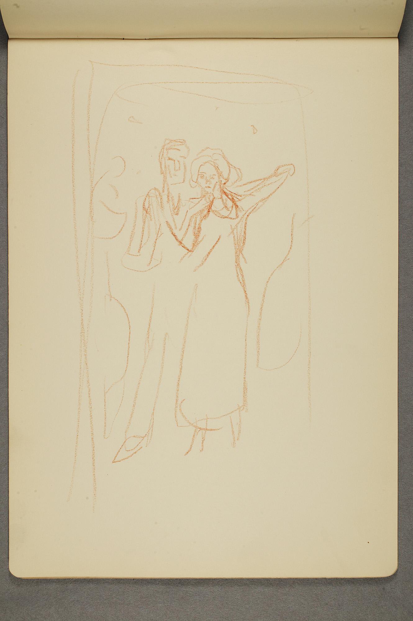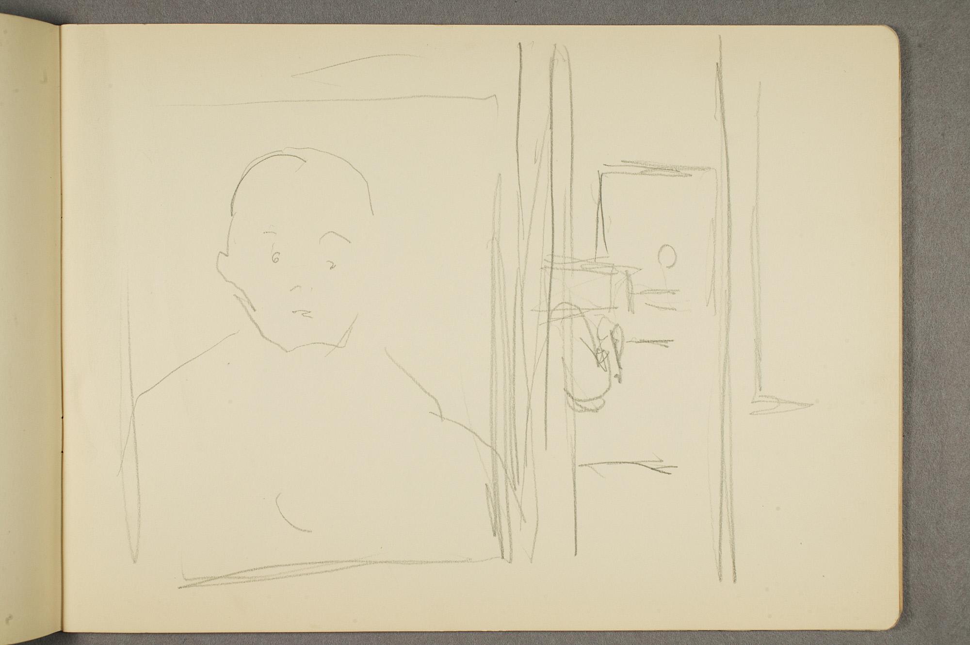 Comment:En del av tegningene i skisseboken er datert innenfor tidsspennet 1916–24, og det er vanskelig å tidfeste flere av dem mer nøyaktig. Skisseboken ble sannsynligvis kjøpt i København 1912–15, sammen med en annen, identisk skissebok (MM.T.00196). Ut fra tegningene i de to bøkene kan det virke som Munch begynte på den andre boken først, og at de første tegningene i denne stammer fra 1916. Akvarellen på side 10 er sannsynligvis av Hildur Christensen, Munchs husholderske og modell 1923–33. (PP)