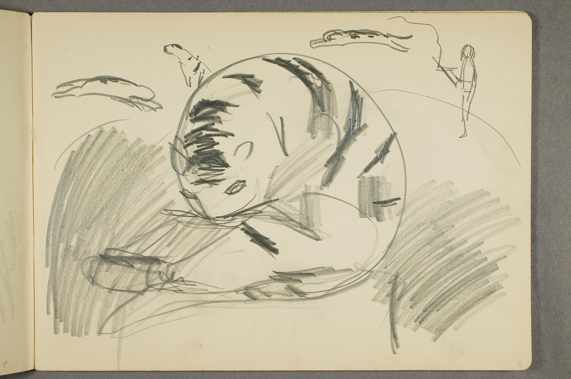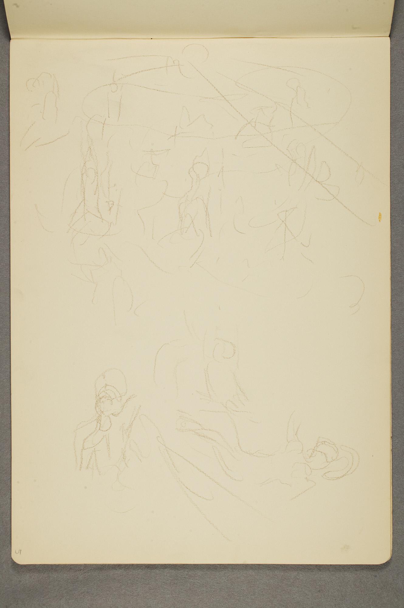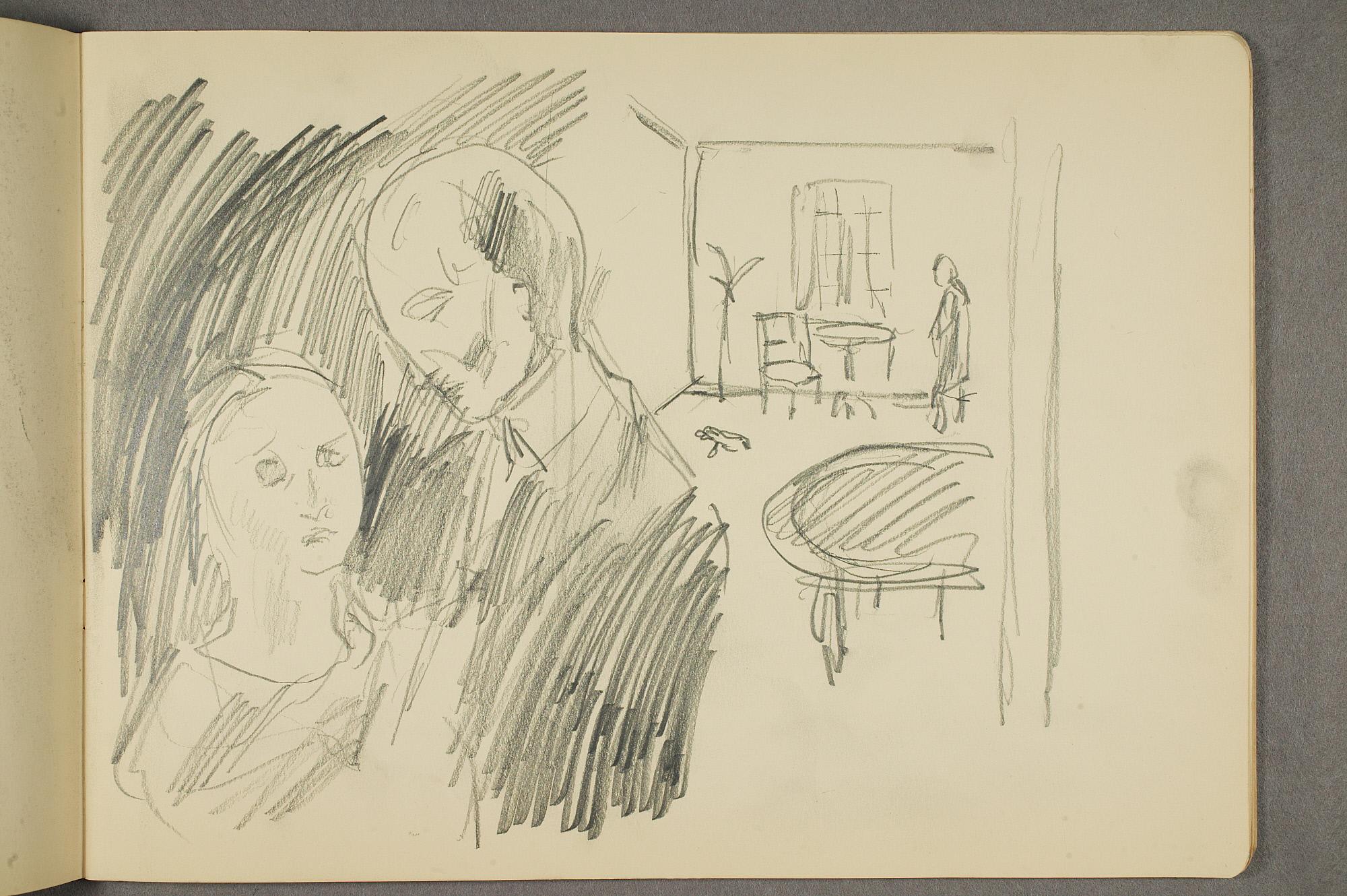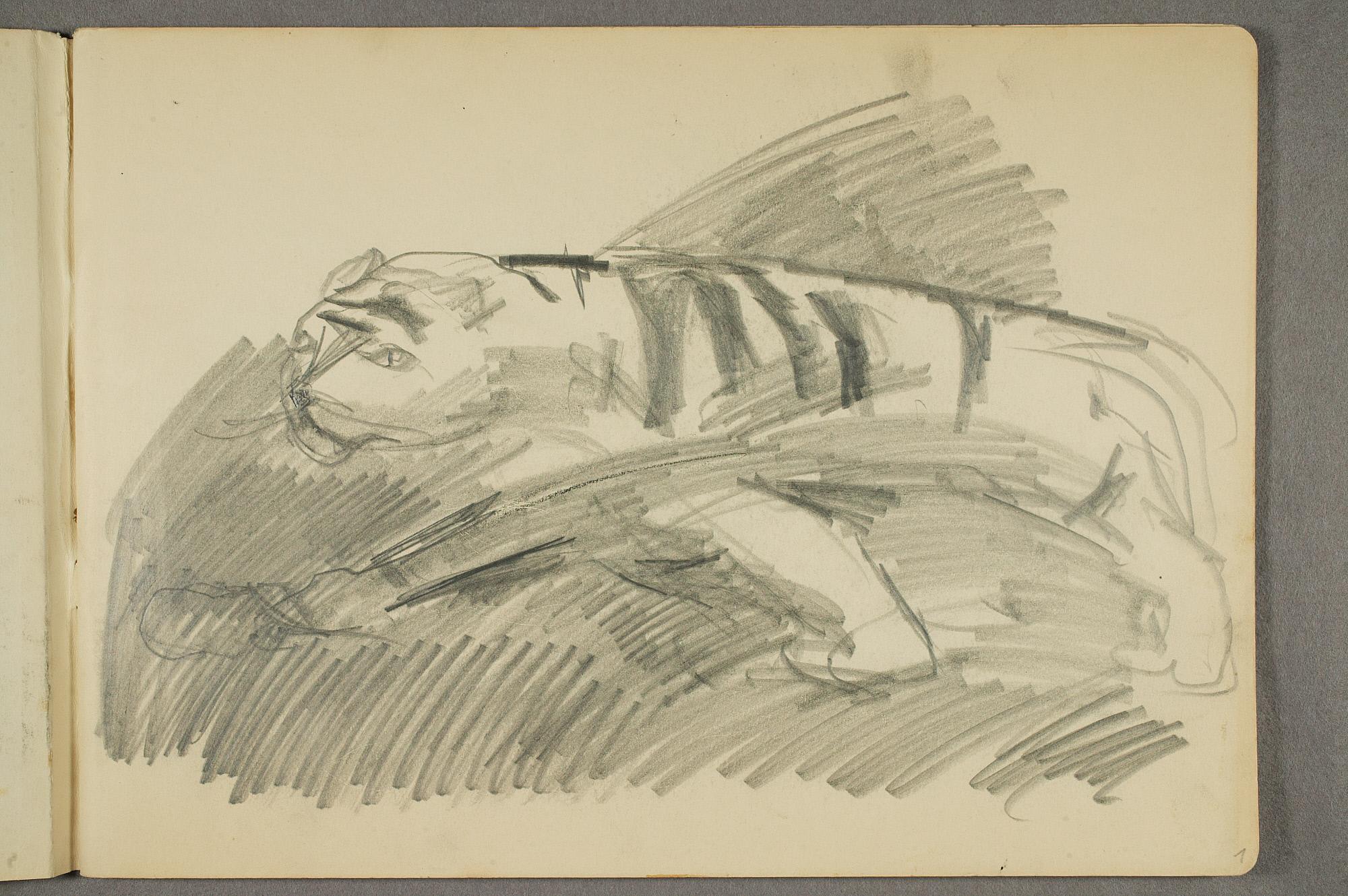 Comment:En del av tegningene i skisseboken er datert innenfor tidsspennet 1916–24, og det er vanskelig å tidfeste flere av dem mer nøyaktig. Skisseboken ble sannsynligvis kjøpt i København 1912–15, sammen med en annen, identisk skissebok (MM.T.00196). Ut fra tegningene i de to bøkene kan det virke som Munch begynte på den andre boken først, og at de første tegningene i denne stammer fra 1916. Akvarellen på side 10 er sannsynligvis av Hildur Christensen, Munchs husholderske og modell 1923–33. (PP)