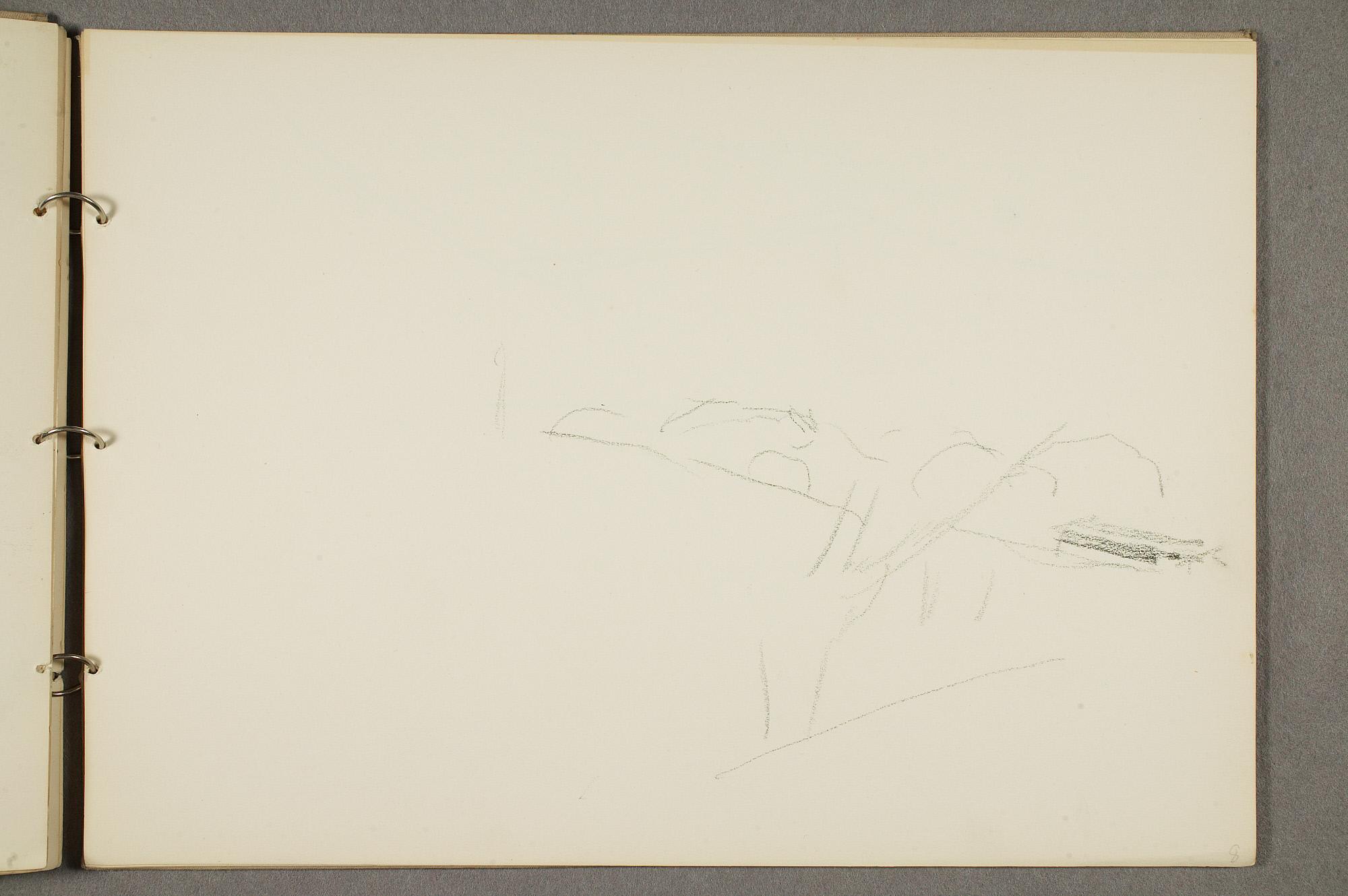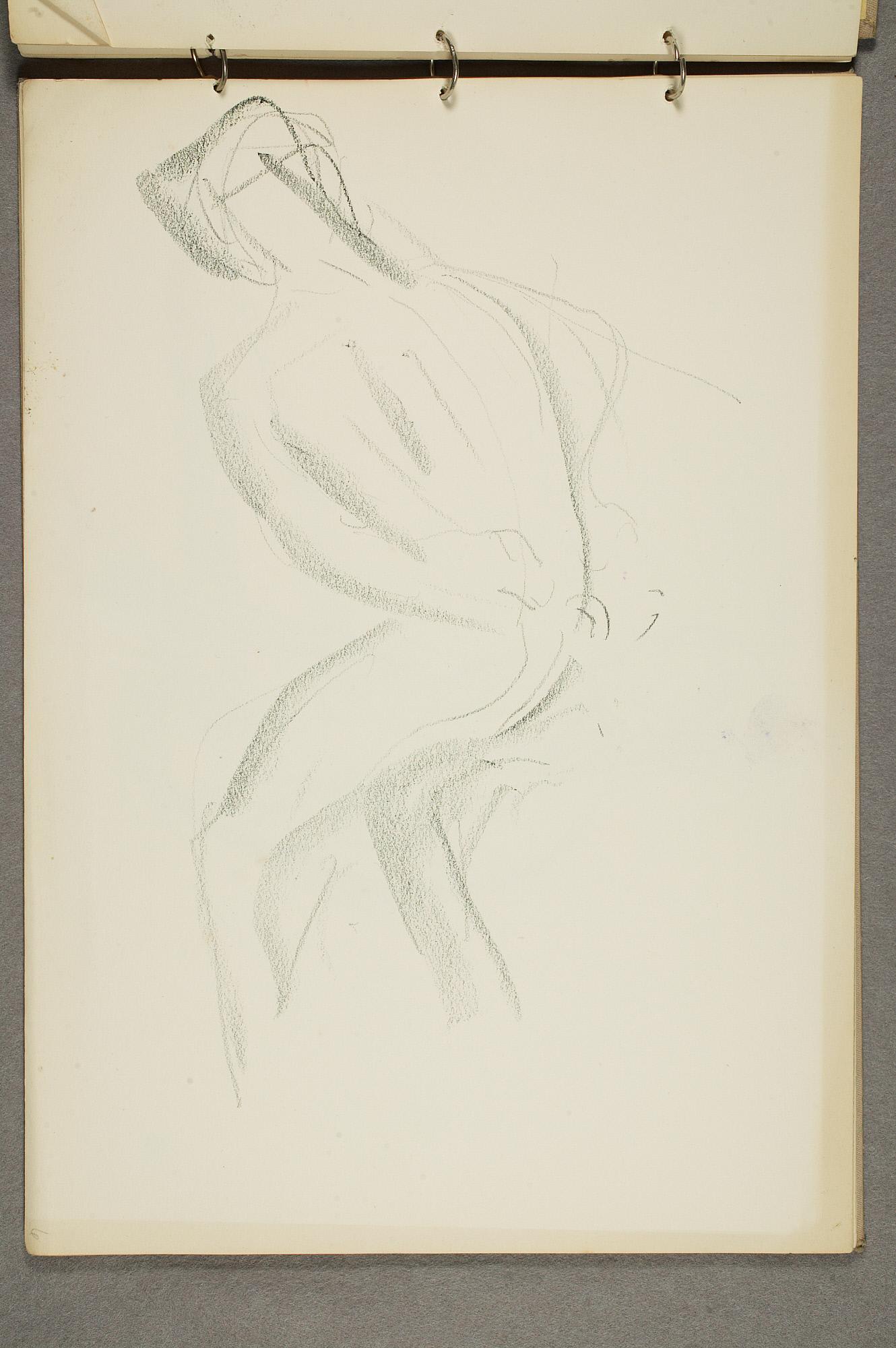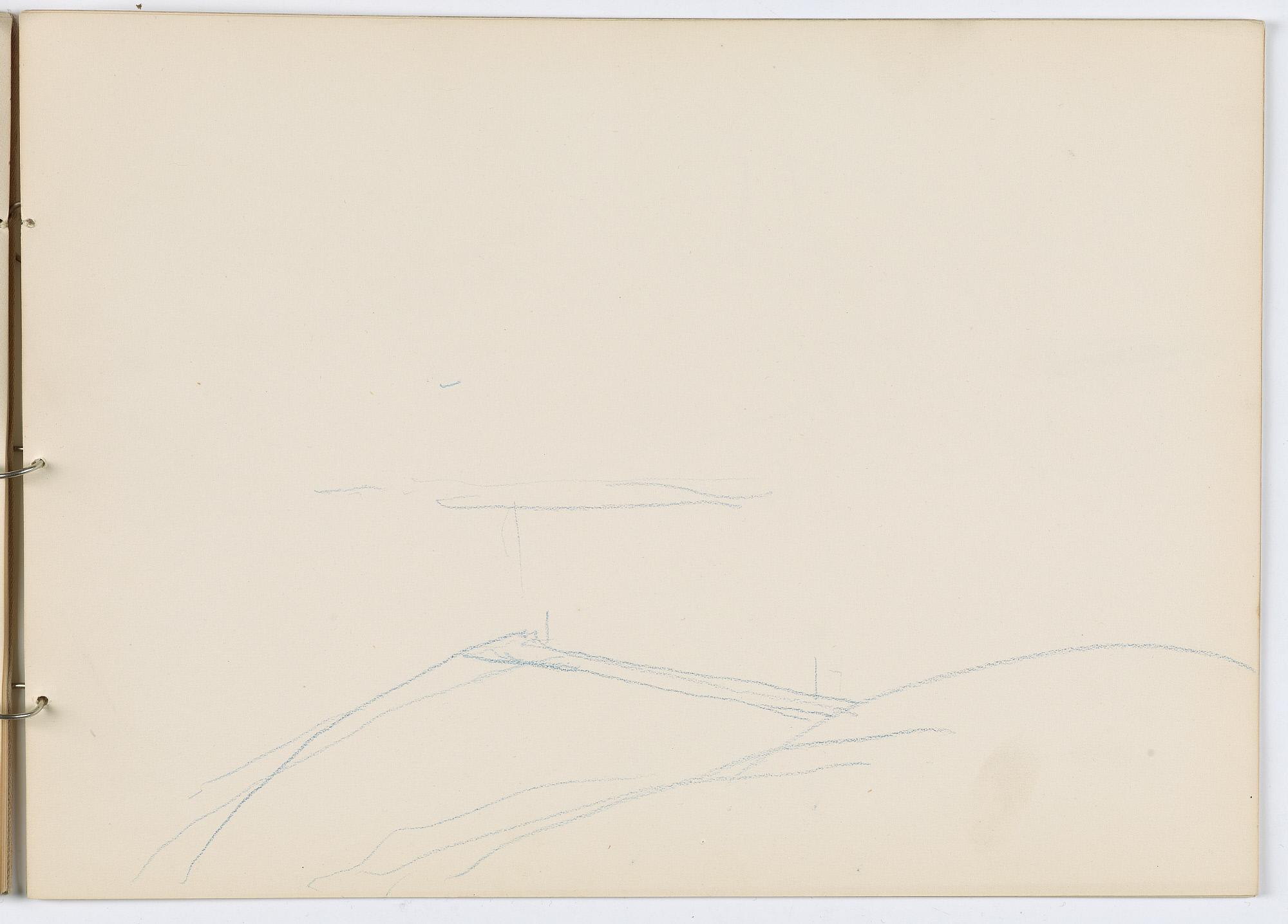 Comment:En del tegninger i denne skisseboken kan med sikkerhet dateres til 1925 og 1926, som «Fjell ved Åndalsnes» (MM.T.01478, MM.T.01479) og «Det røde hus» (MM.T.01467, MM.T.01468). Akttegningene i begynnelsen av skisseboken kan være av Claude Beriot som ble Munchs modell i 1918, og enda denne identifikasjonen er usikker, kan man ikke utelukke helt at boken ble tatt i bruk samme år. (PP)