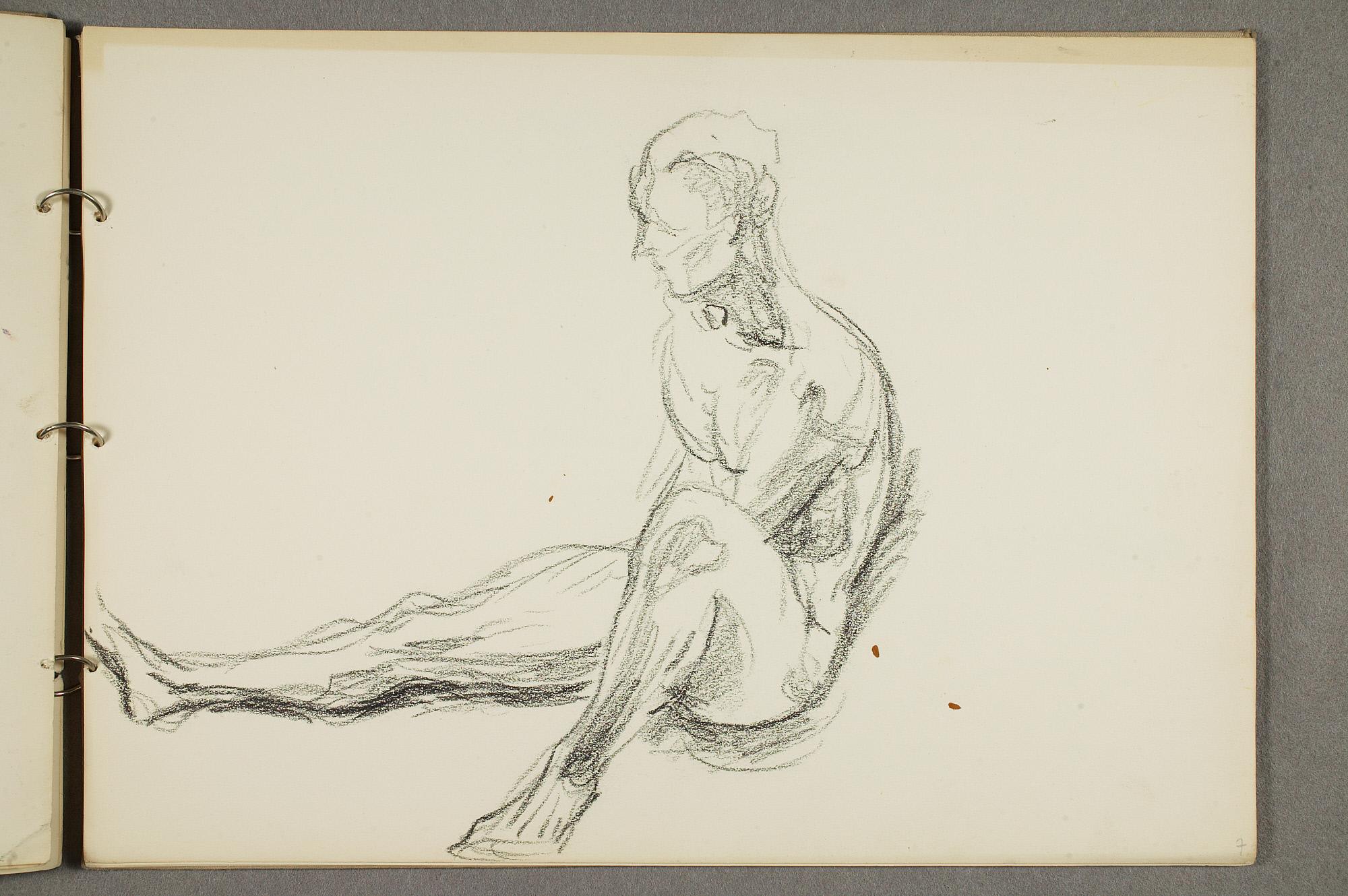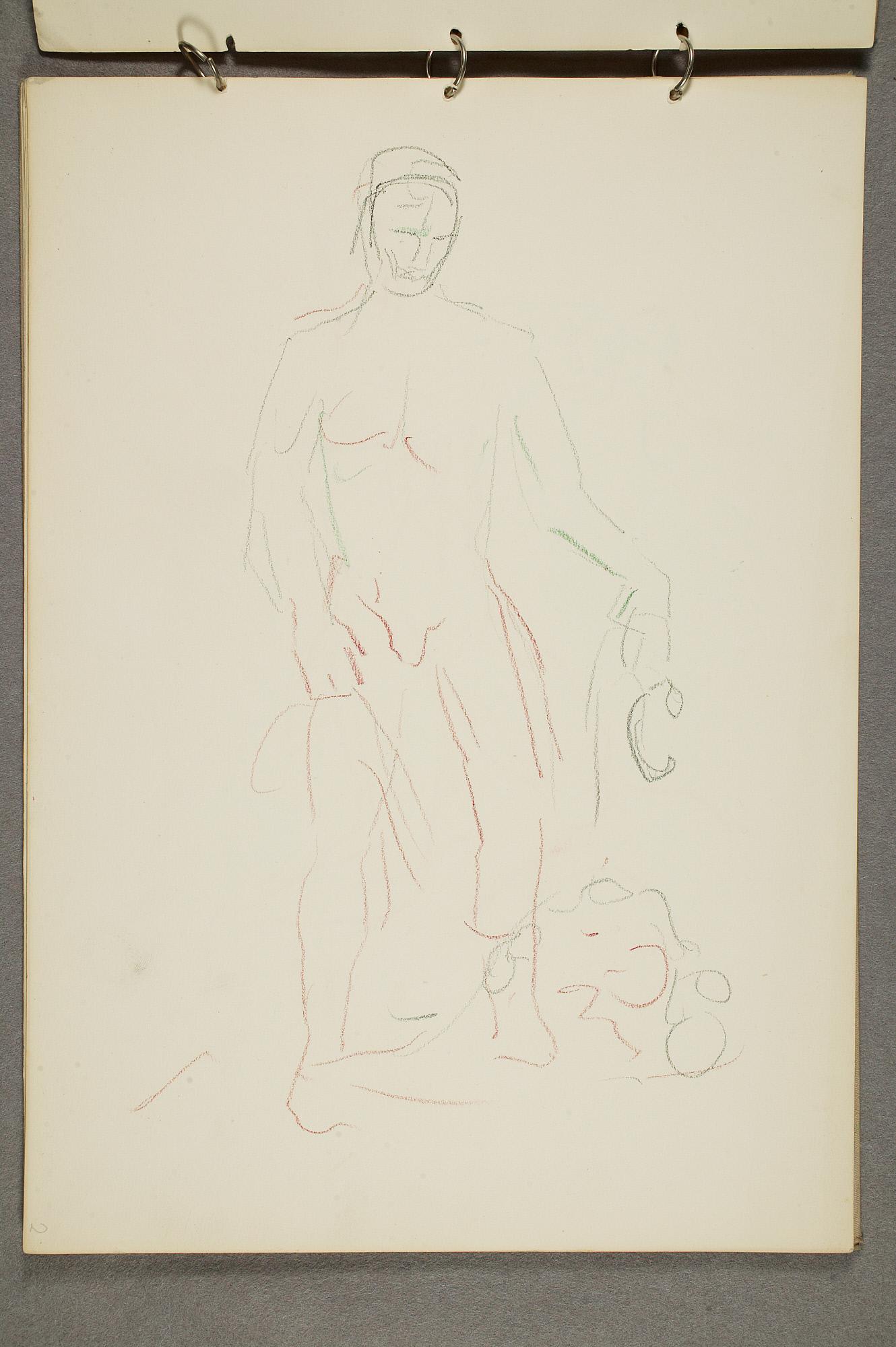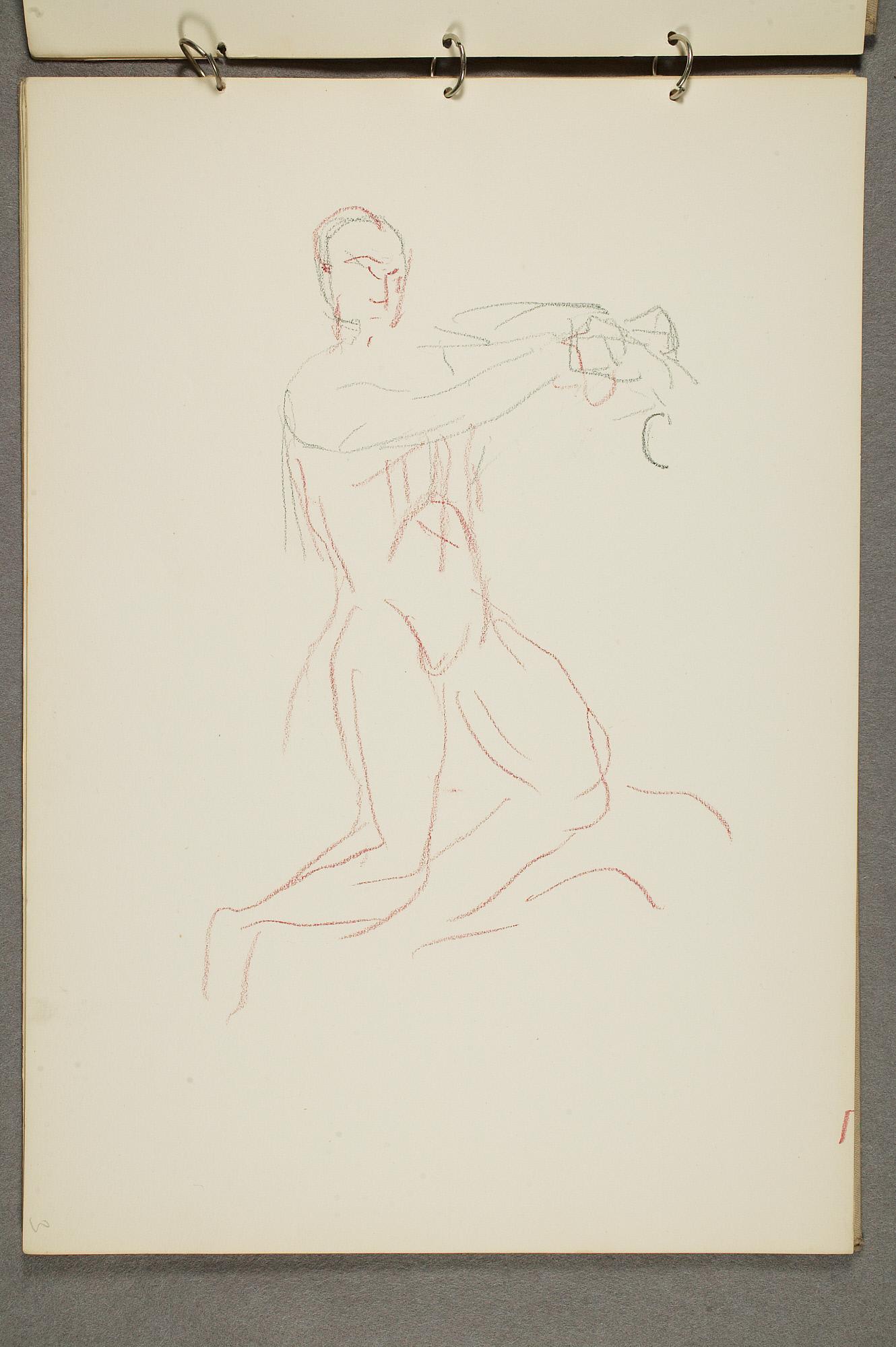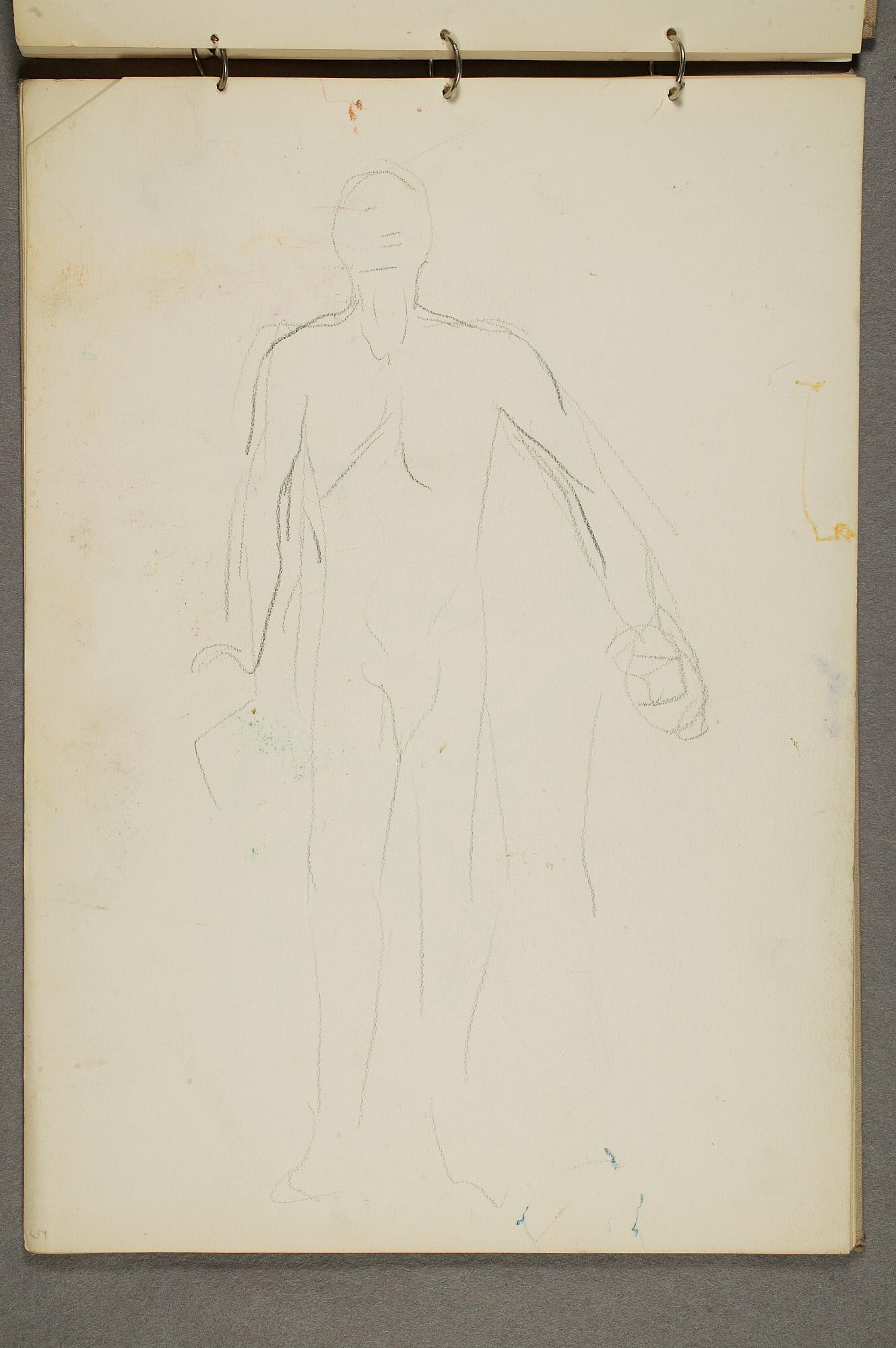 Comment:En del tegninger i denne skisseboken kan med sikkerhet dateres til 1925 og 1926, som «Fjell ved Åndalsnes» (MM.T.01478, MM.T.01479) og «Det røde hus» (MM.T.01467, MM.T.01468). Akttegningene i begynnelsen av skisseboken kan være av Claude Beriot som ble Munchs modell i 1918, og enda denne identifikasjonen er usikker, kan man ikke utelukke helt at boken ble tatt i bruk samme år. (PP)