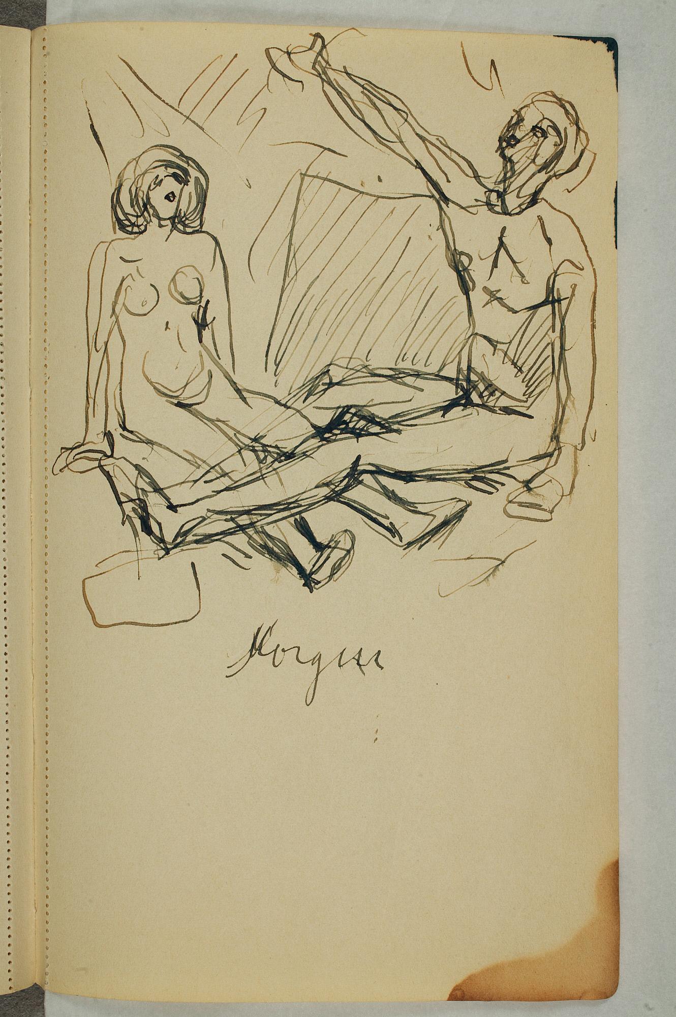 Comment:Skissebokens sene datering tar utgangspunkt i både motivvalg, teknikk og stil. (PP)