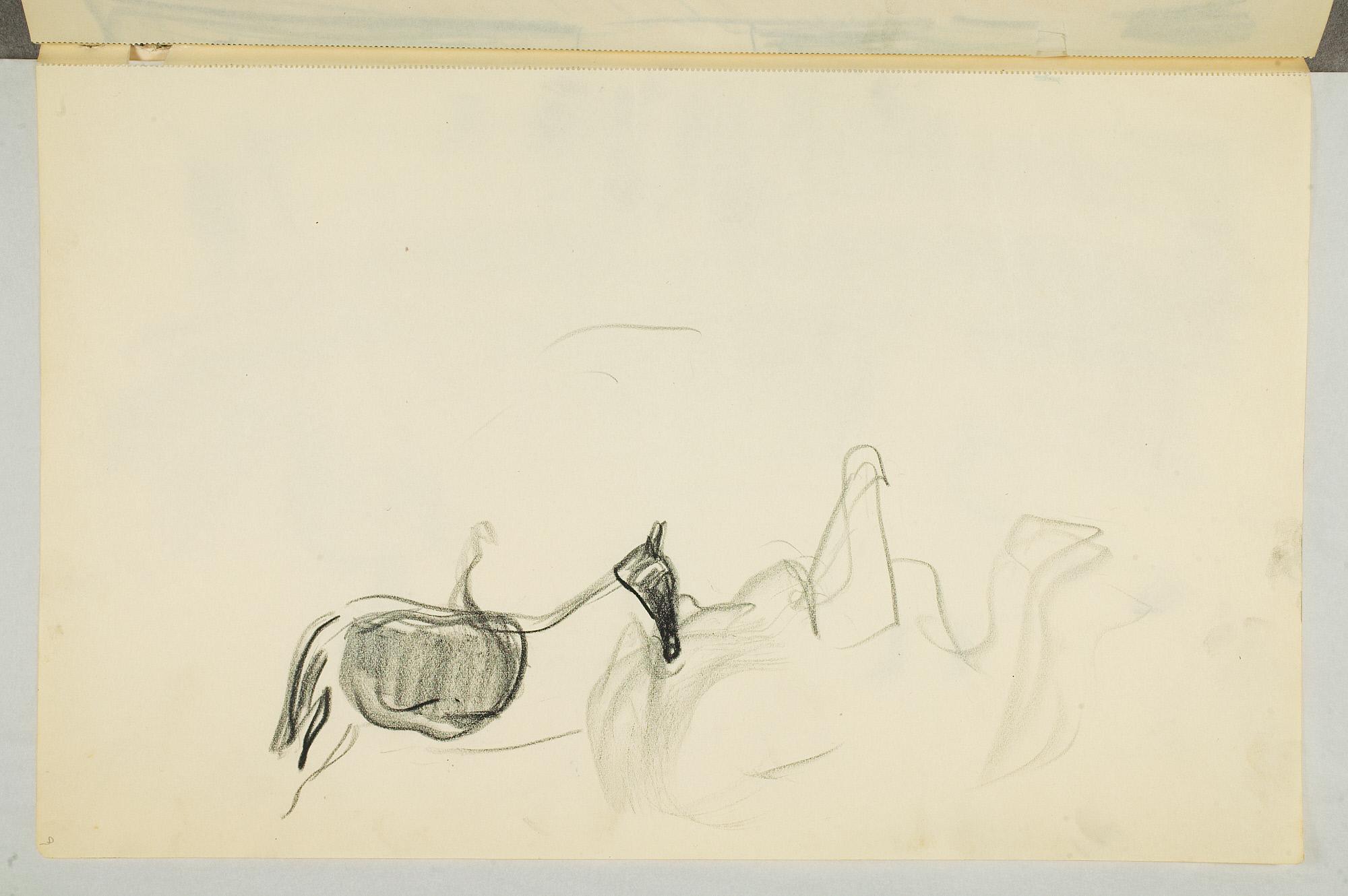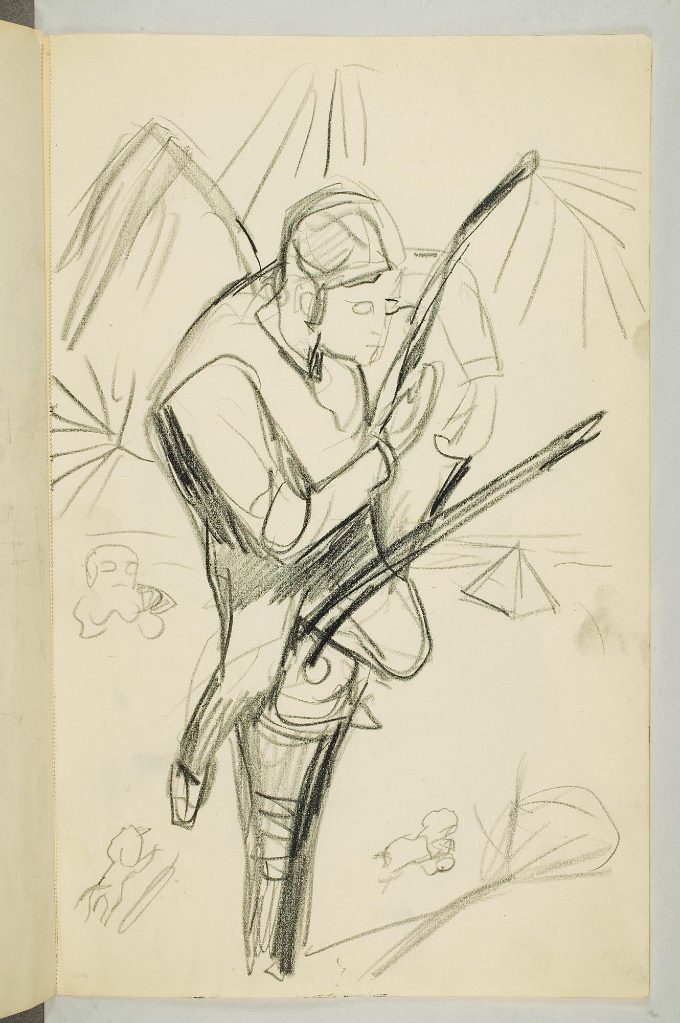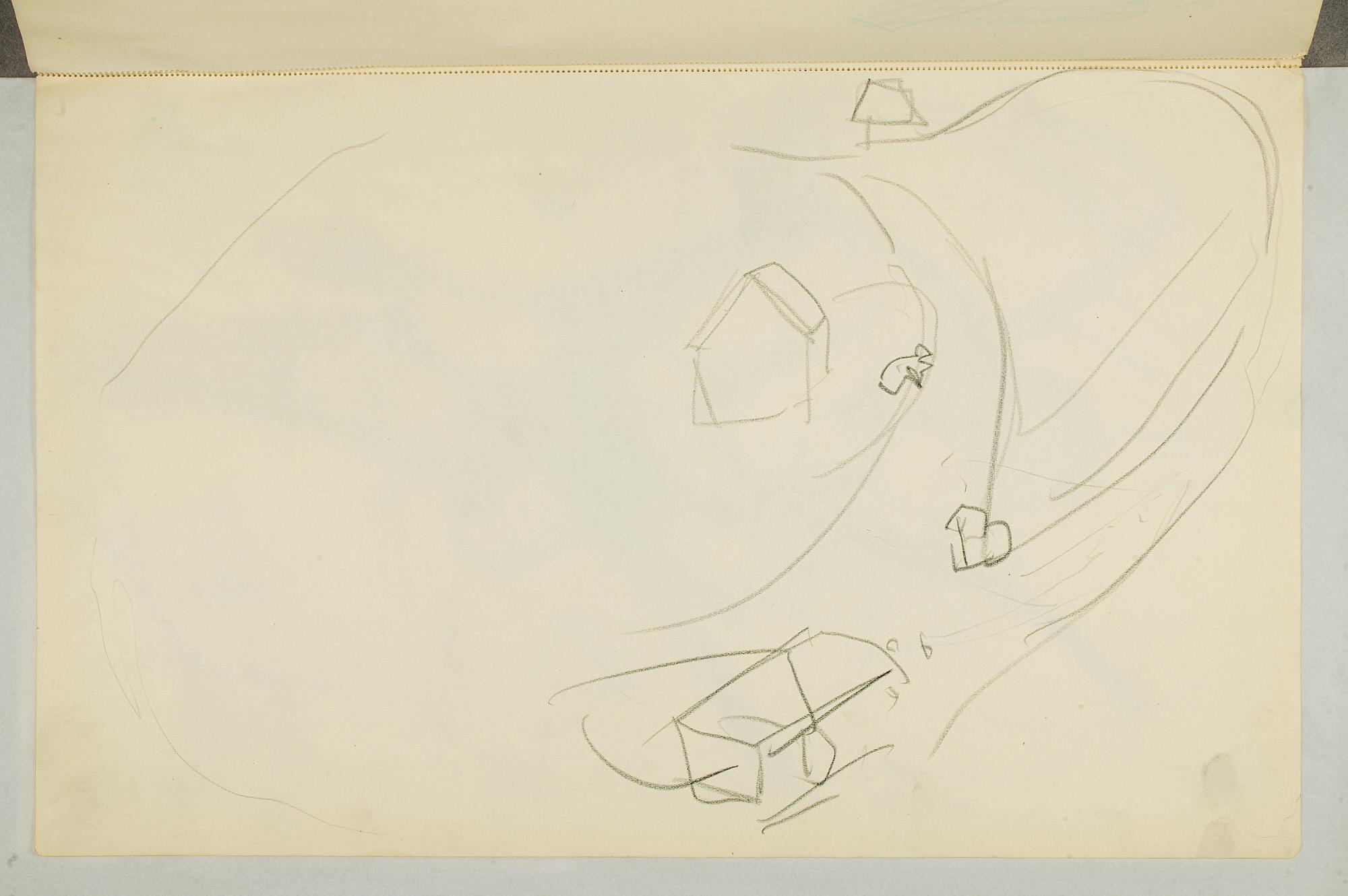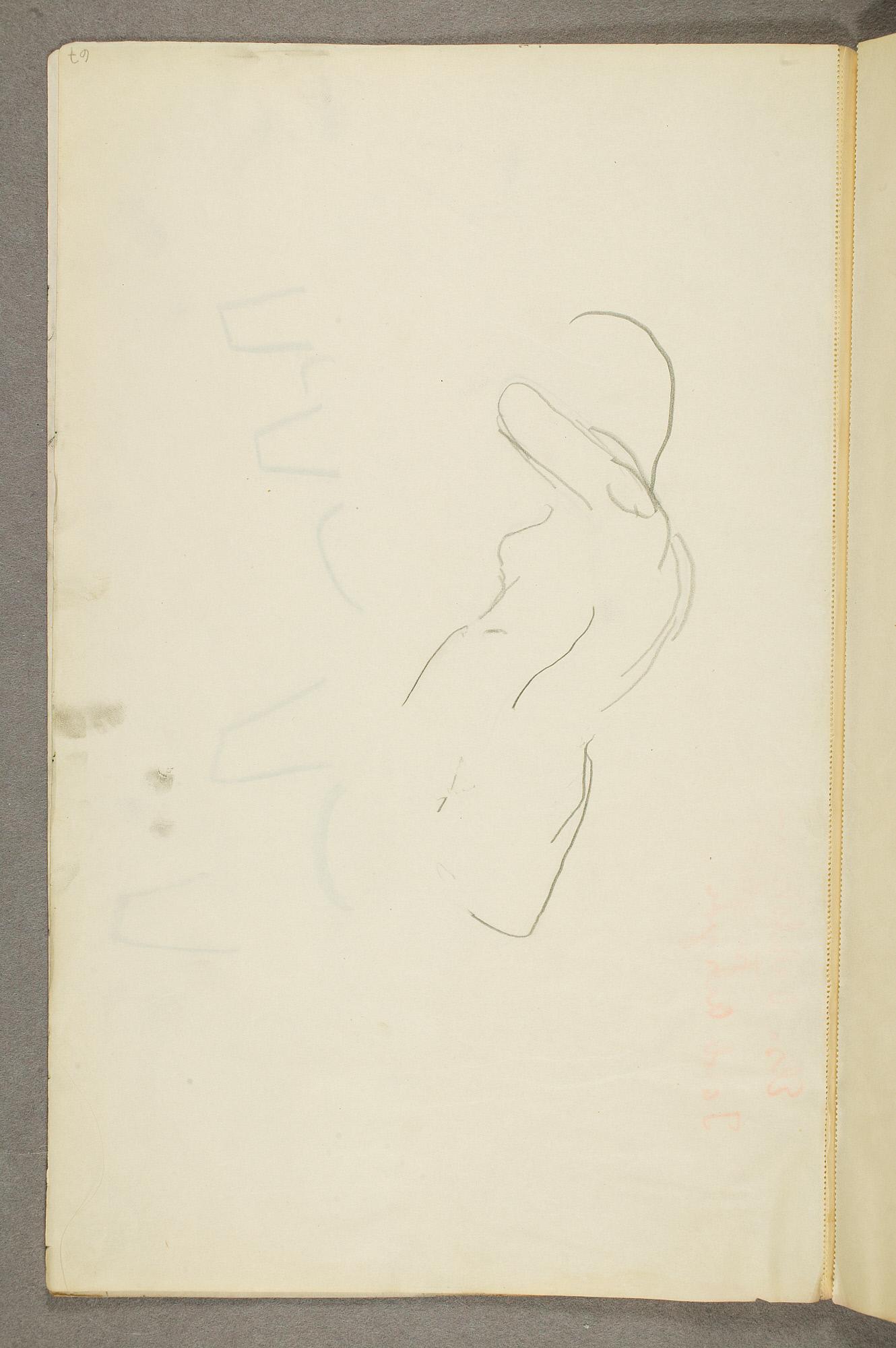 Comment:Da Cirkus Hagenbeck besøkte Kristiania i 1916, var Munch til stede ved flere forestillinger, i følge Ludvig Ravensberg. På en av disse hadde han tydeligvis med denne skisseboken, for her har han tegnet både akrobater, tigere, elefanter og apekatter. En skisse til "Alma Mater. Forskerne" kan være fra 1915, og enkelte idéskisser til atelierer på Ekely kan være opp mot 1918, men hovedtyngden av skisseboken kan altså med stor sikkerhet tidfestes til 1916. (MB)