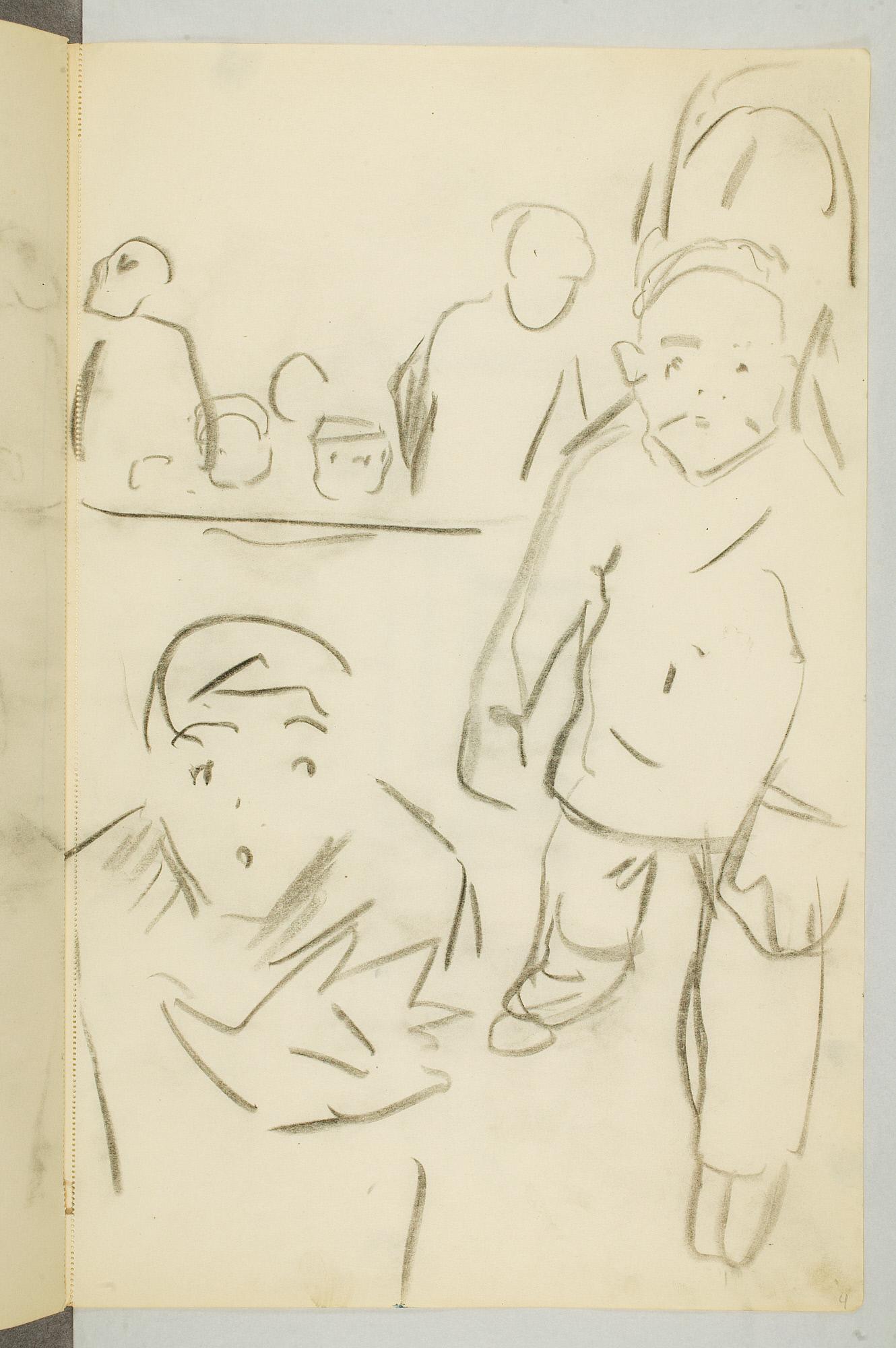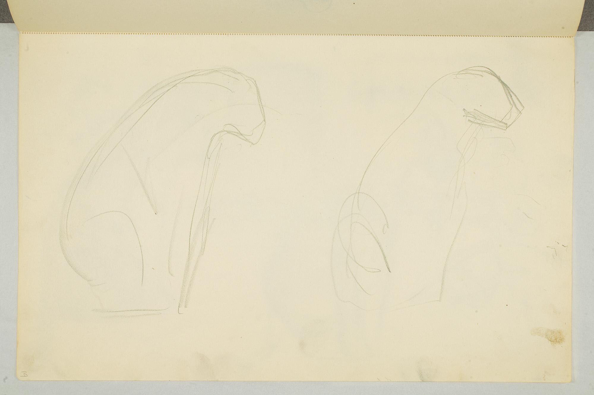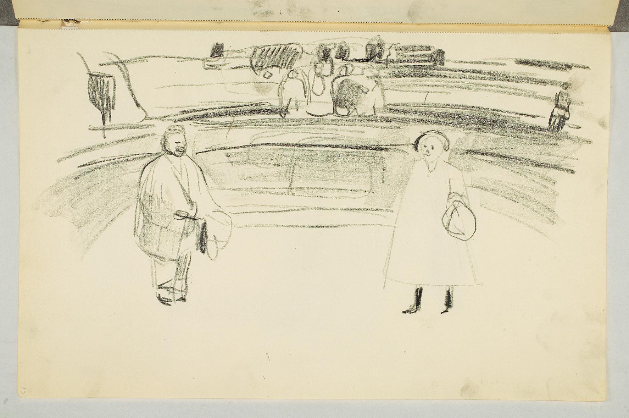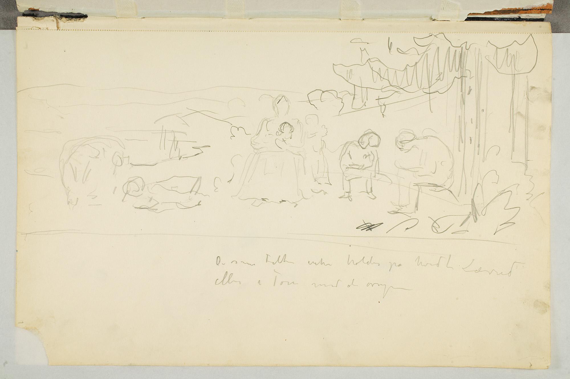 Comment:Da Cirkus Hagenbeck besøkte Kristiania i 1916, var Munch til stede ved flere forestillinger, i følge Ludvig Ravensberg. På en av disse hadde han tydeligvis med denne skisseboken, for her har han tegnet både akrobater, tigere, elefanter og apekatter. En skisse til "Alma Mater. Forskerne" kan være fra 1915, og enkelte idéskisser til atelierer på Ekely kan være opp mot 1918, men hovedtyngden av skisseboken kan altså med stor sikkerhet tidfestes til 1916. (MB)