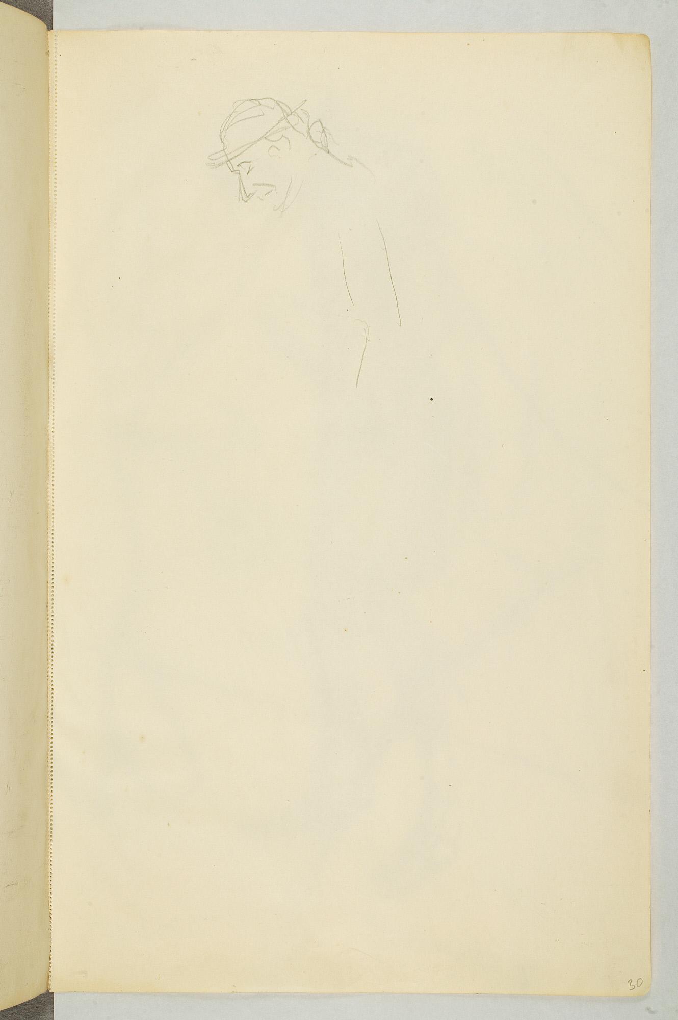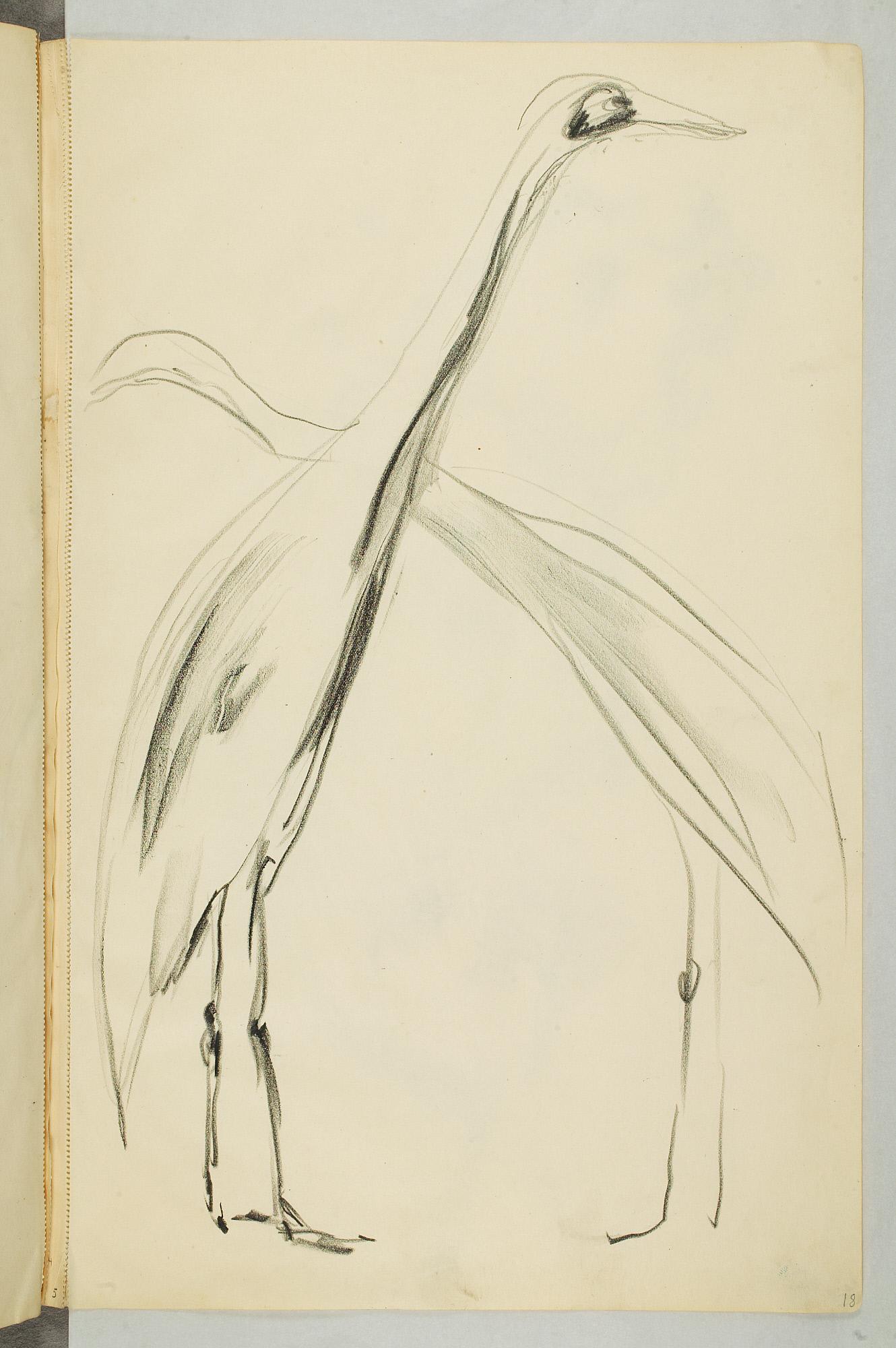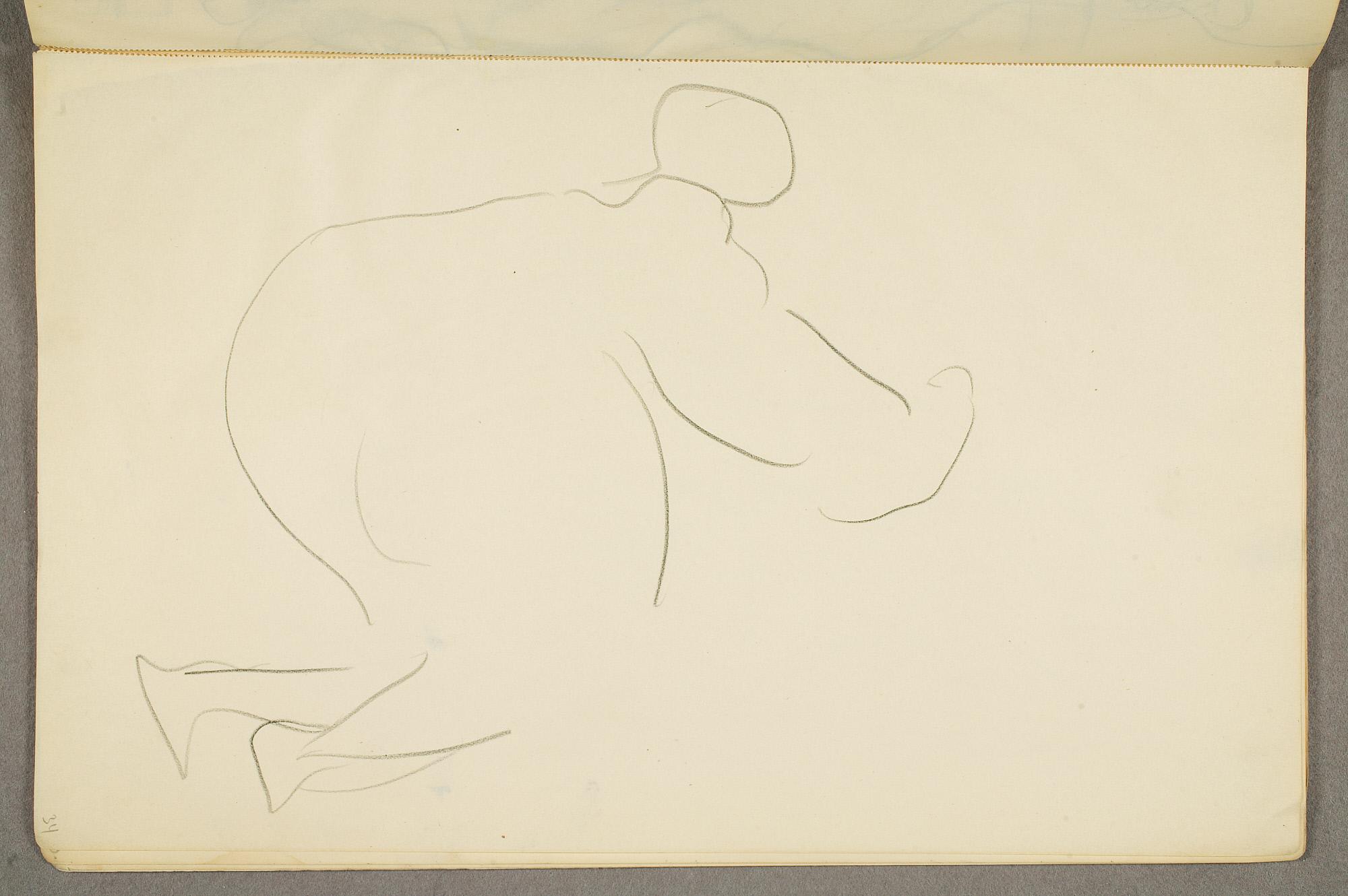 Comment:Påskriften "Regent Place / Zoological / Garden" på siste innside av permen til denne skisseboken viser at den ble brukt i London. Det eneste kjente oppholdet Munch hadde her var i 1913. Selv om bare dyretegningene på side 18 og 21 med stor sikkerhet er utført i London, er det ingen av de andre tegningene som nødvendiggjør en annen datering, og skisseboken som helhet gis 1913 som sannsynlig datering. (MB)