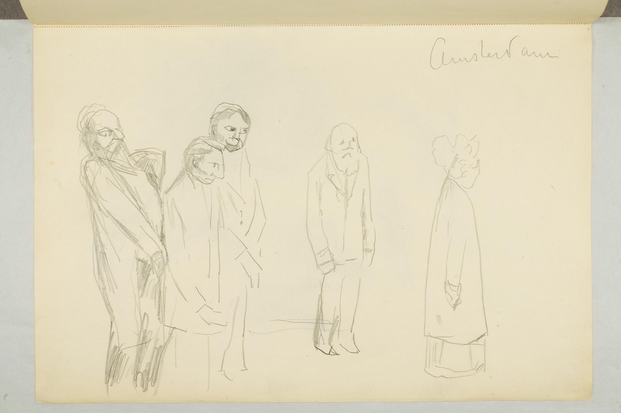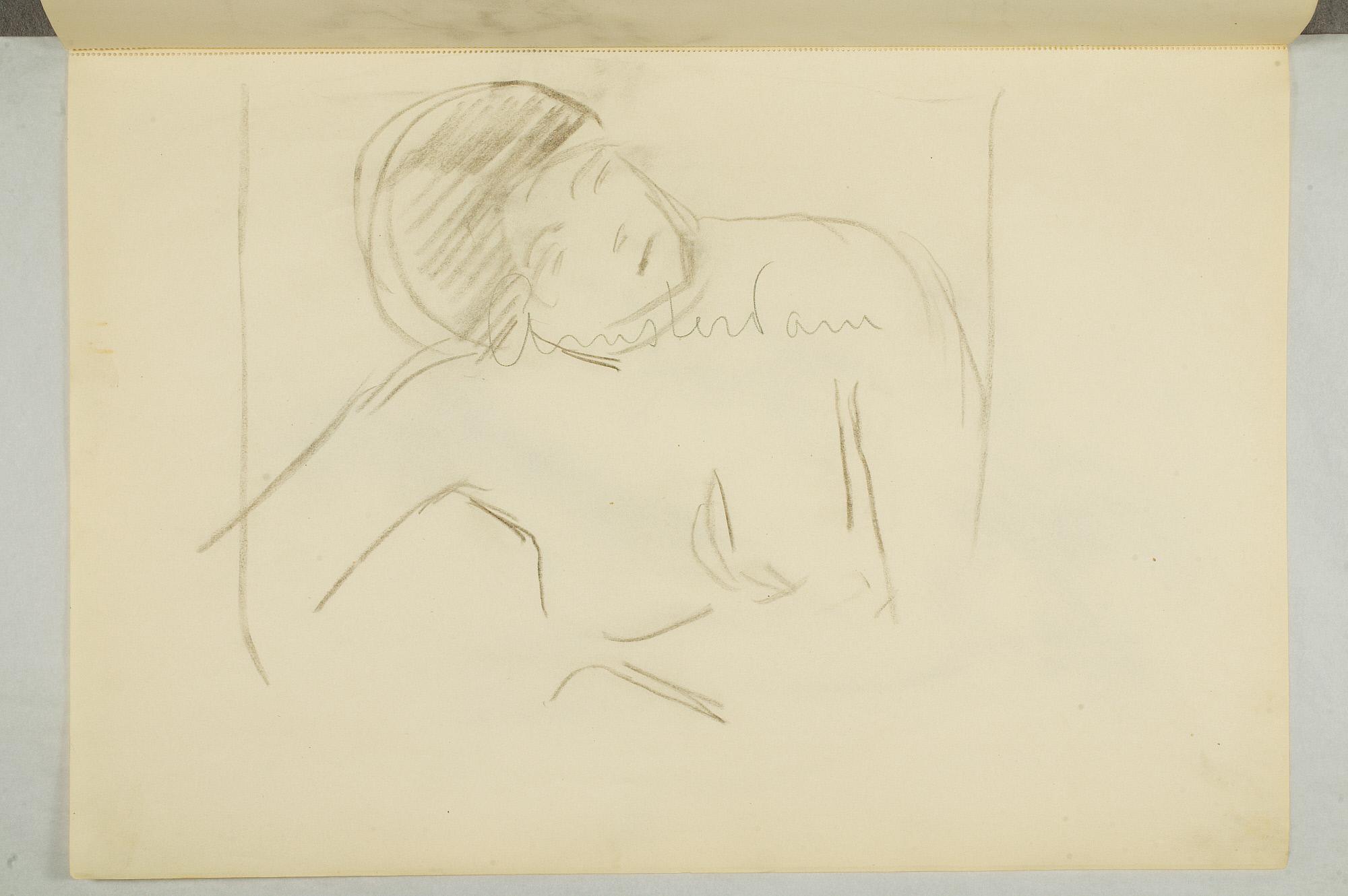 Comment:Påskriften "Amsterdam" finnes flere steder i denne skisseboken. Munch var i Amsterdam våren 1912, der han hadde et bilde med på en utstilling i Stedelijk, på vei mot Köln (se PN 850) og Sonderbund-utstillingen. Ellers er det en del motiver som samsvarer godt med 1913. (MB)