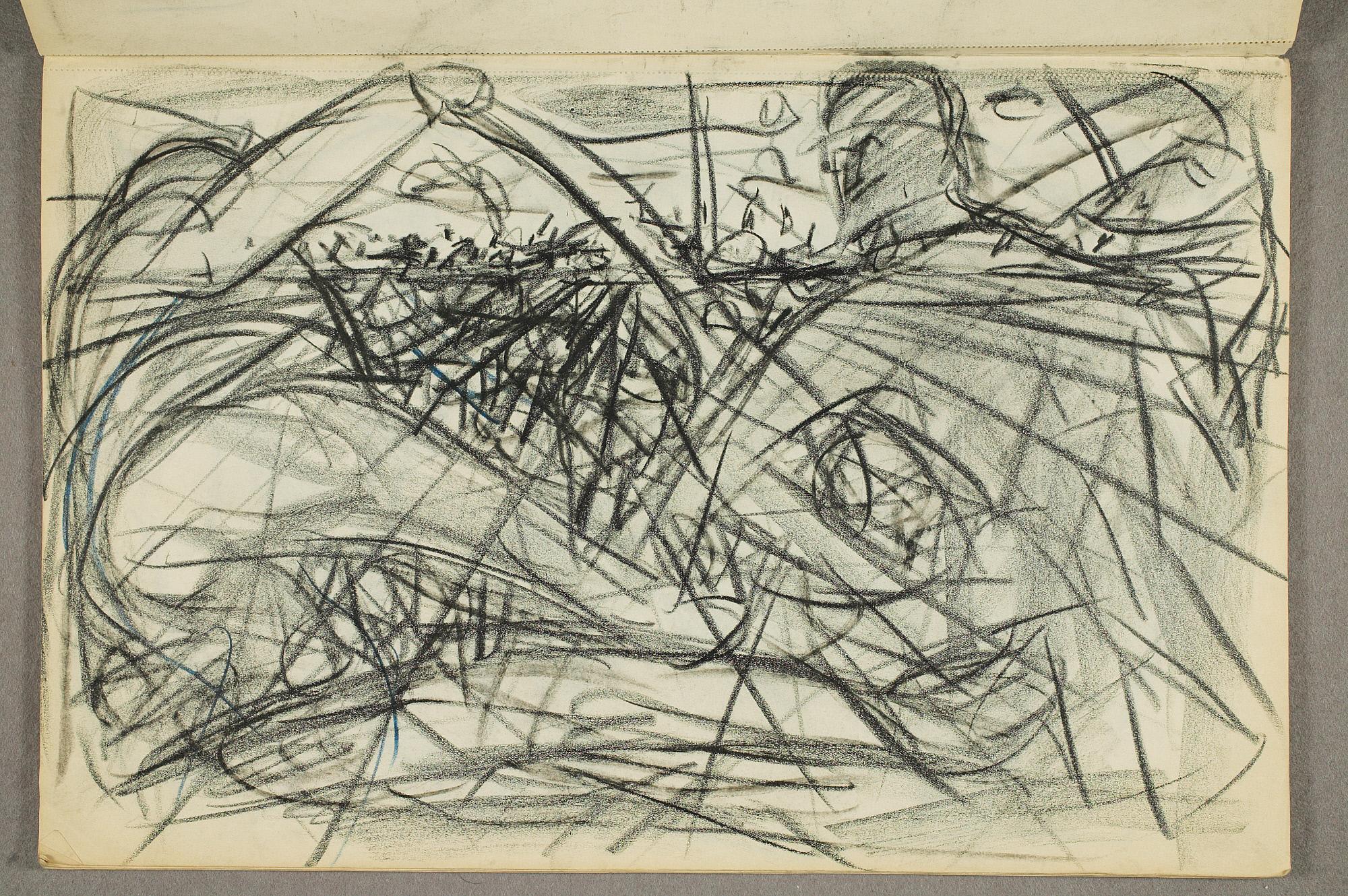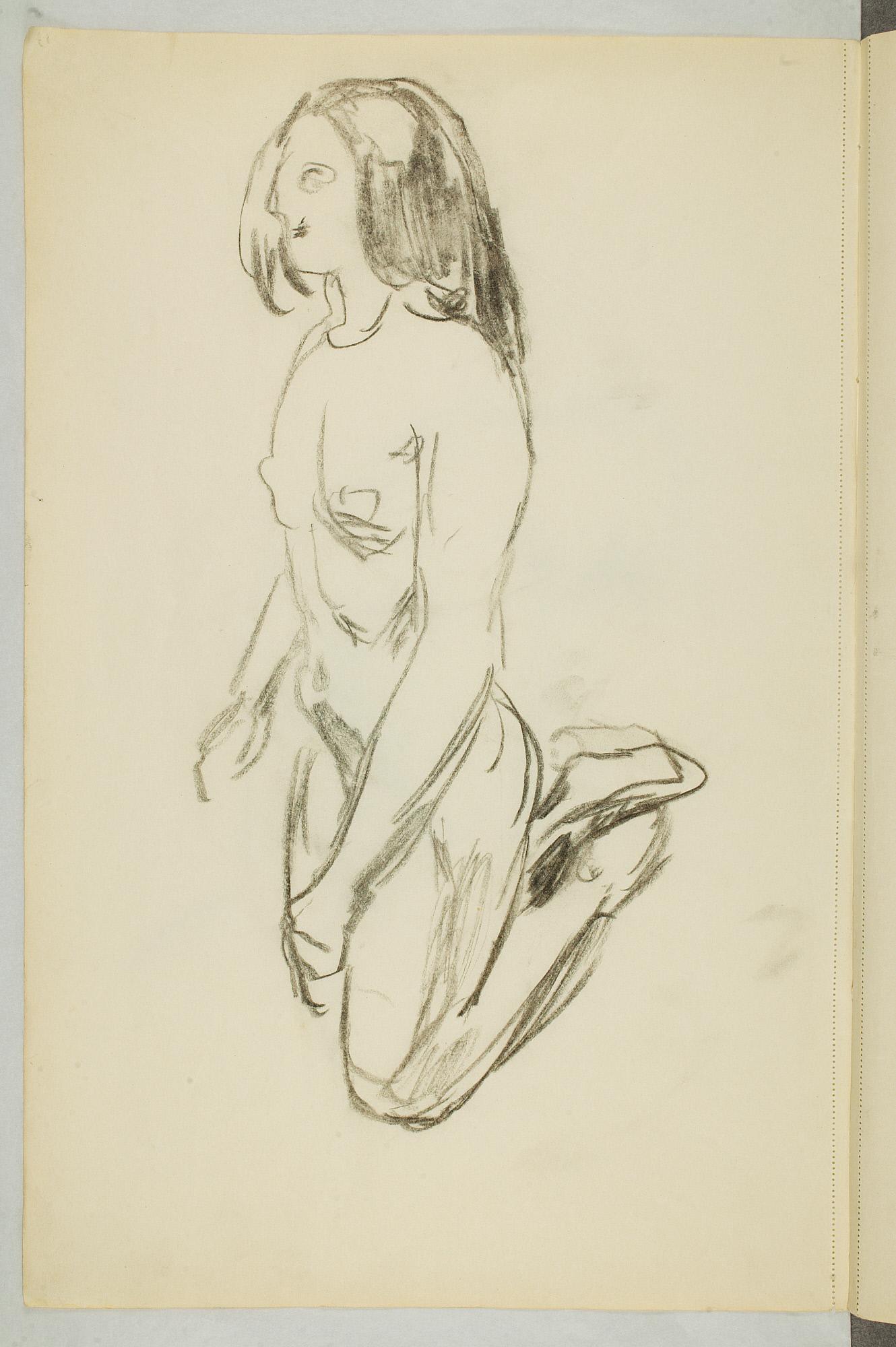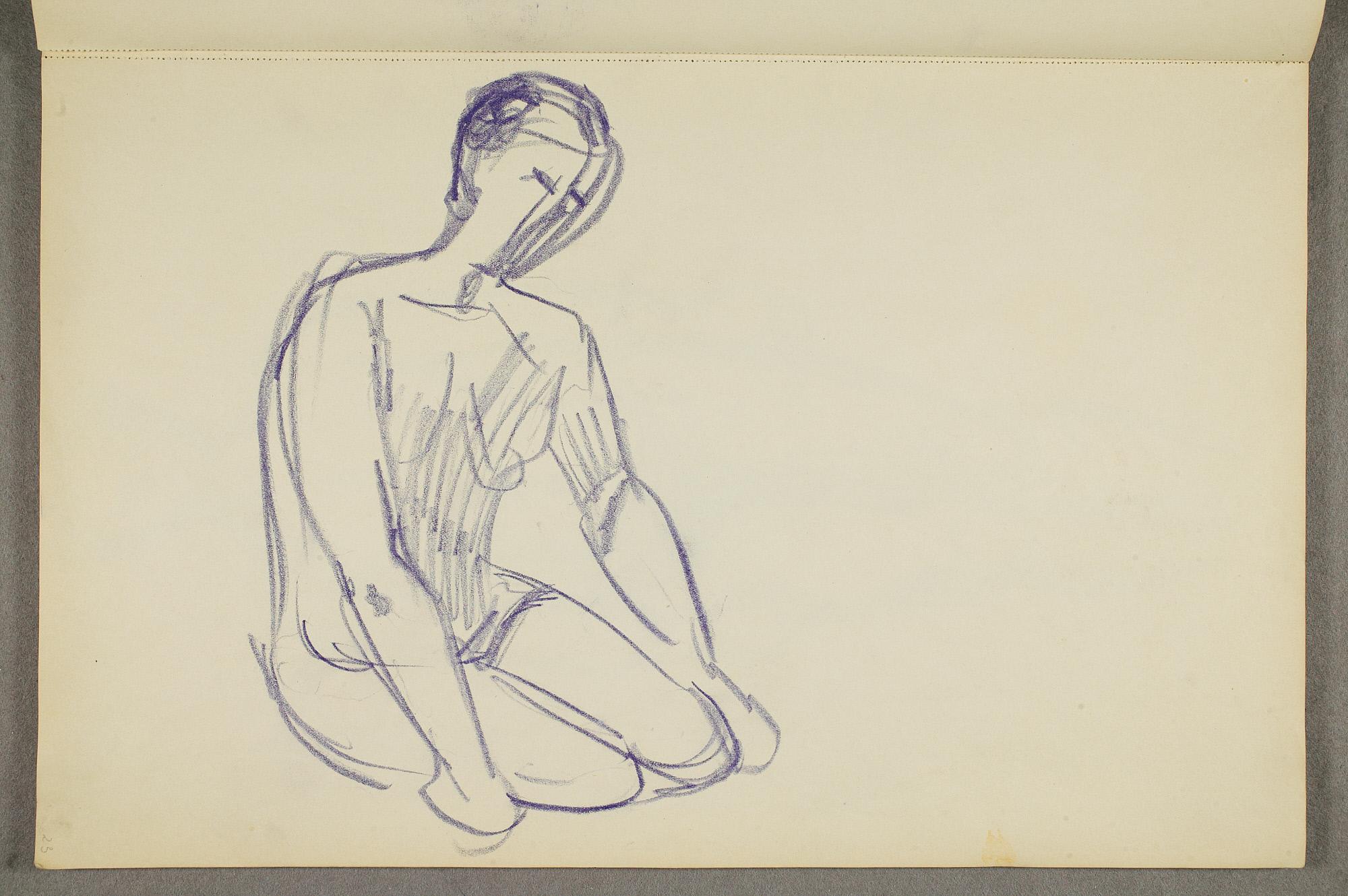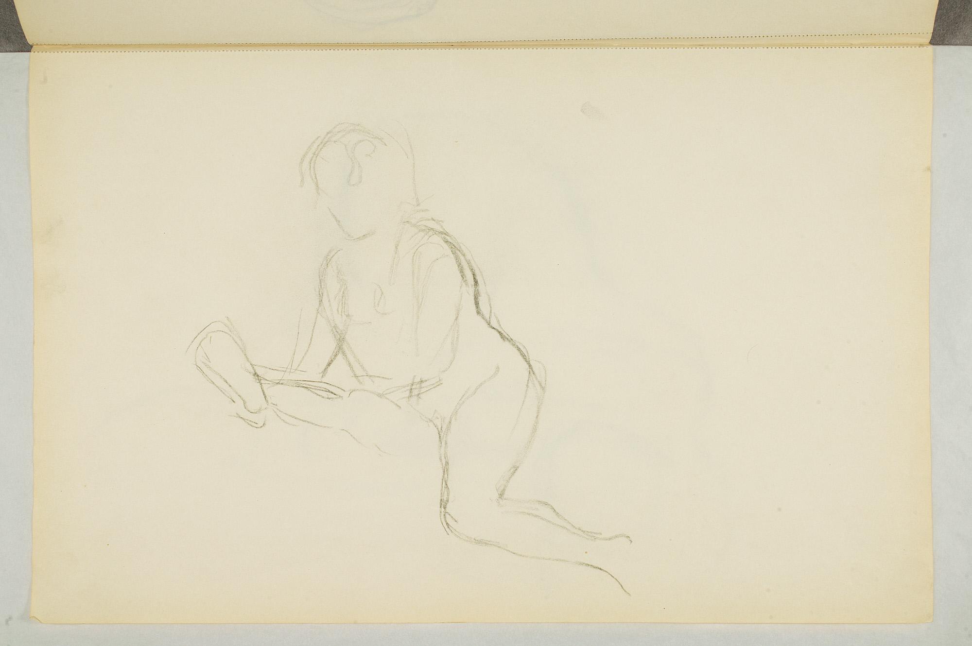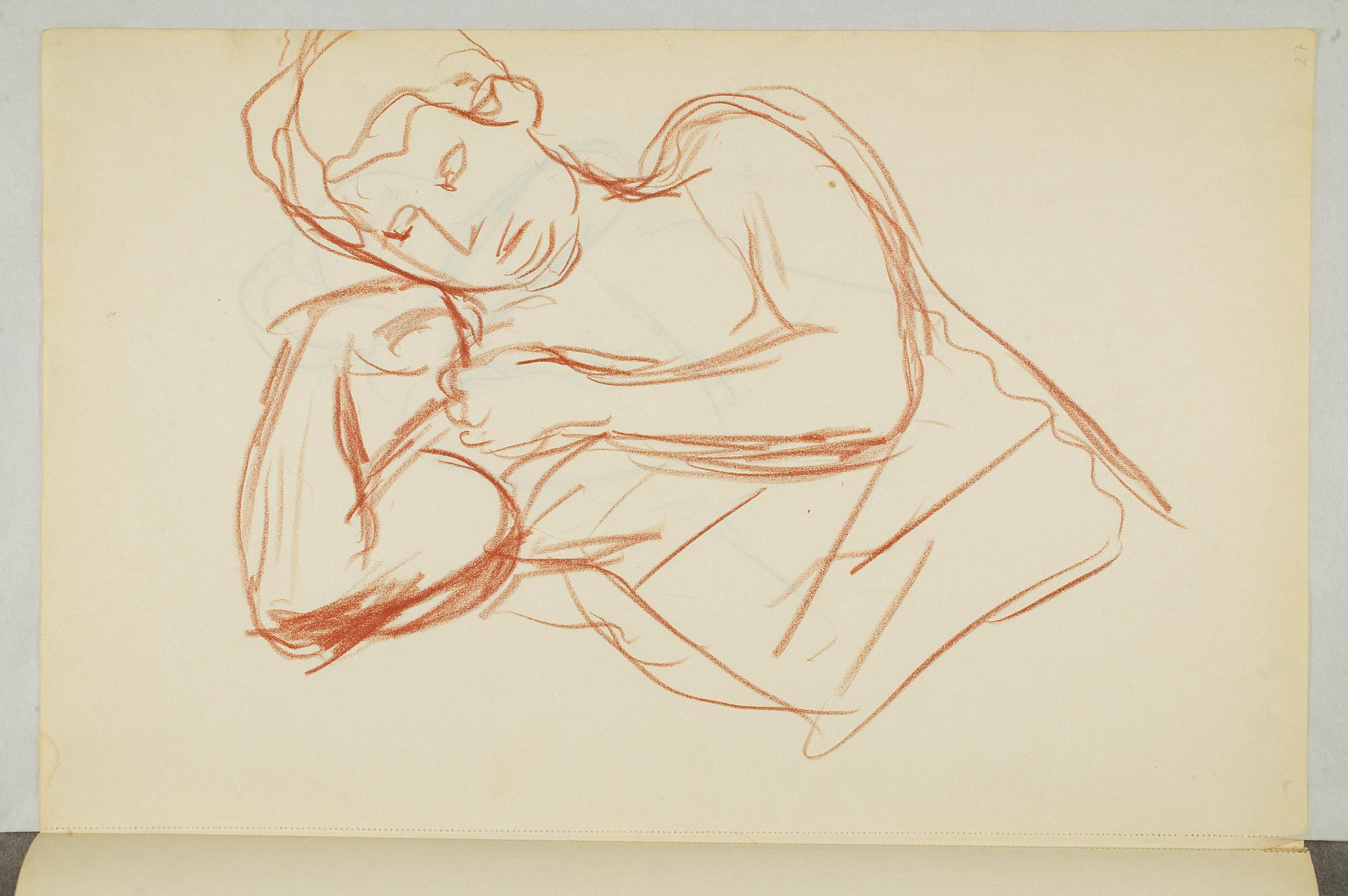 Comment:Tegningen på side 3 verso i denne skisseboken er et forarbeid til maleriet "Gammel mann med naken kvinne i fanget" (MM.M.00289) fra 1913–15, mens tegningen på side 65 verso har en klar sammenheng med de tre litografiene "Treet I", Treet II" og "Treet III" (MM.G.00382, MM.G.00444 og MM.G.00445) fra 1917. Det sannsynligs tidsspennet for boken blir da 1913–18. (MB)