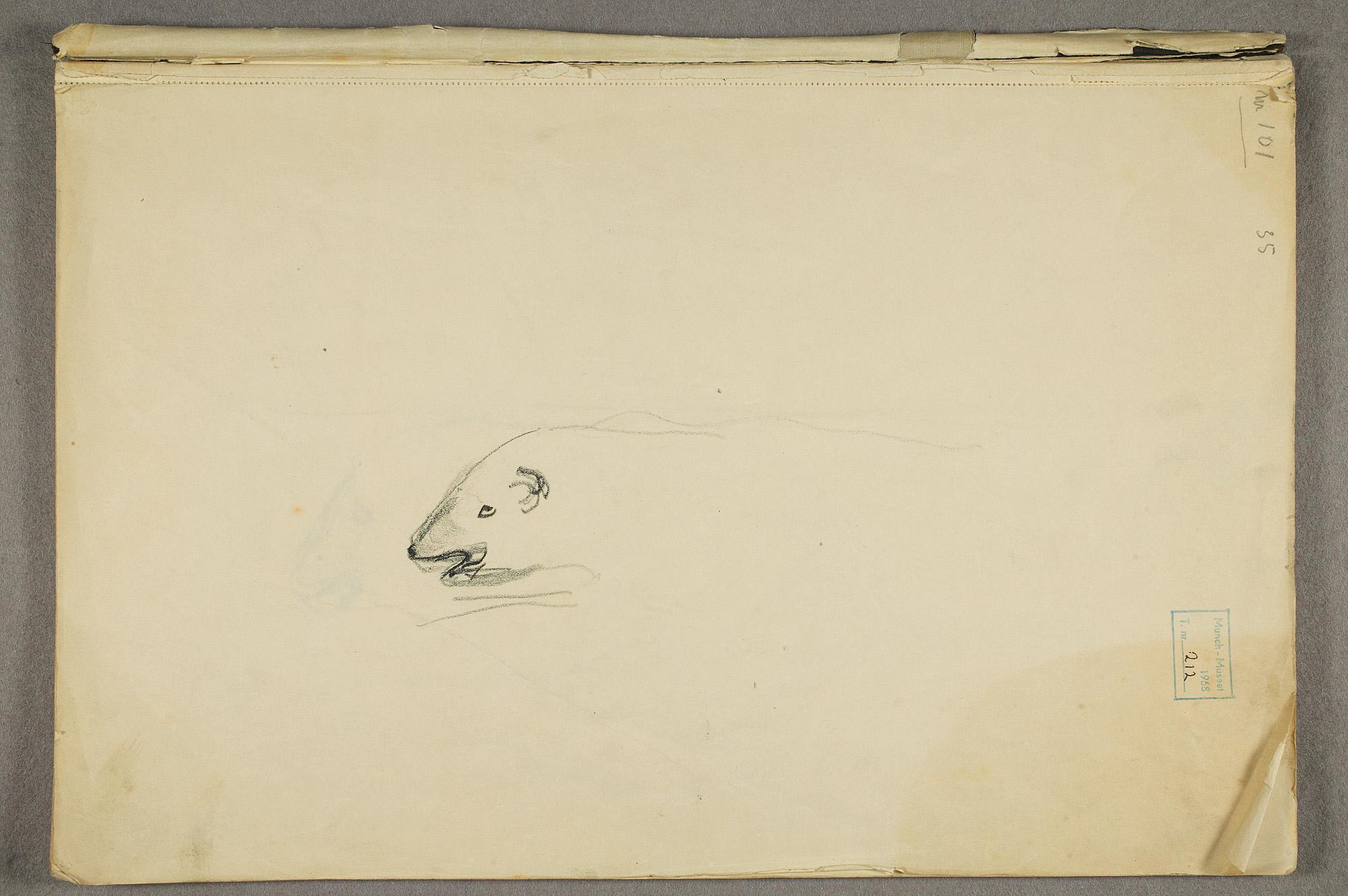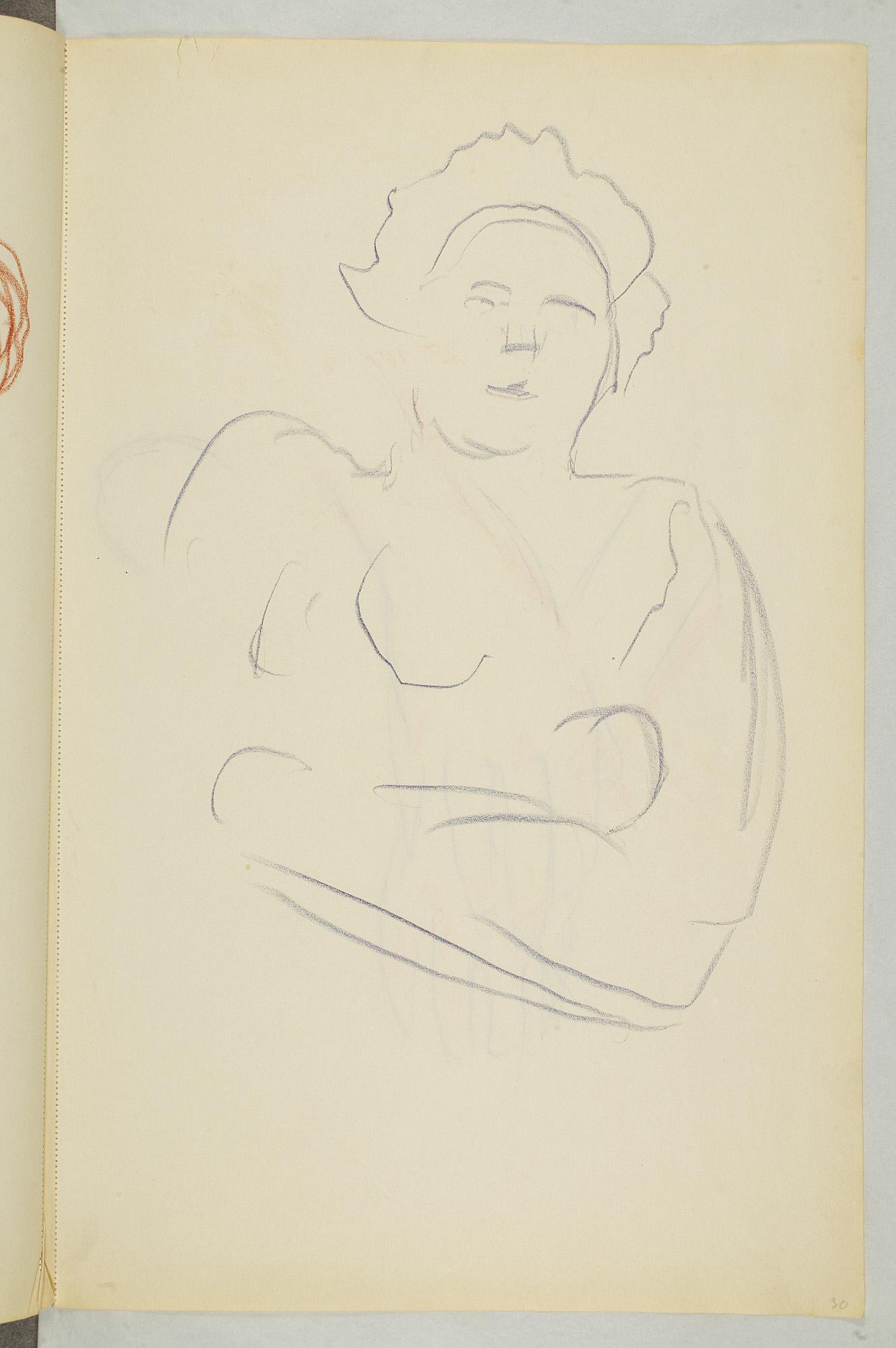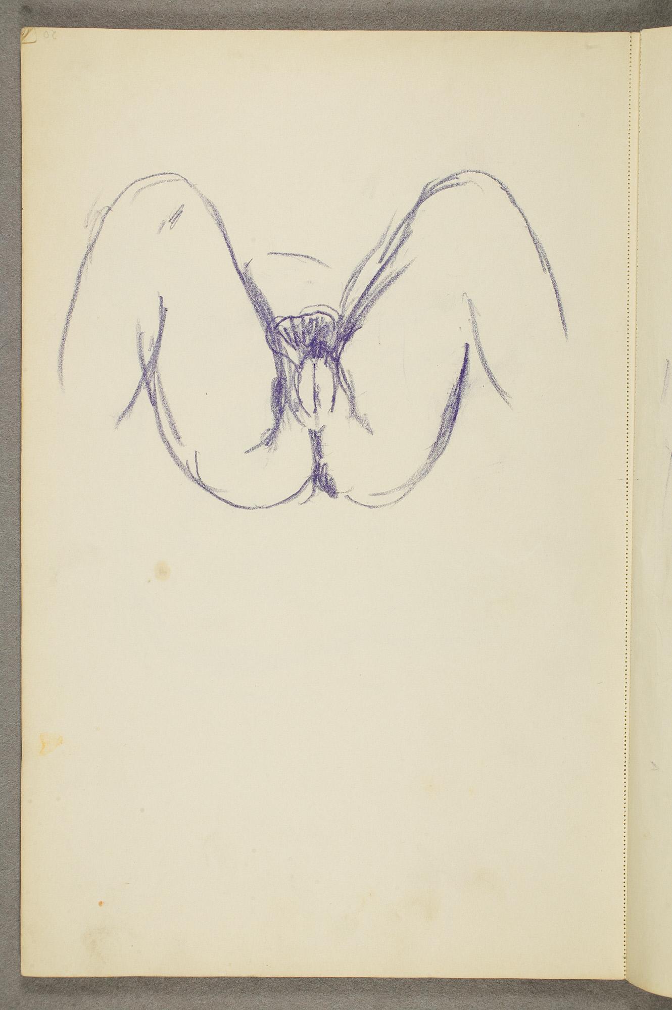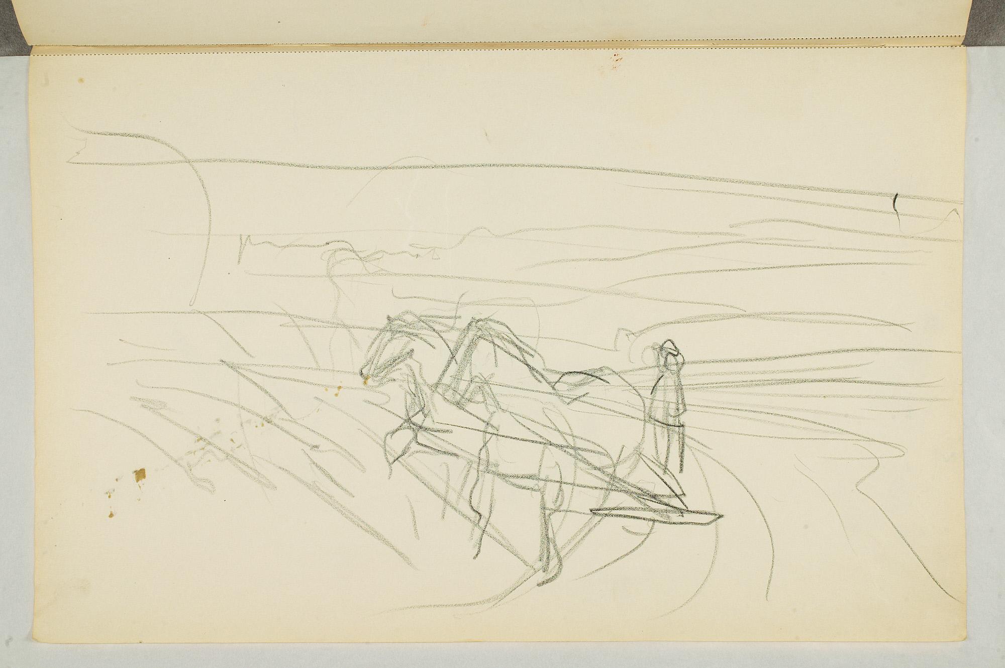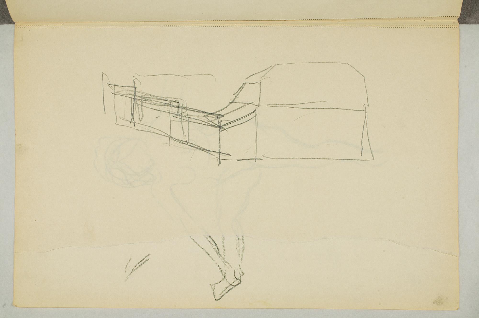 Comment:Tegningen på side 3 verso i denne skisseboken er et forarbeid til maleriet "Gammel mann med naken kvinne i fanget" (MM.M.00289) fra 1913–15, mens tegningen på side 65 verso har en klar sammenheng med de tre litografiene "Treet I", Treet II" og "Treet III" (MM.G.00382, MM.G.00444 og MM.G.00445) fra 1917. Det sannsynligs tidsspennet for boken blir da 1913–18. (MB)