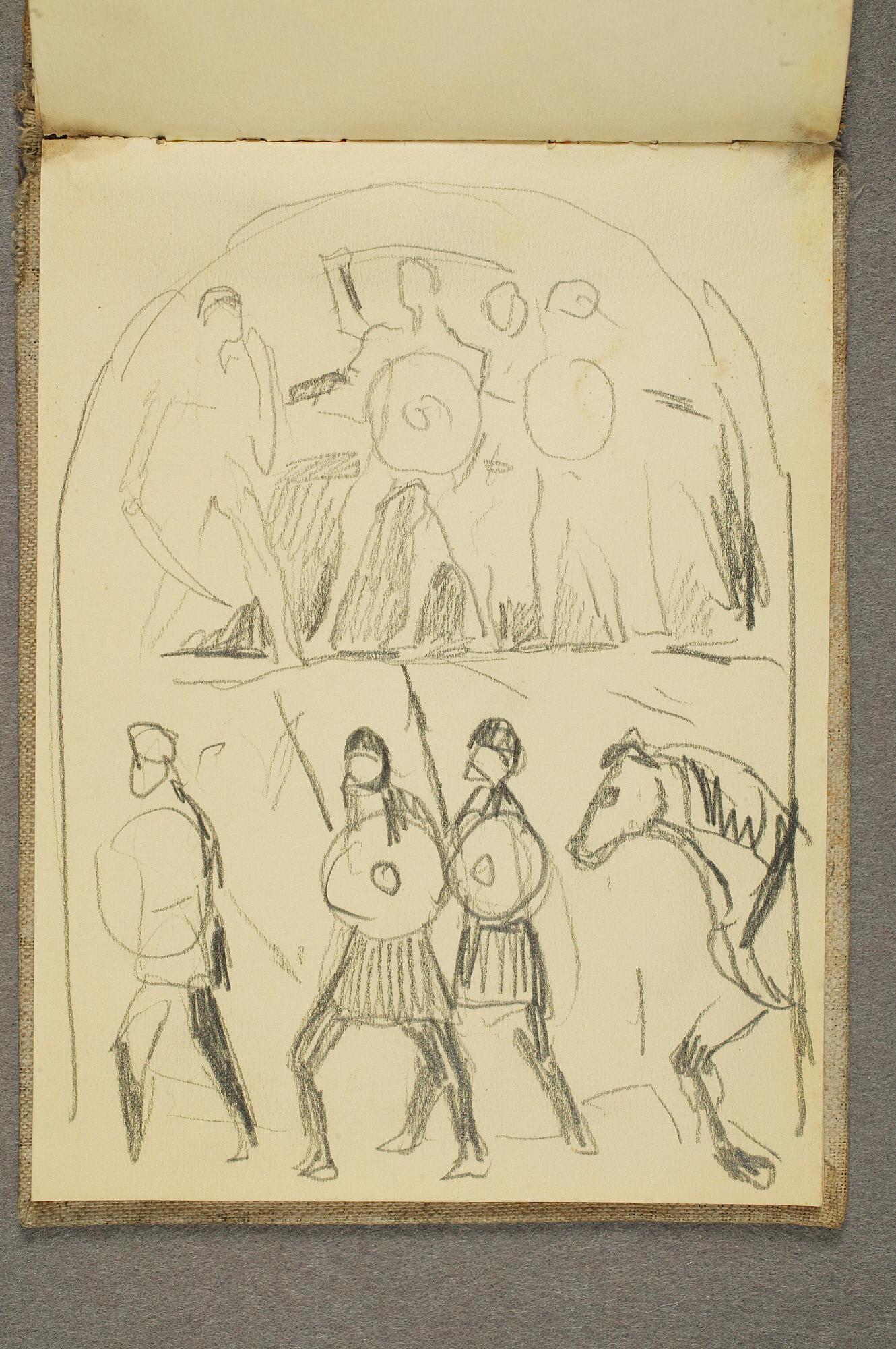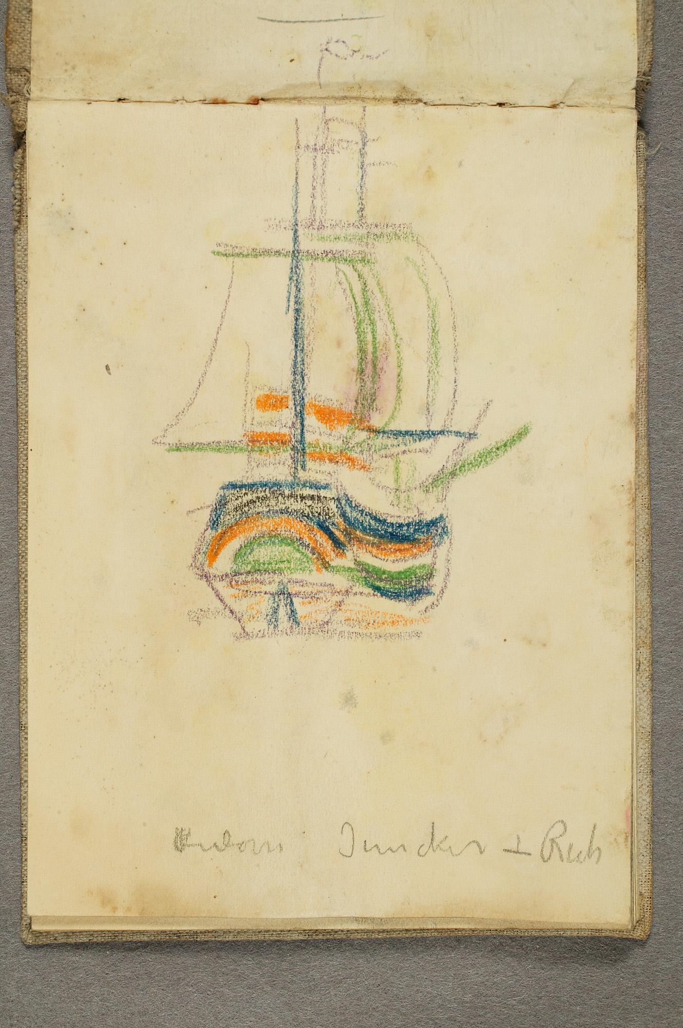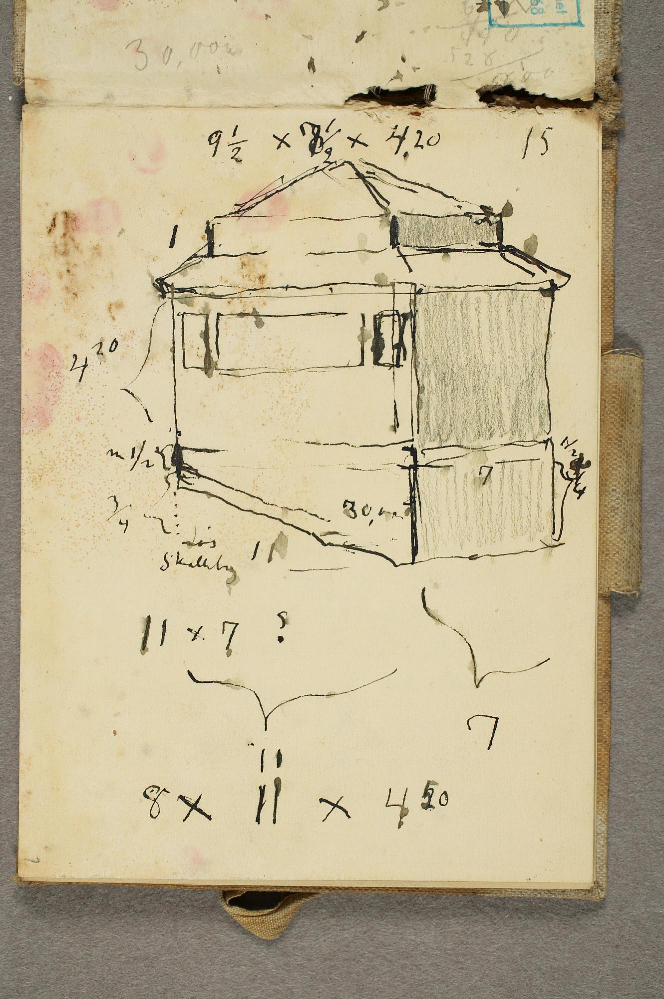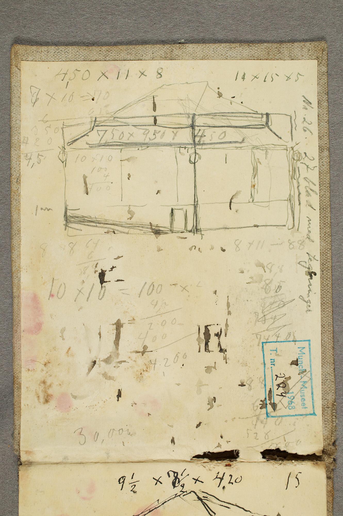 Perm: grått lerret med blyantholder og knyteband. 118 × 158 × 0,22 mm (h × b × t)