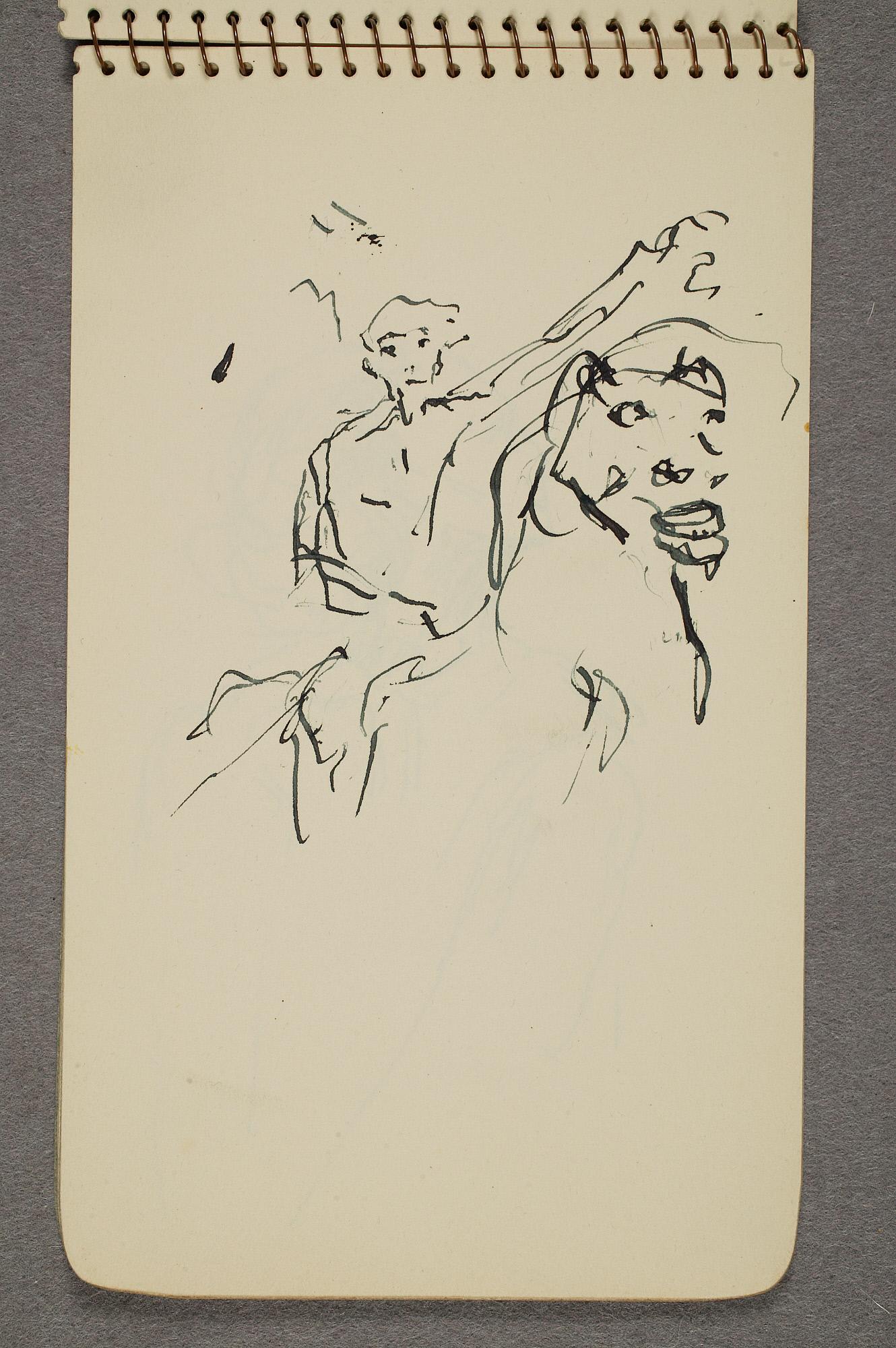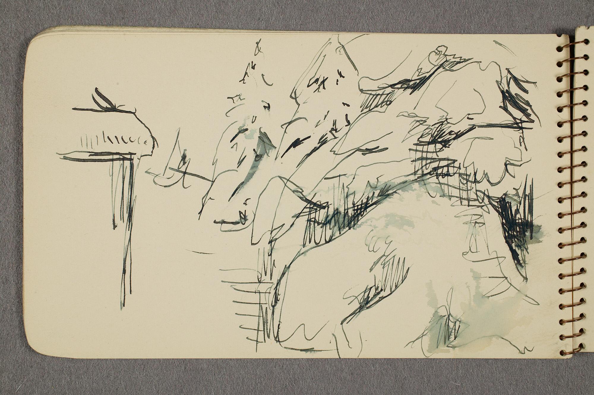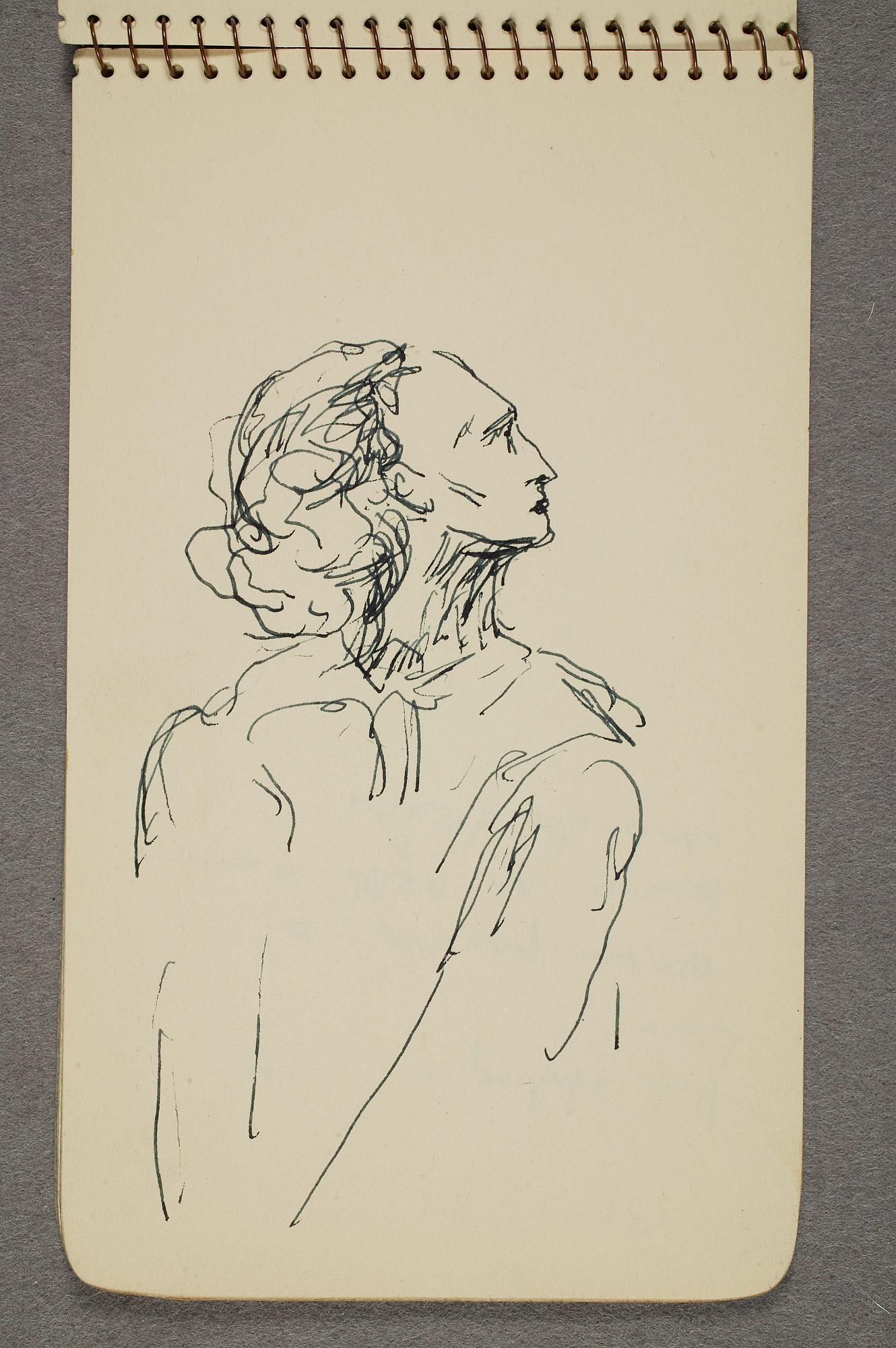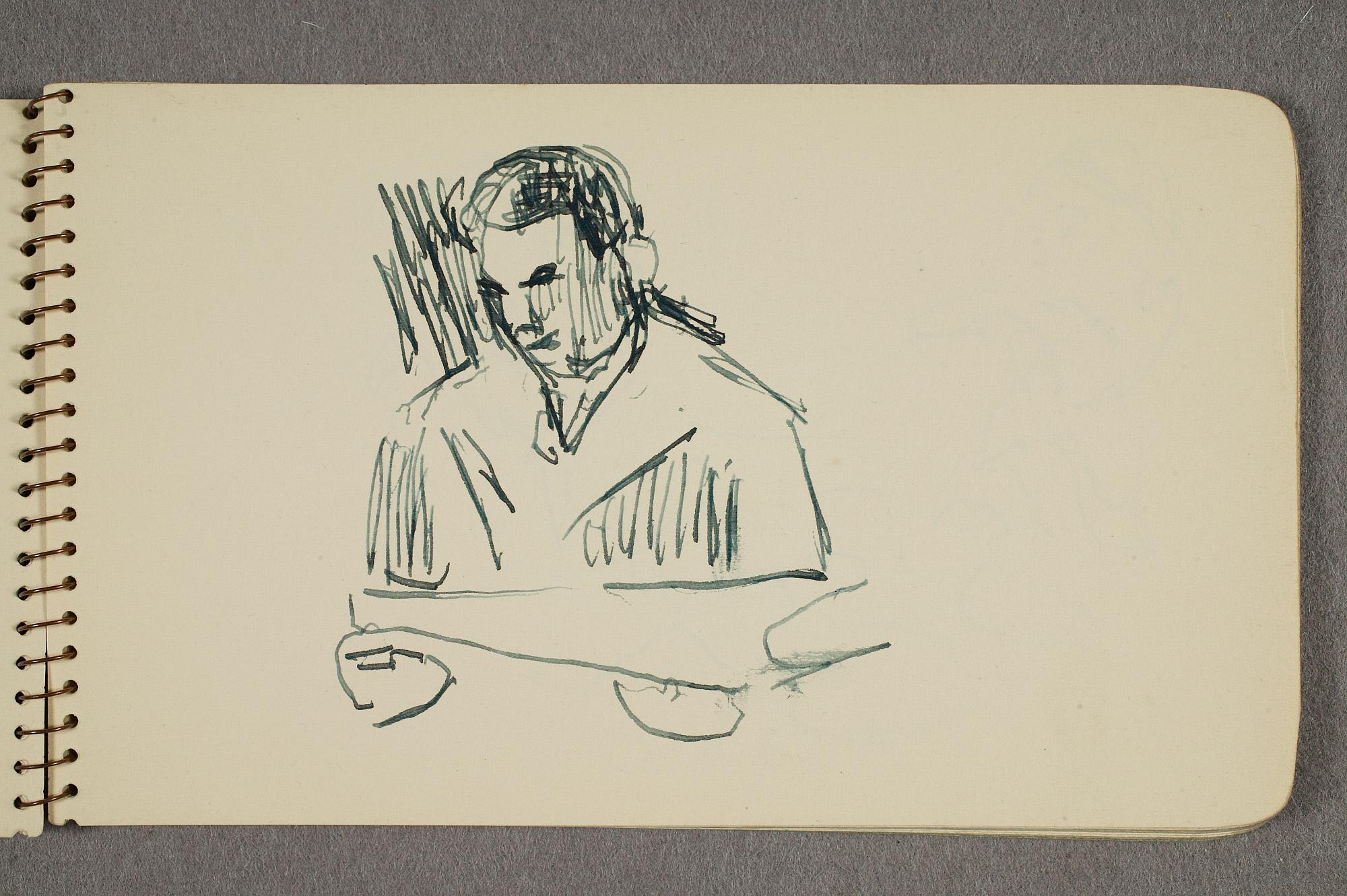 Perm: grågrønn papp med spiralrygg, merket Croquis Dessin. 106 × 179 × 0,17 mm (h × b × t)