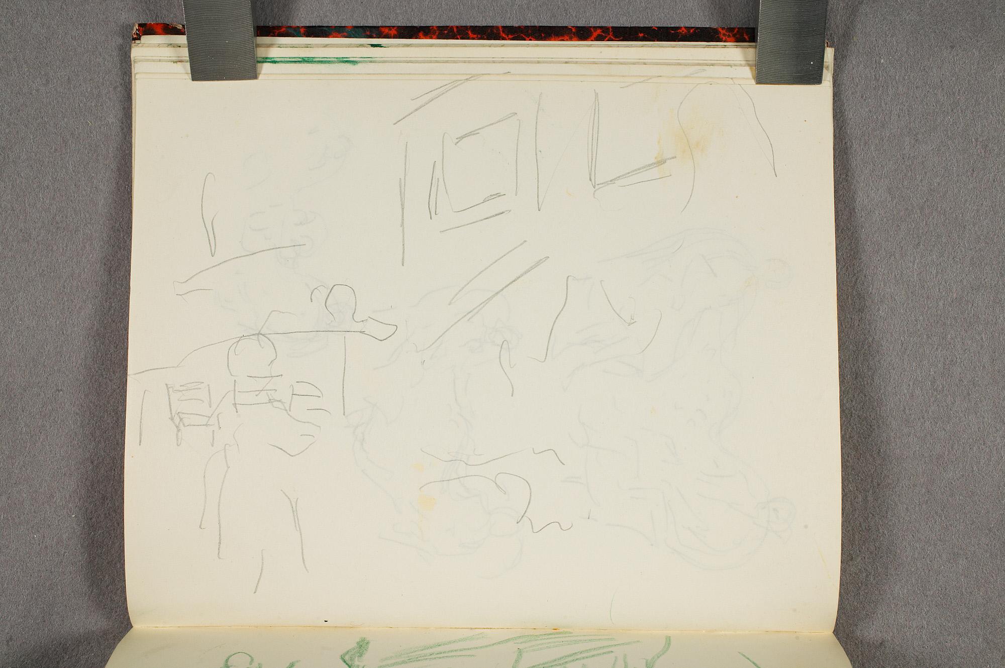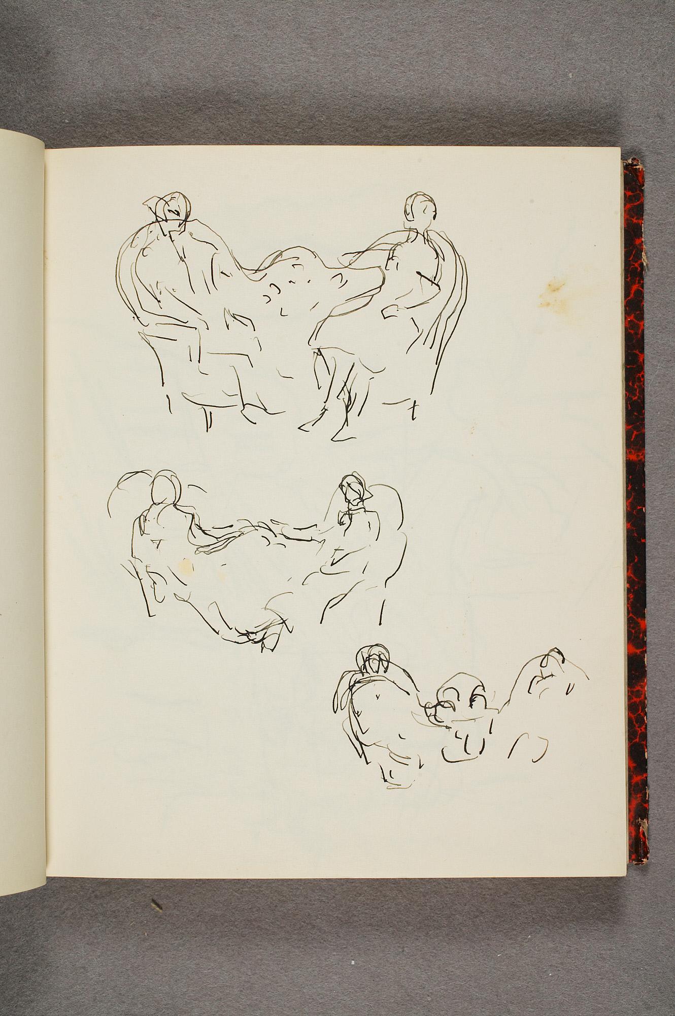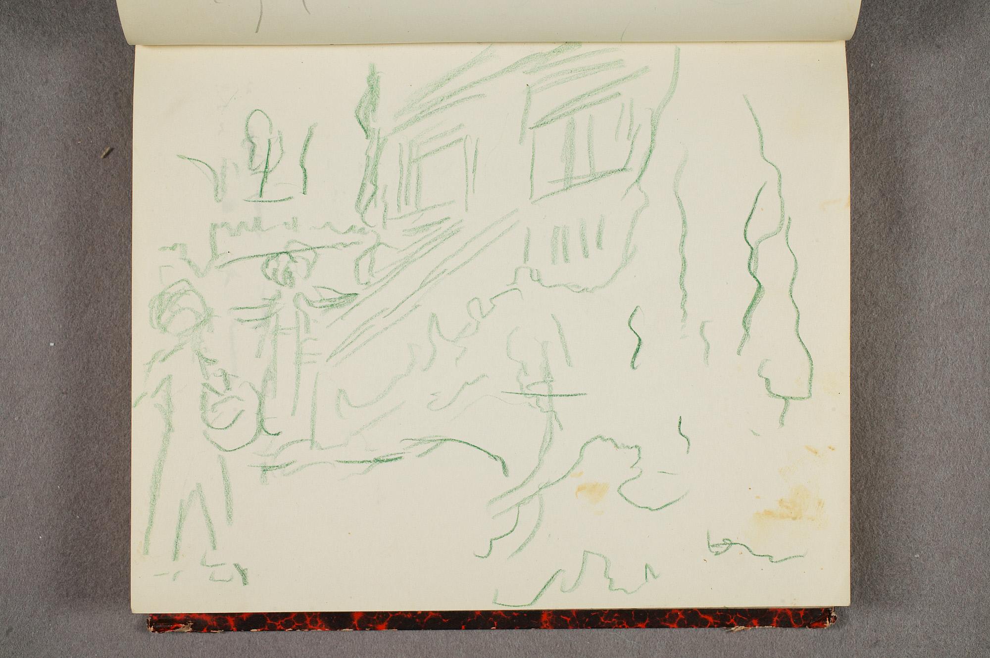 Perm: brunmarmorert papp, lerretsrygg, påklistret merkelapp