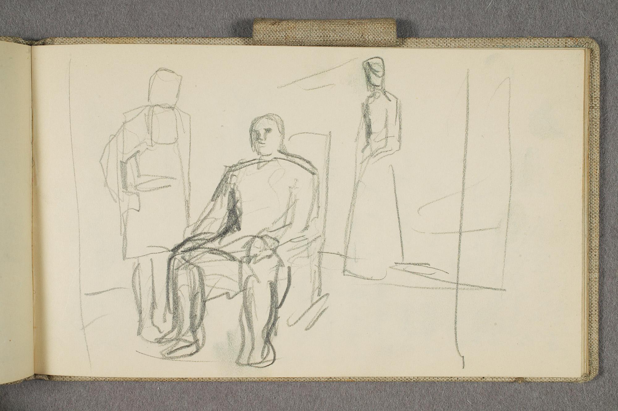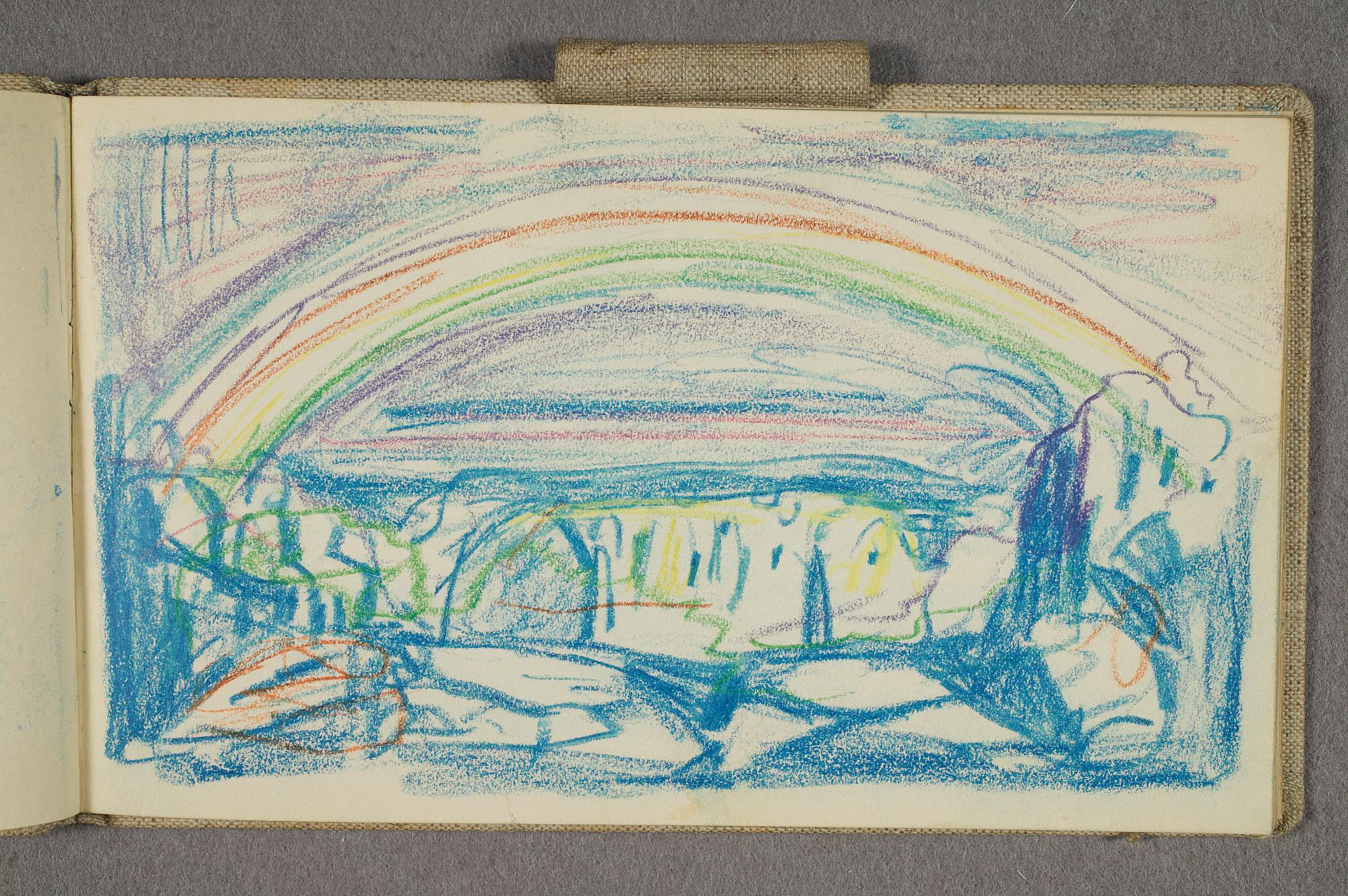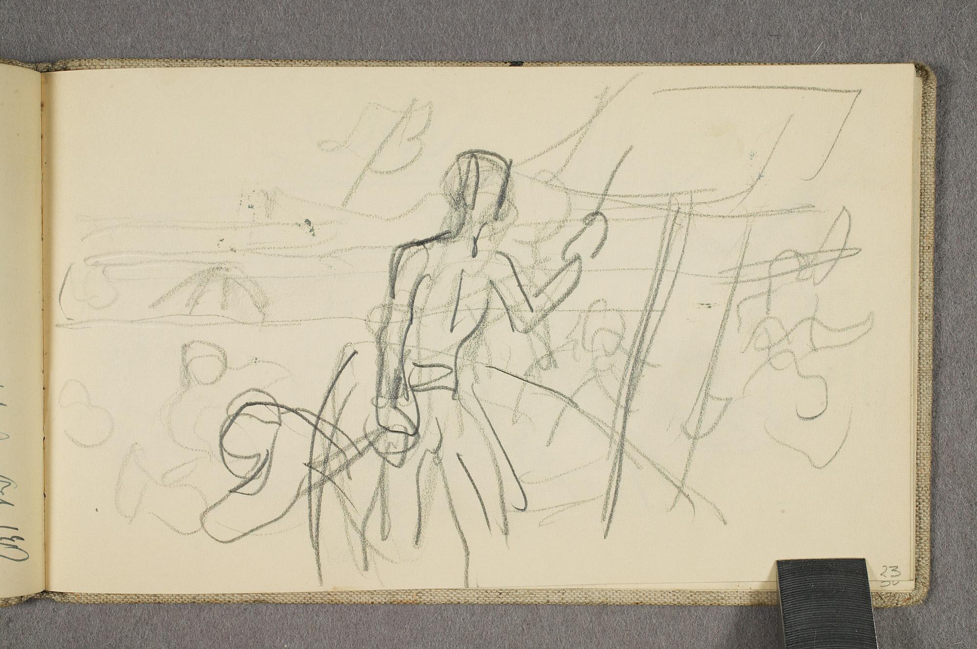 Perm: grått lerret med blyantholder og knytebånd. 113 × 190 × 0,16 mm (h × b × t)
