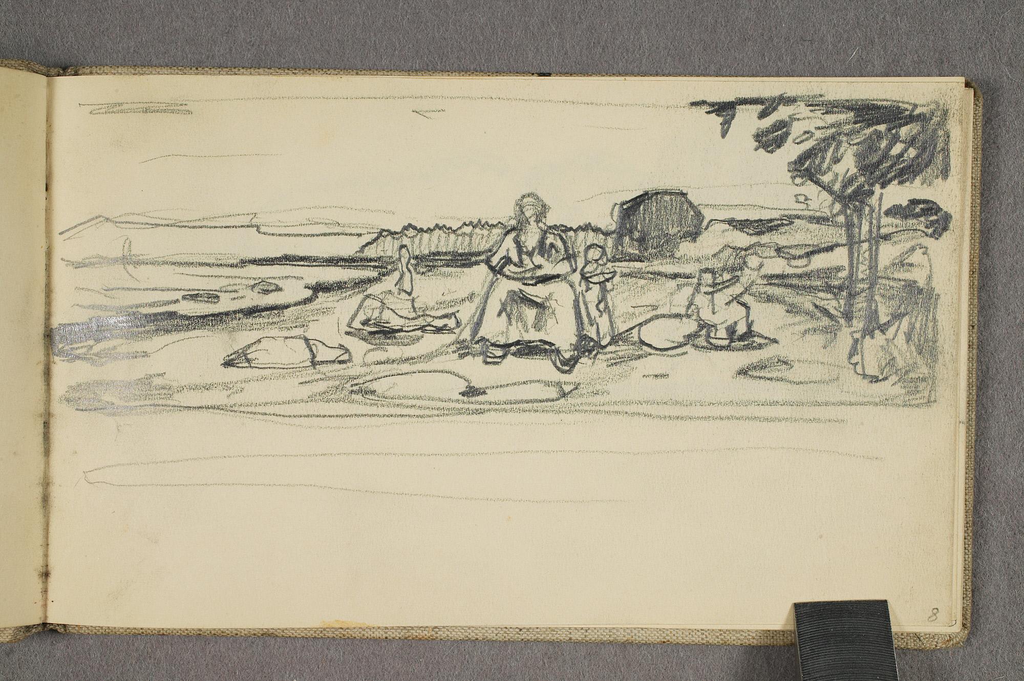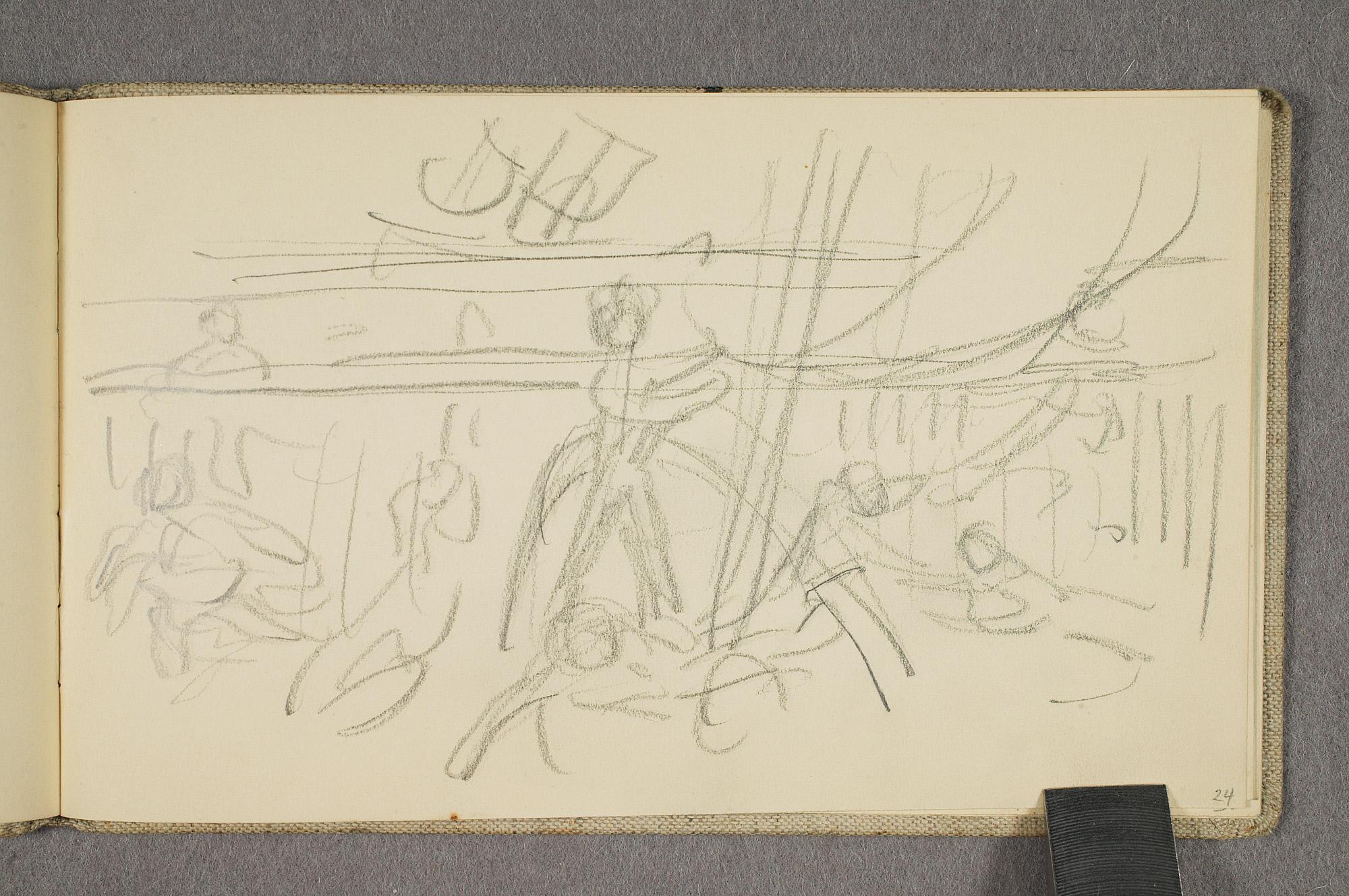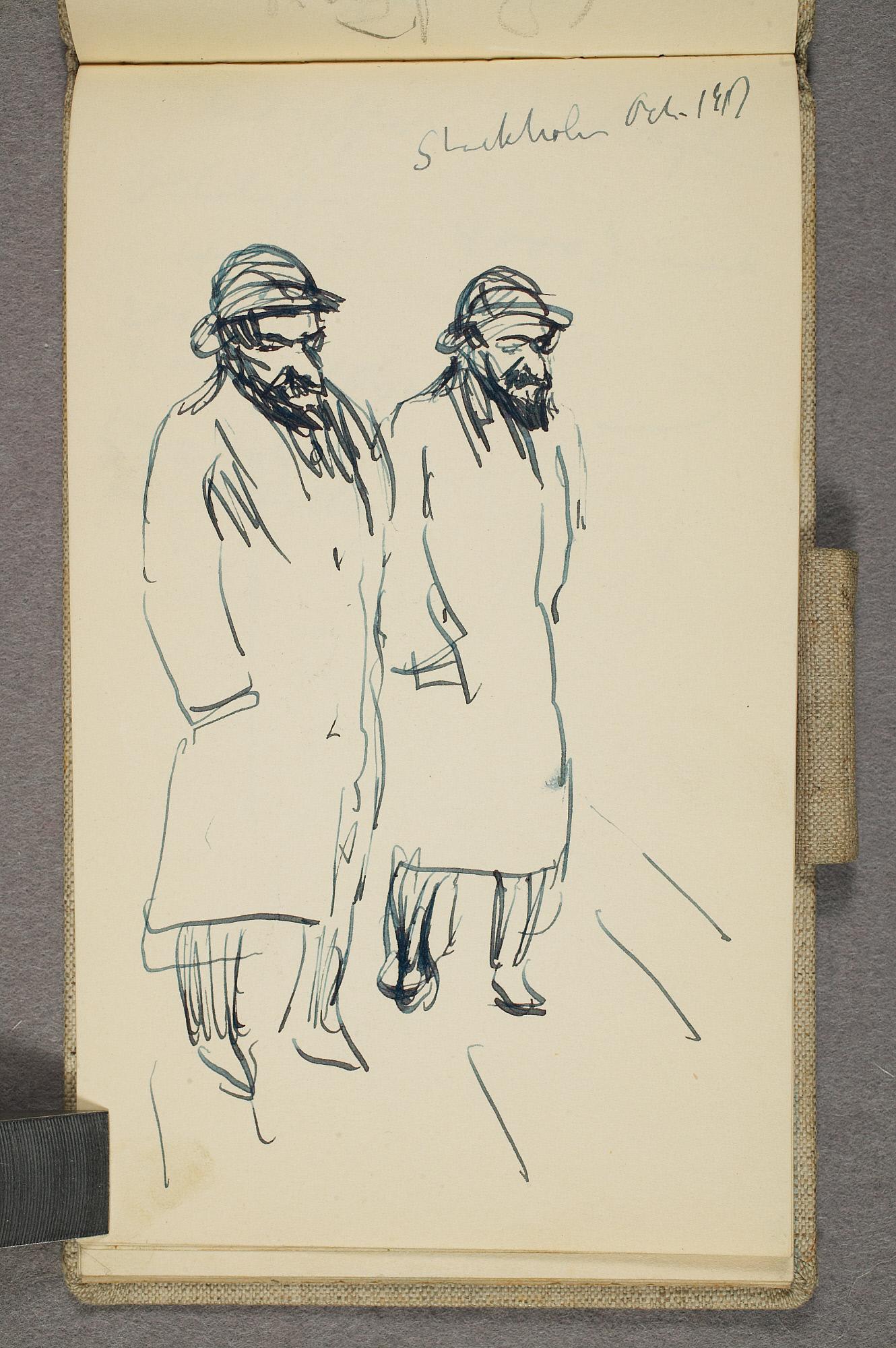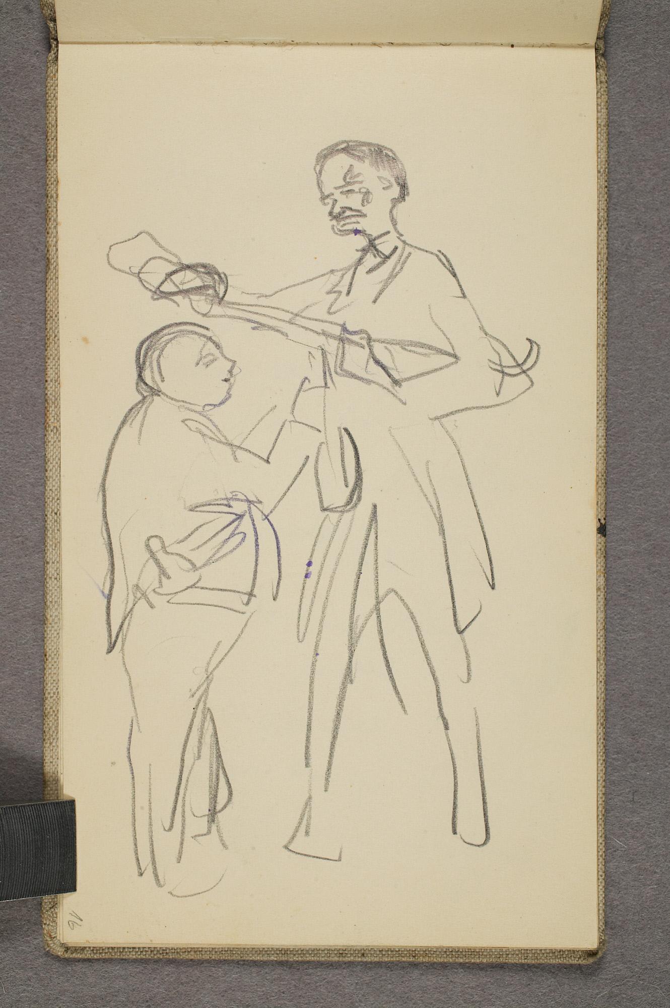 Perm: grått lerret med blyantholder og knytebånd. 113 × 190 × 0,16 mm (h × b × t)
