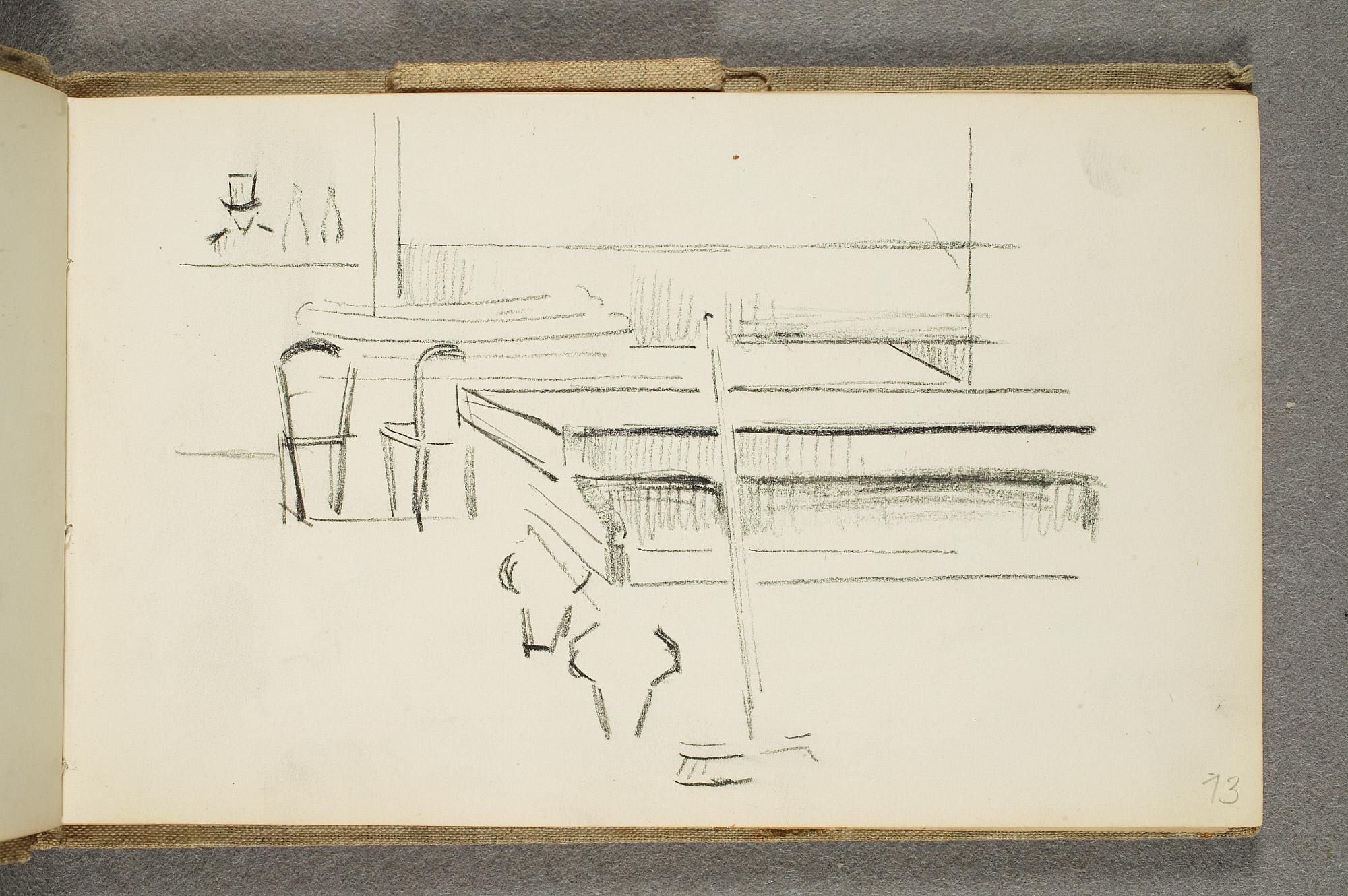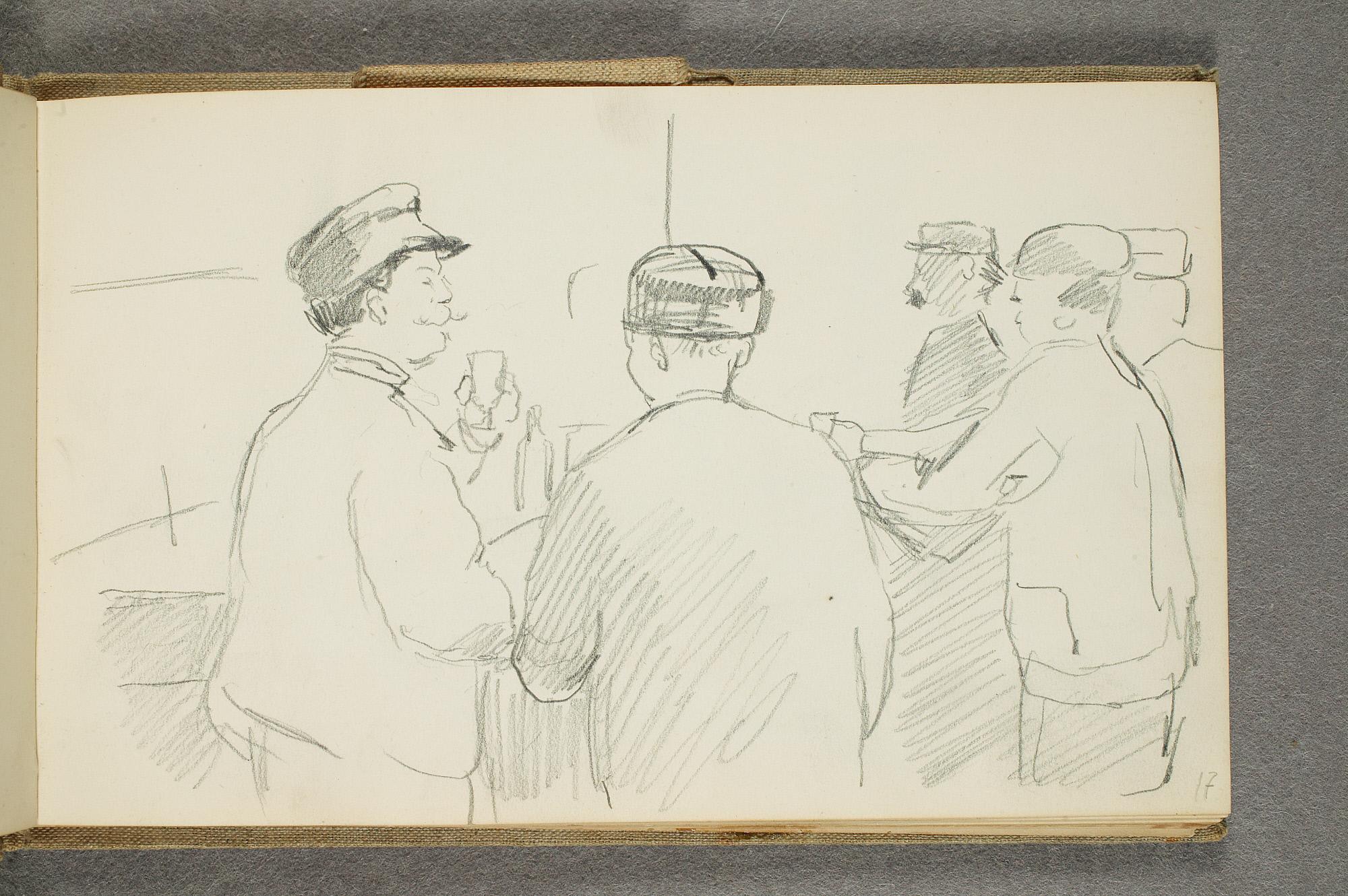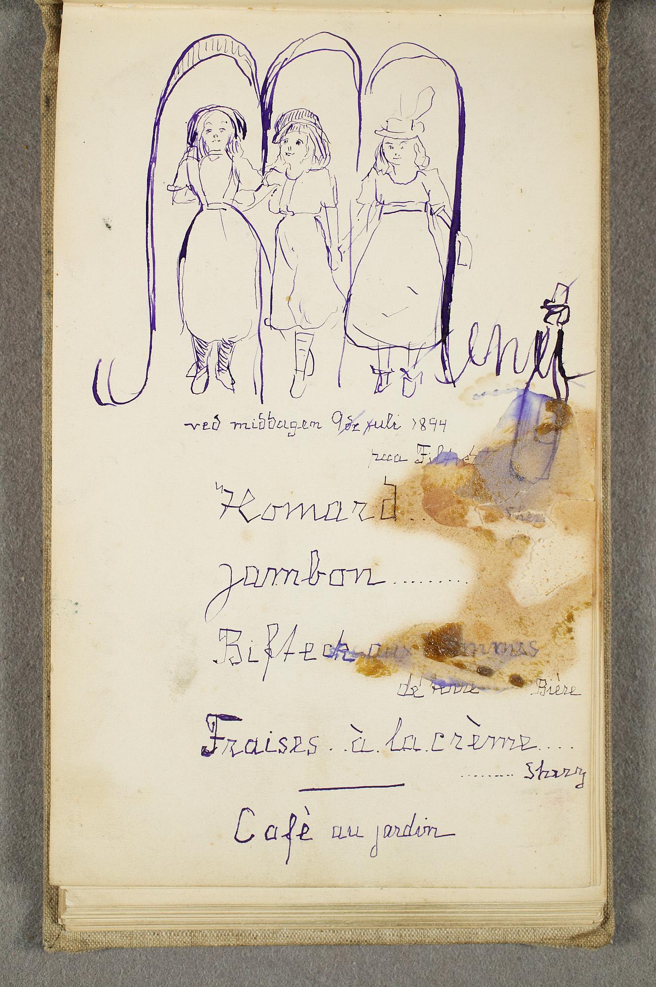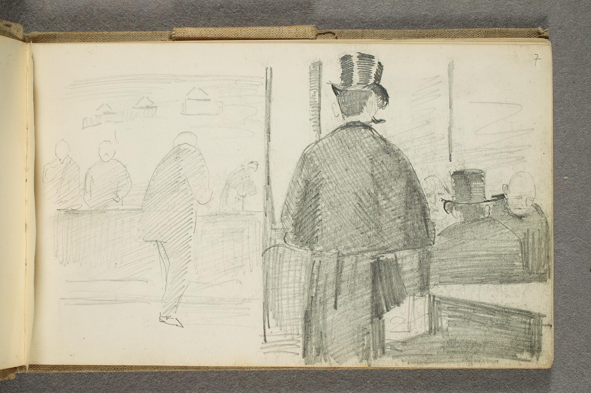 Comment:Denne skisseboken ser ut til å ha vært brukt parallellt med MM.T.00126; mer enn halvparten av tegningene er fra Paris / St. Cloud 1890. Portrettet av komponisten Fredrick Delius (MM.T.00127-25-verso) er trolig laget i forbindelse med en artikkel i VG 12.10.1891, mens de siste tegningene synes å ha en annen karakter, og en noe senere datering. (MB)