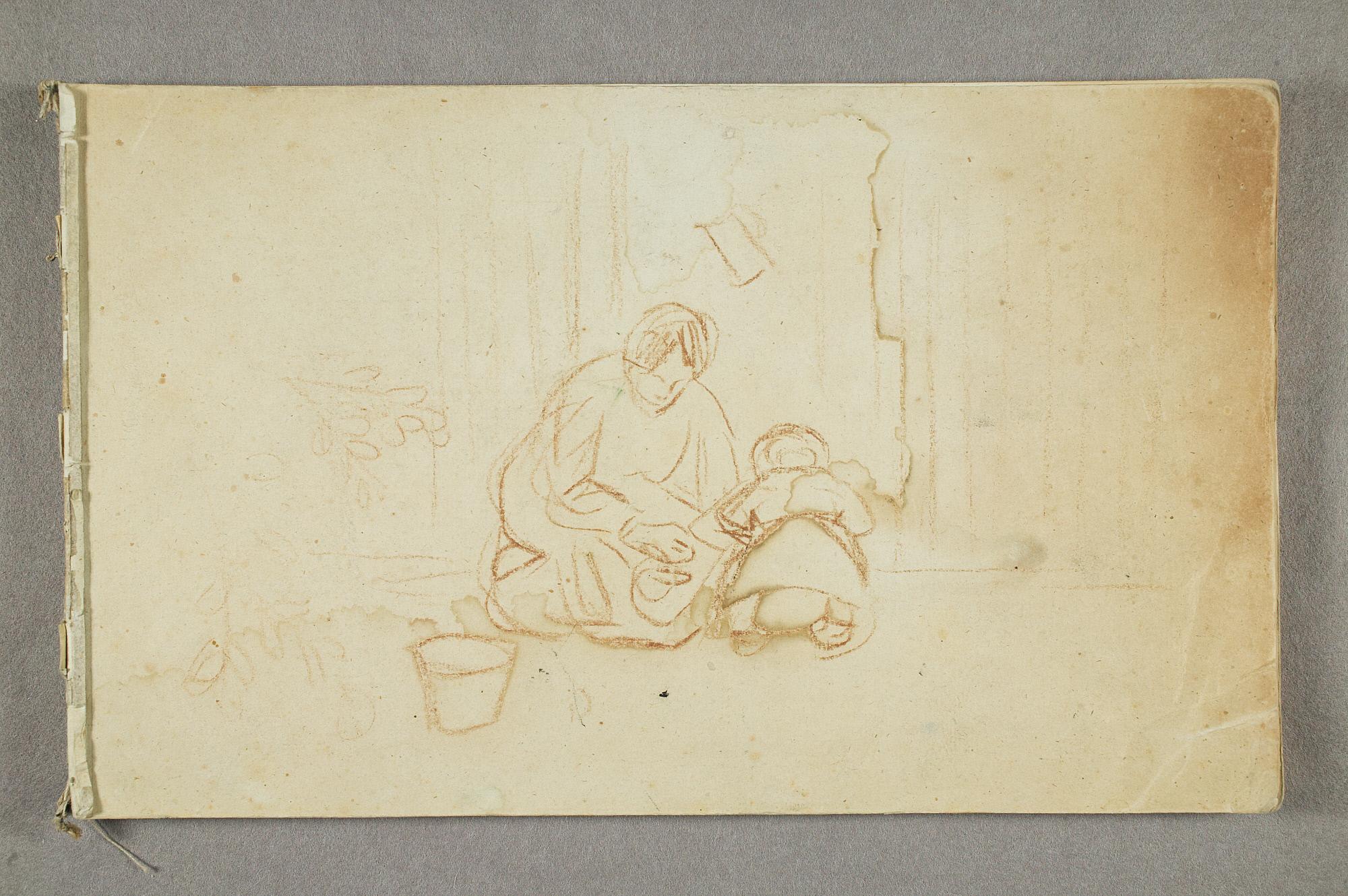 Knelende kvinne og lite barn