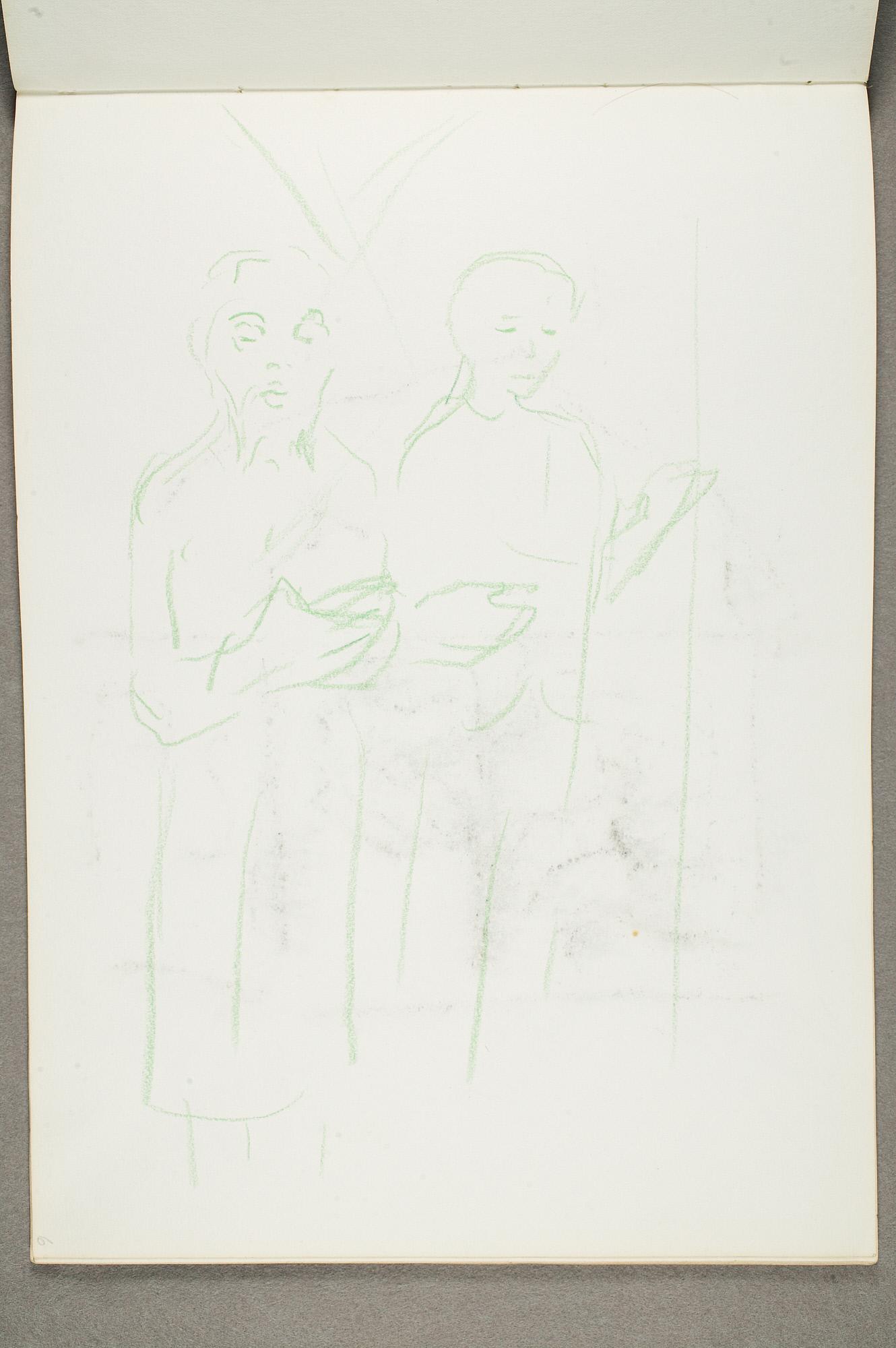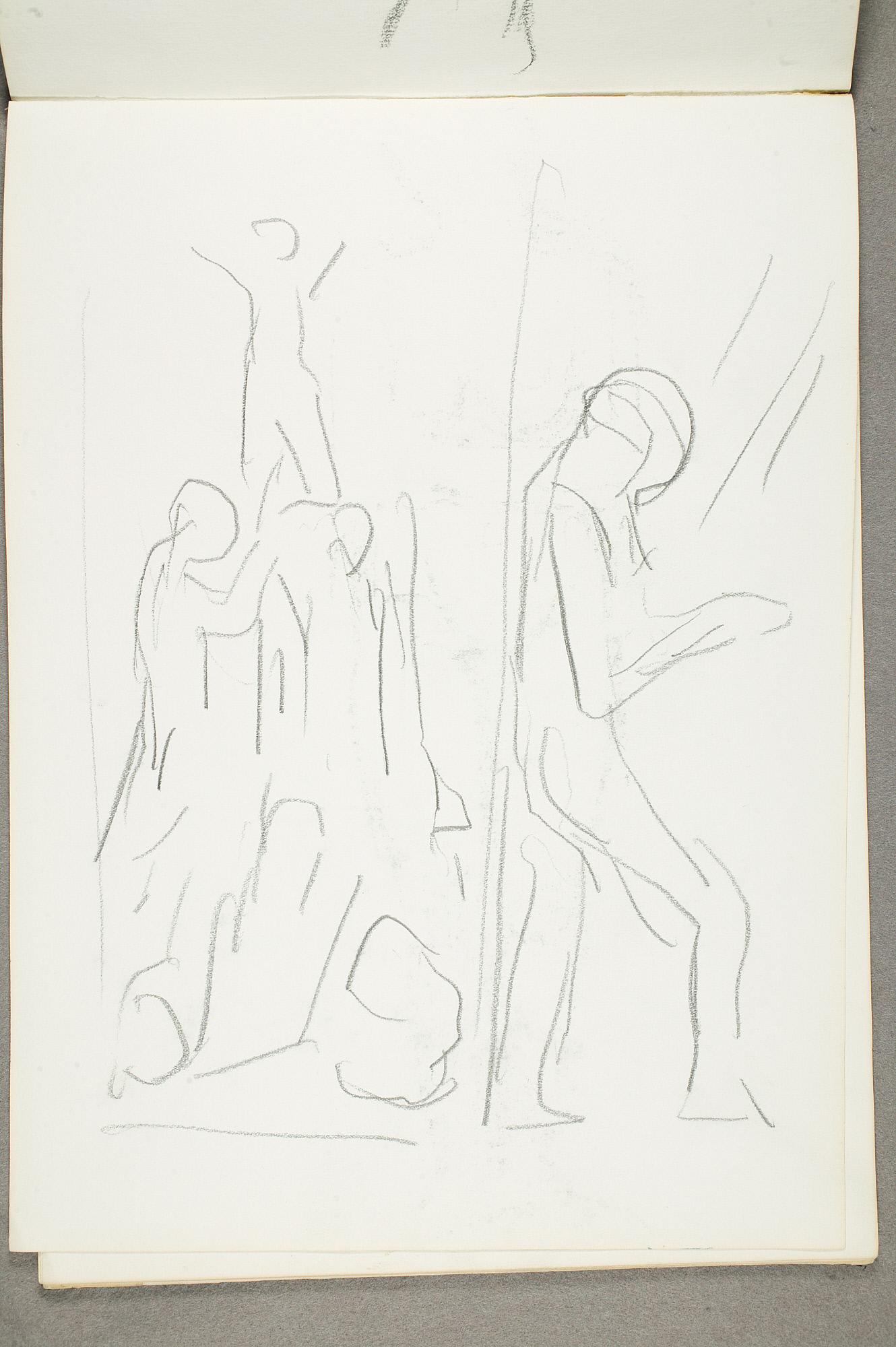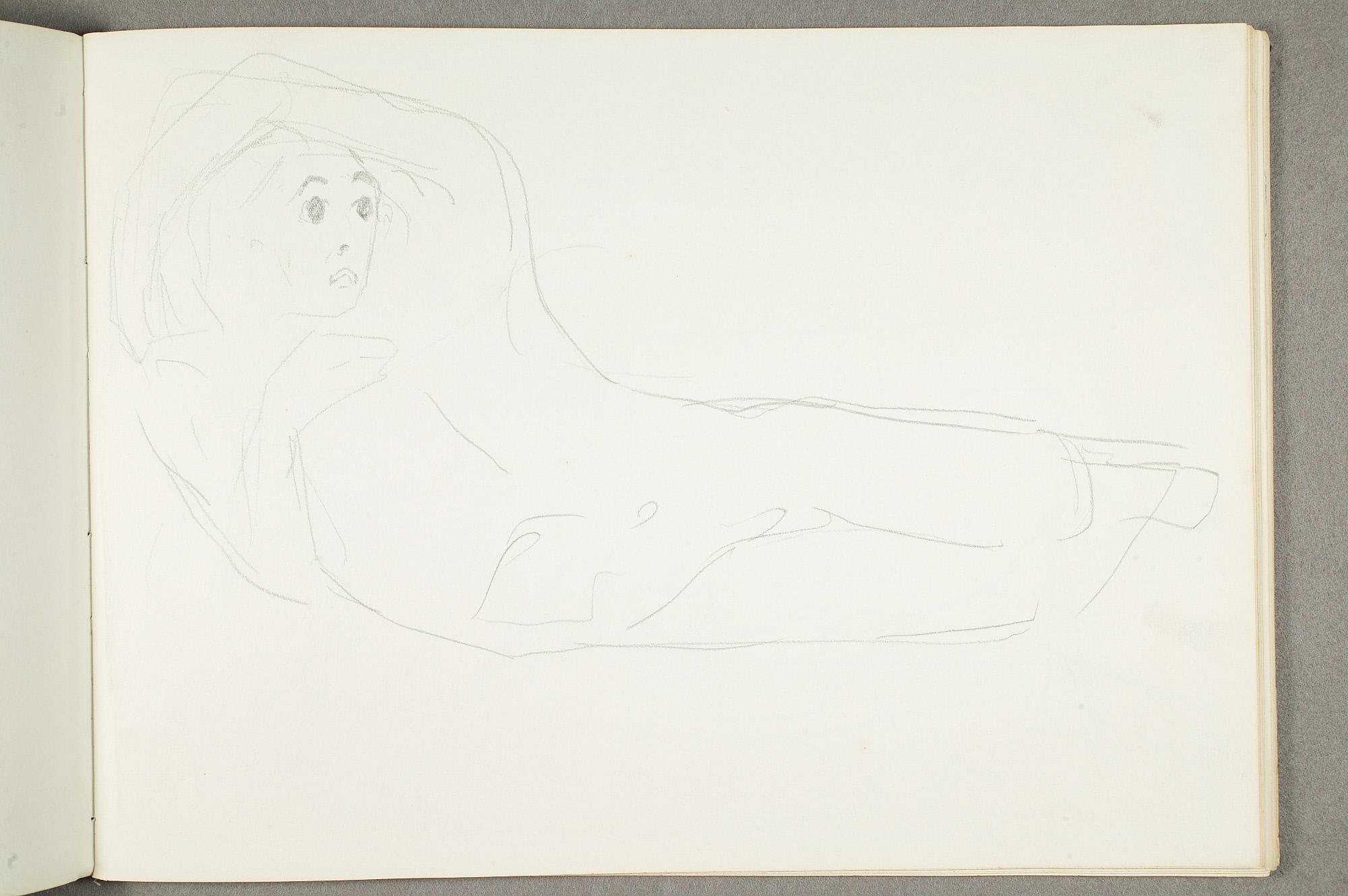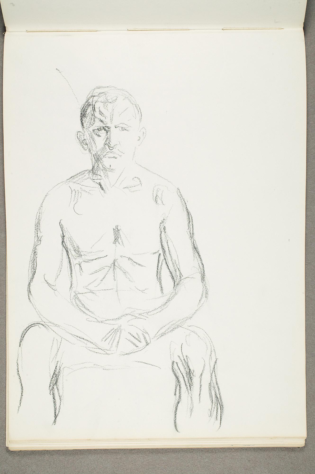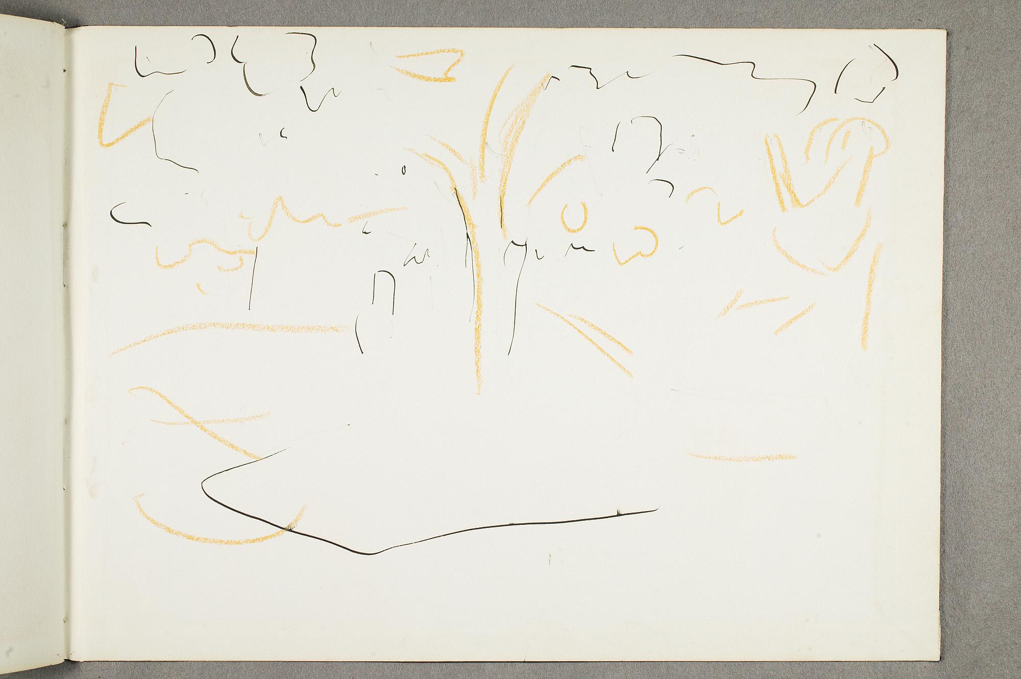 Comment:Denne typen skissebok, fra Winsor & Newton, finnes det 10 av i Munchmuseets samling, og alle er blitt brukt i Kragerø-perioden, 1909–15. Mange av tegningene i denne boken kan relateres til forskjellige utkast til auladekorasjonene. Flere av dem arbeidet Munch med våren og sommeren 1910, da han lette etter passende motiver til alle feltene. (PP)