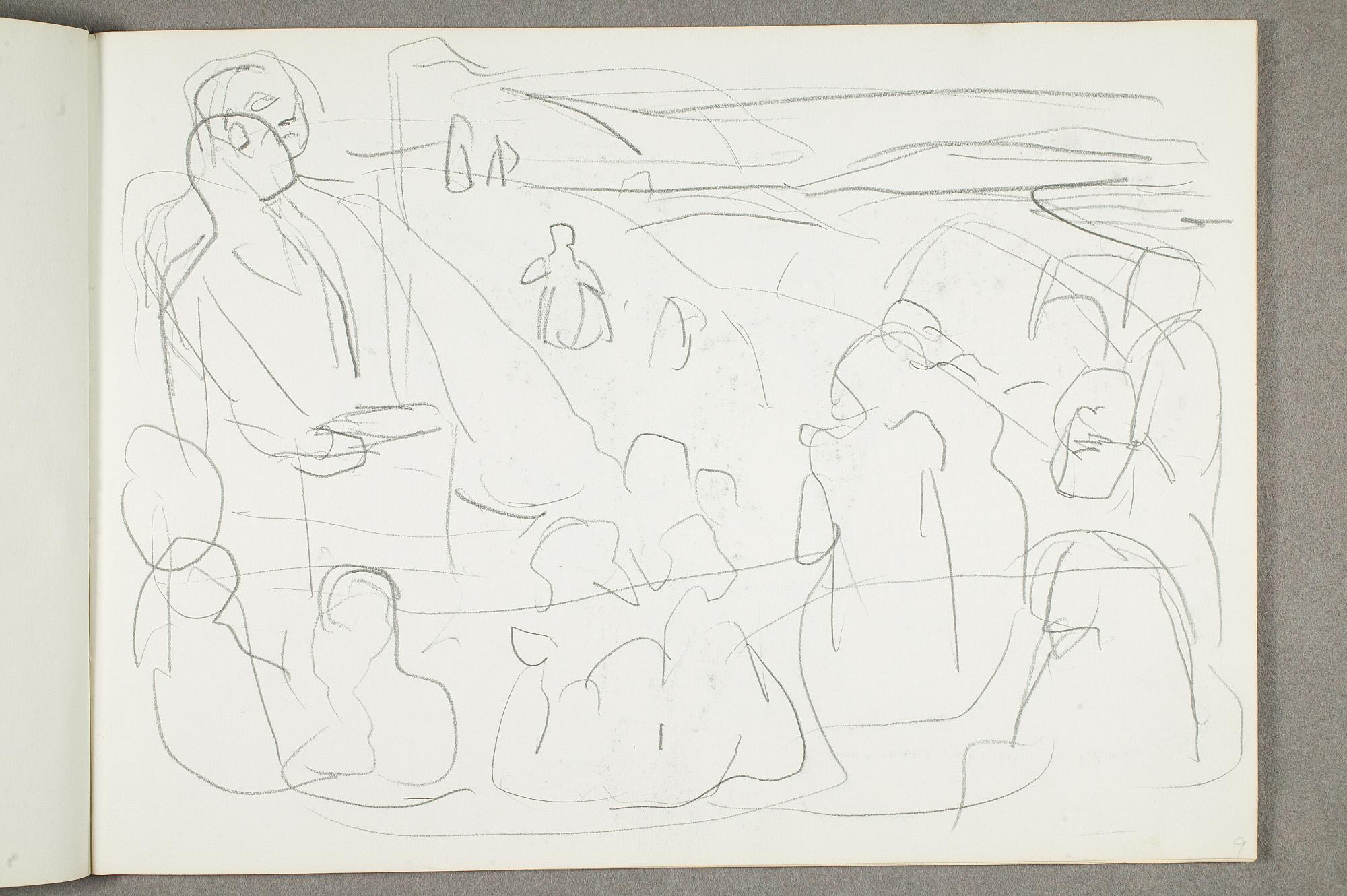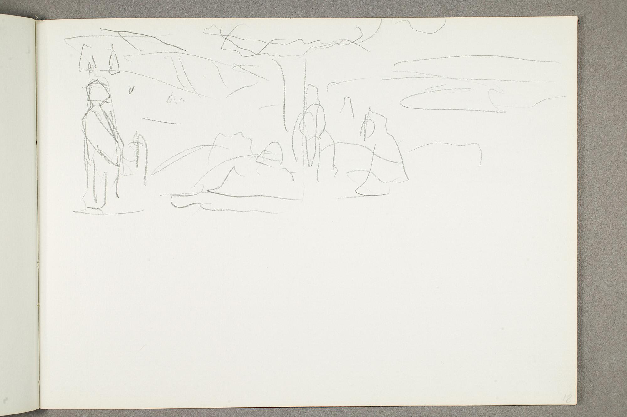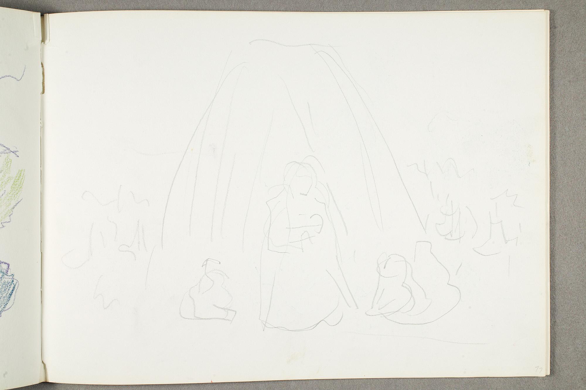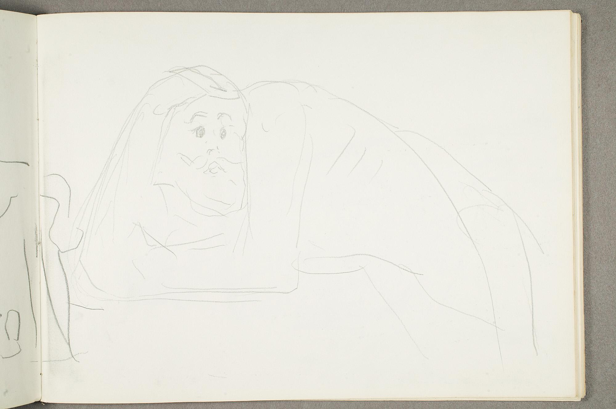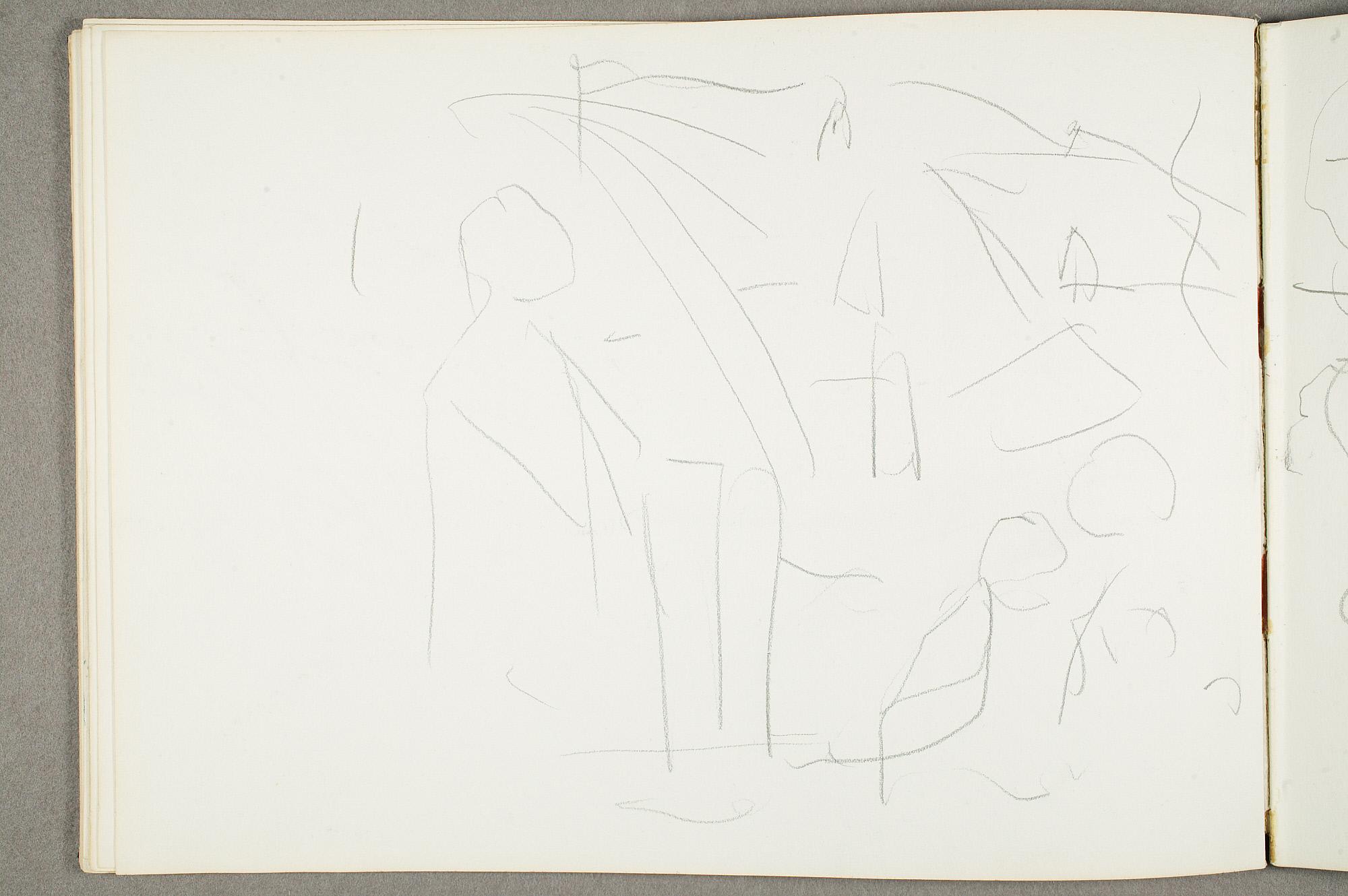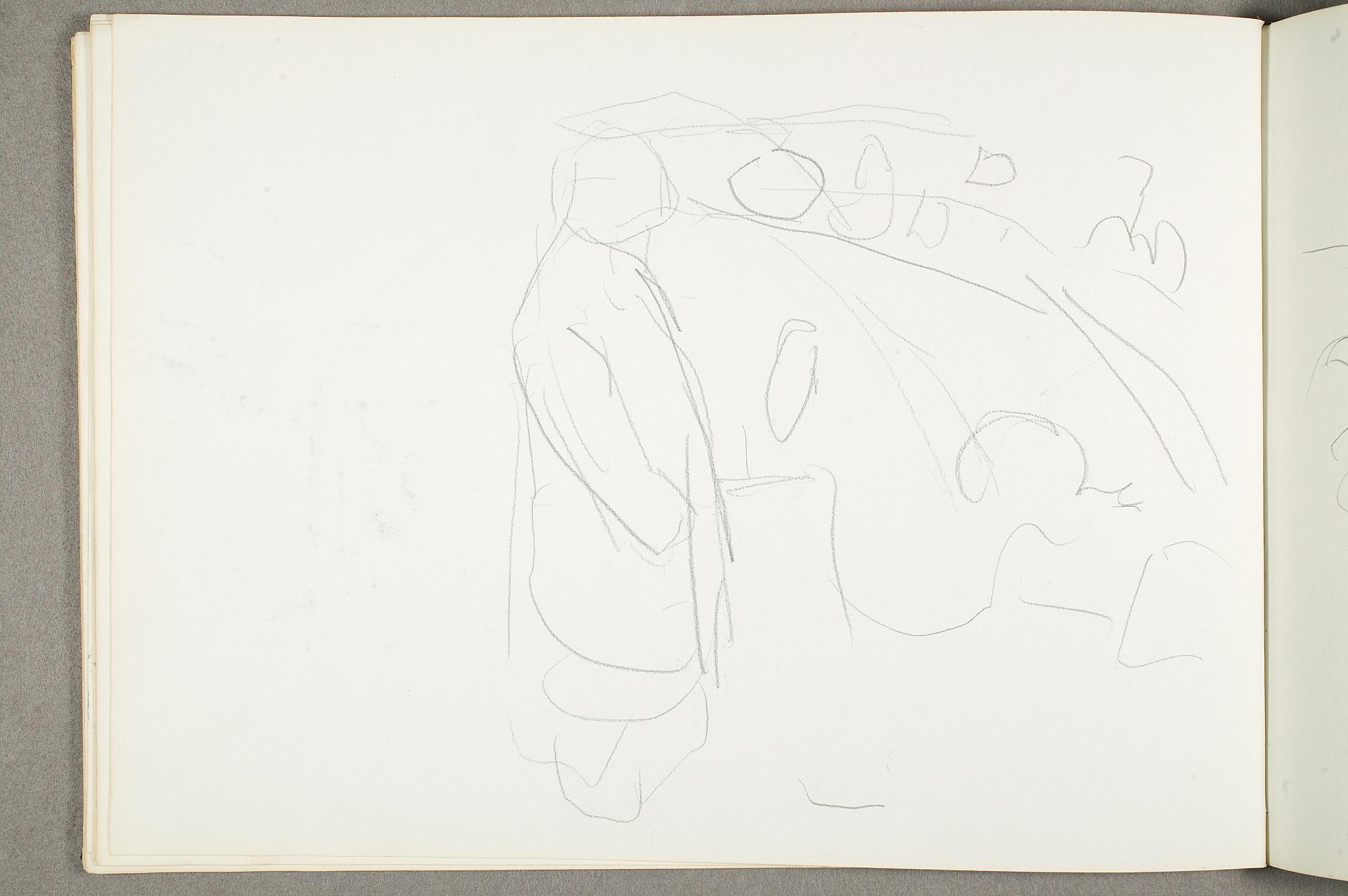 Comment:Denne typen skissebok, fra Winsor & Newton, finnes det 10 av i Munchmuseets samling, og alle er blitt brukt i Kragerø-perioden, 1909–15. Mange av tegningene i denne boken kan relateres til forskjellige utkast til auladekorasjonene. Flere av dem arbeidet Munch med våren og sommeren 1910, da han lette etter passende motiver til alle feltene. (PP)