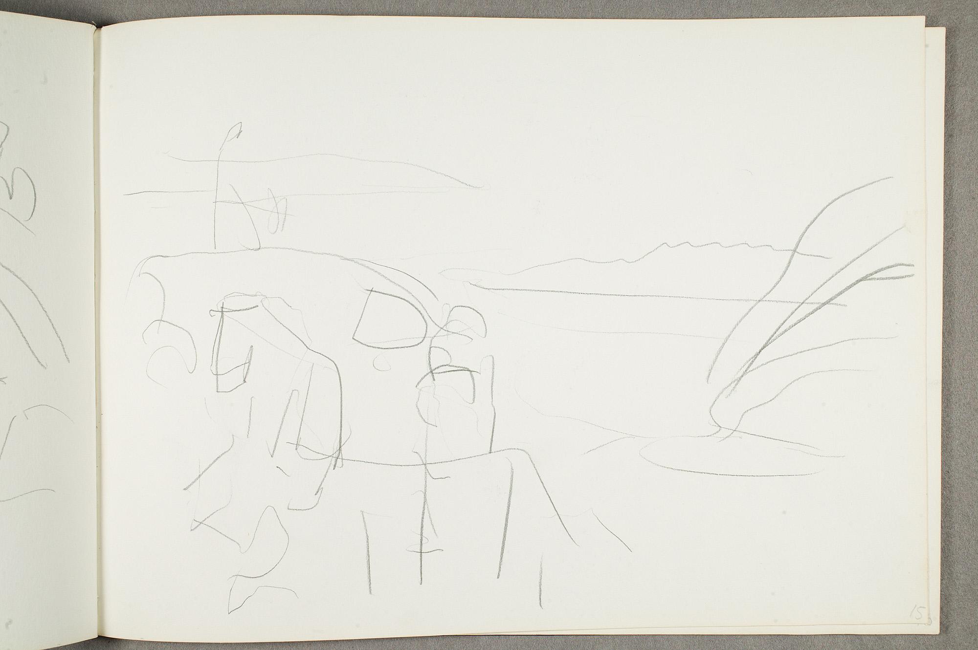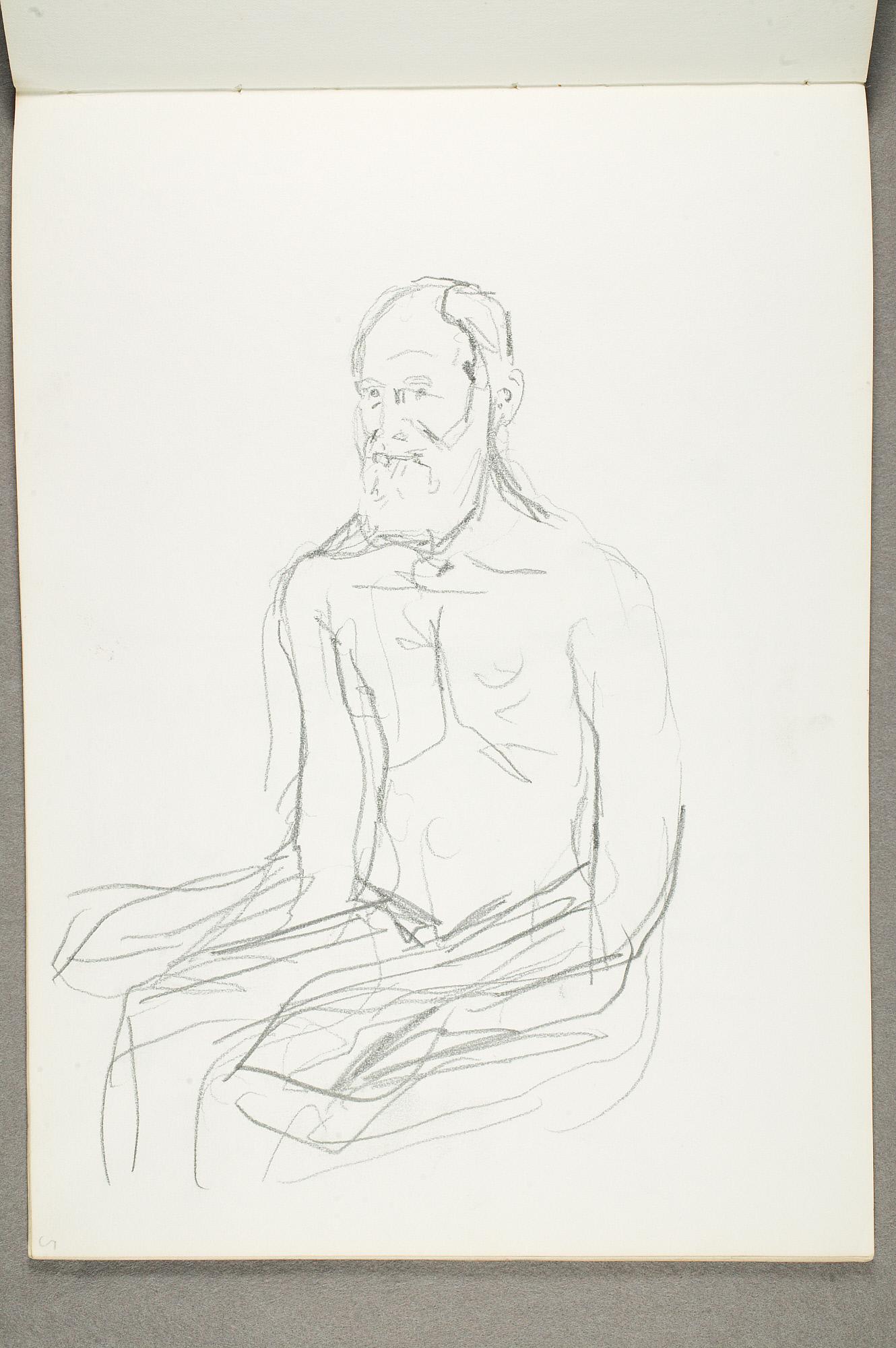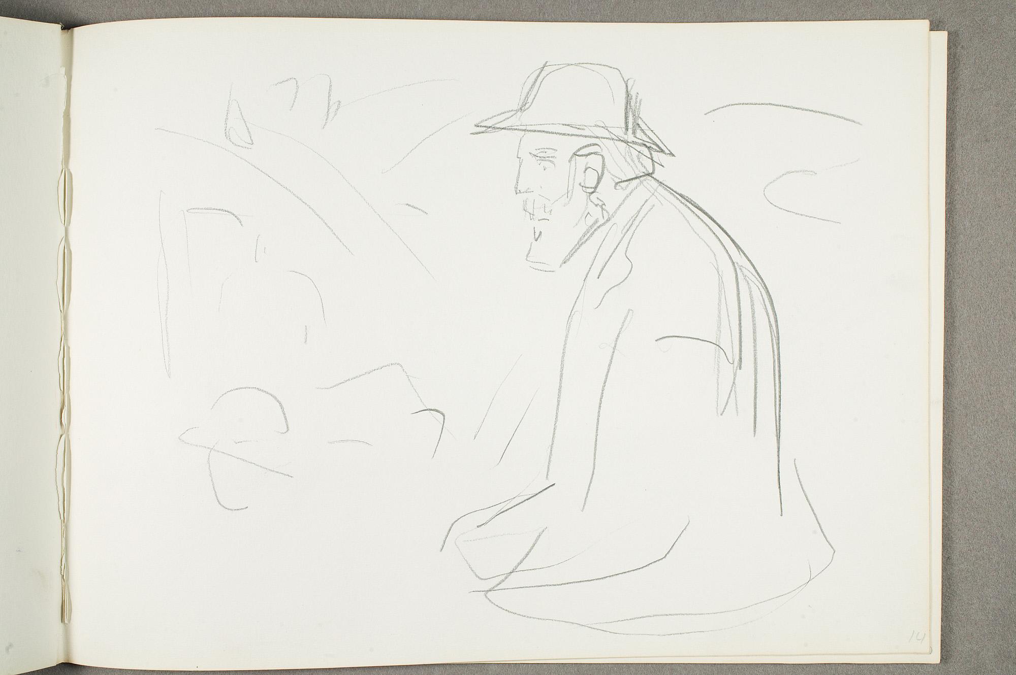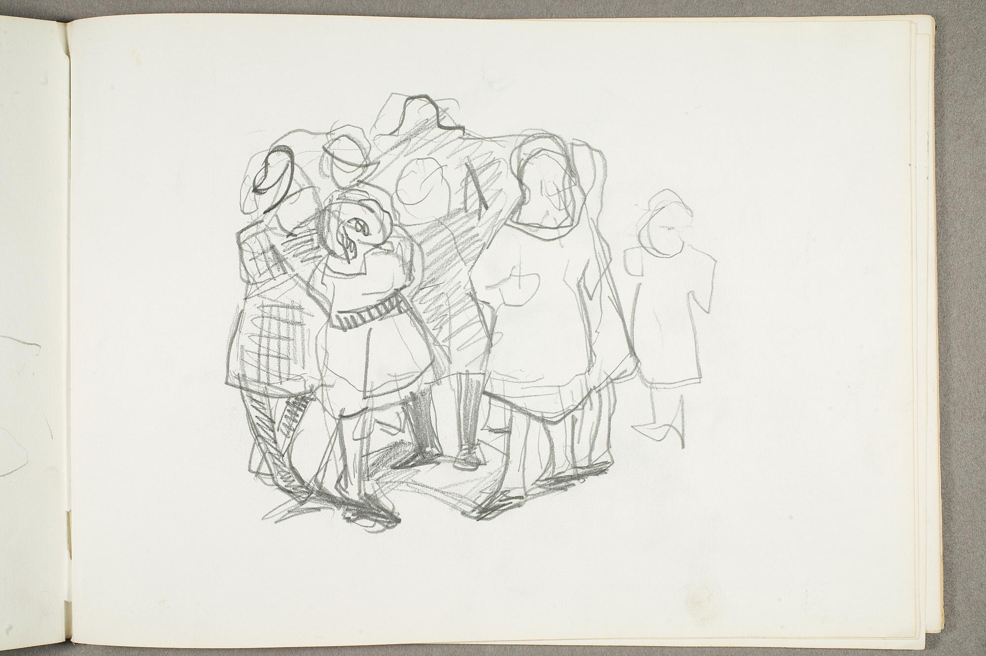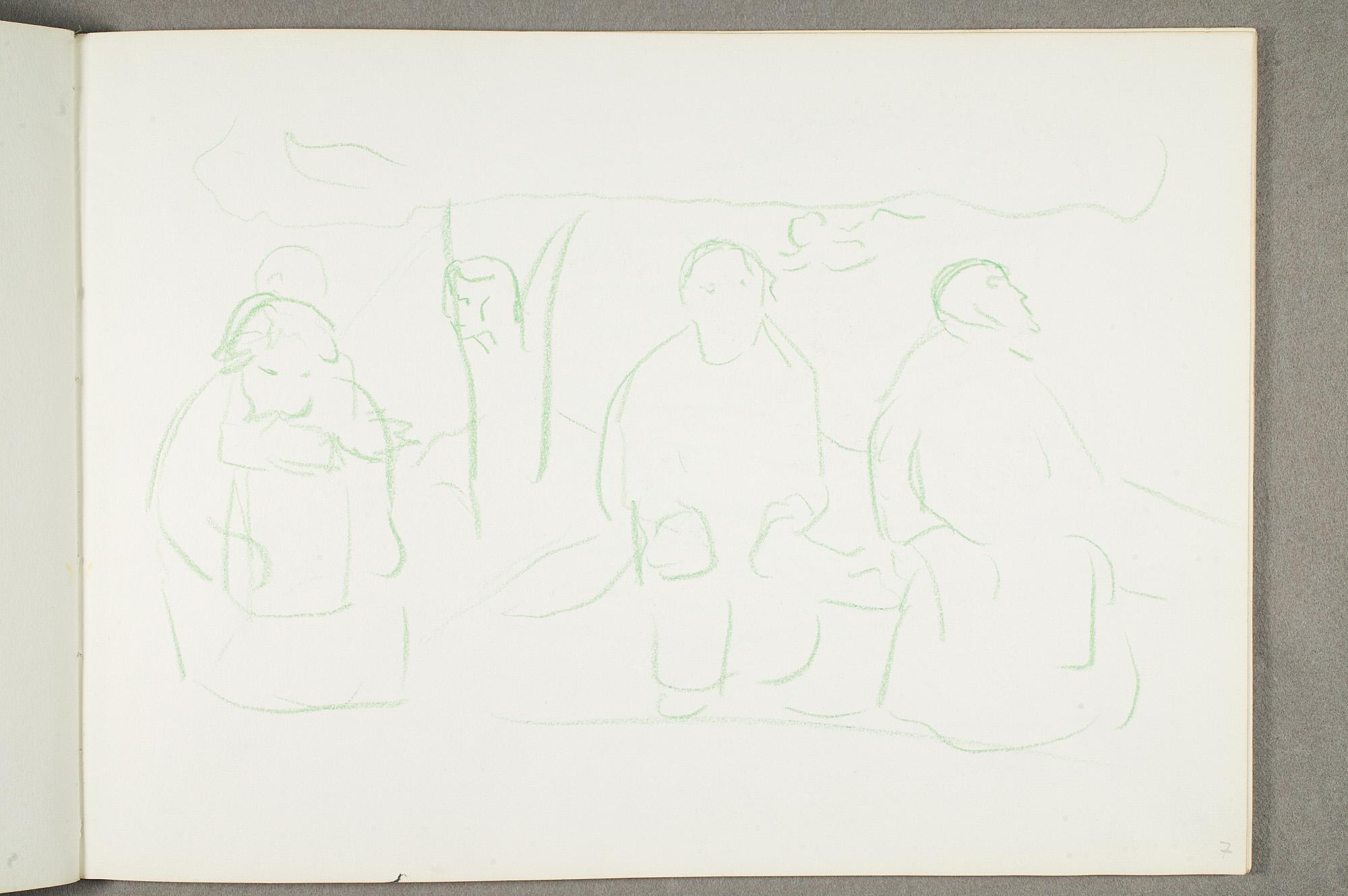 Comment:Denne typen skissebok, fra Winsor & Newton, finnes det 10 av i Munchmuseets samling, og alle er blitt brukt i Kragerø-perioden, 1909–15. Mange av tegningene i denne boken kan relateres til forskjellige utkast til auladekorasjonene. Flere av dem arbeidet Munch med våren og sommeren 1910, da han lette etter passende motiver til alle feltene. (PP)