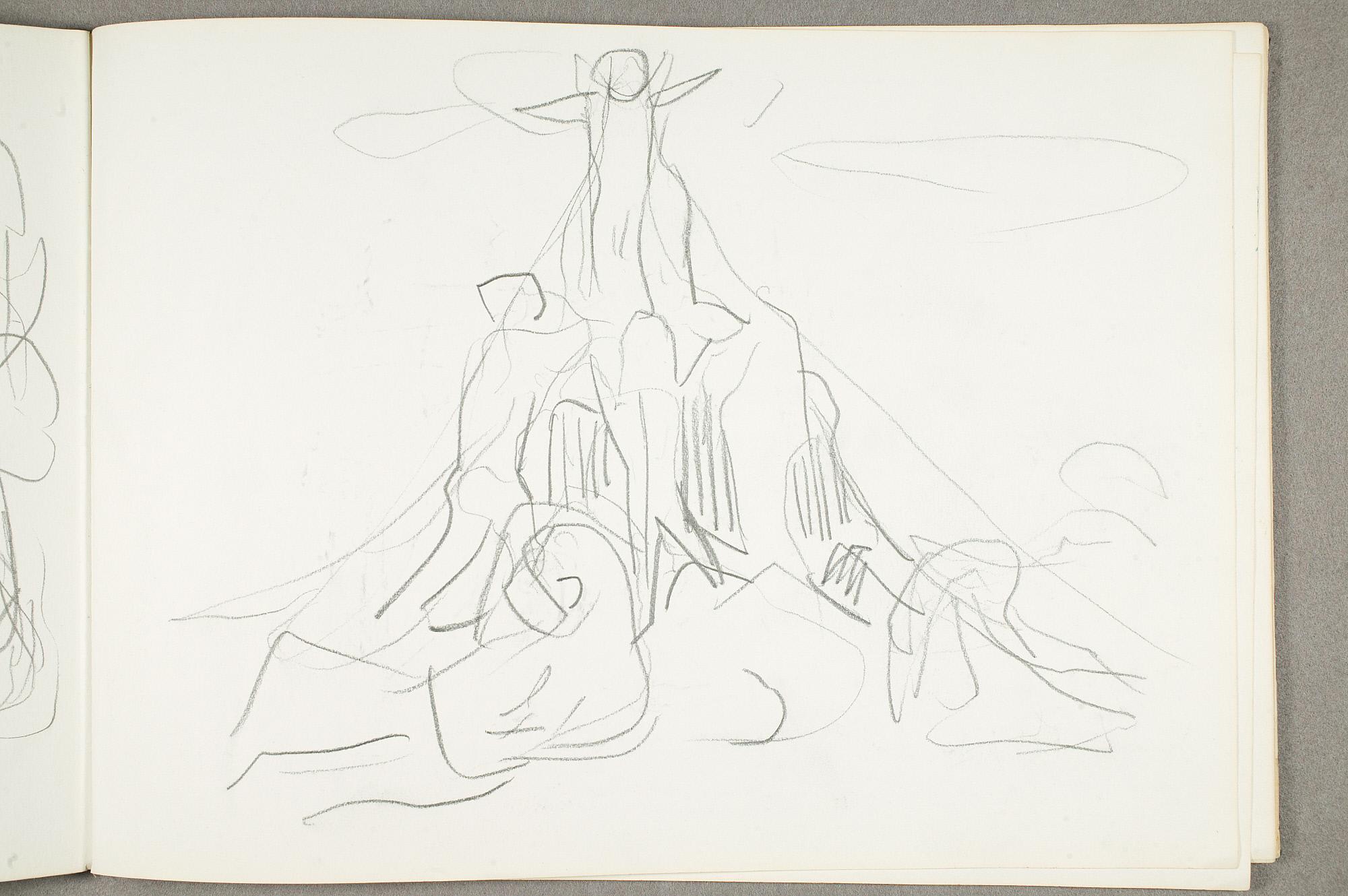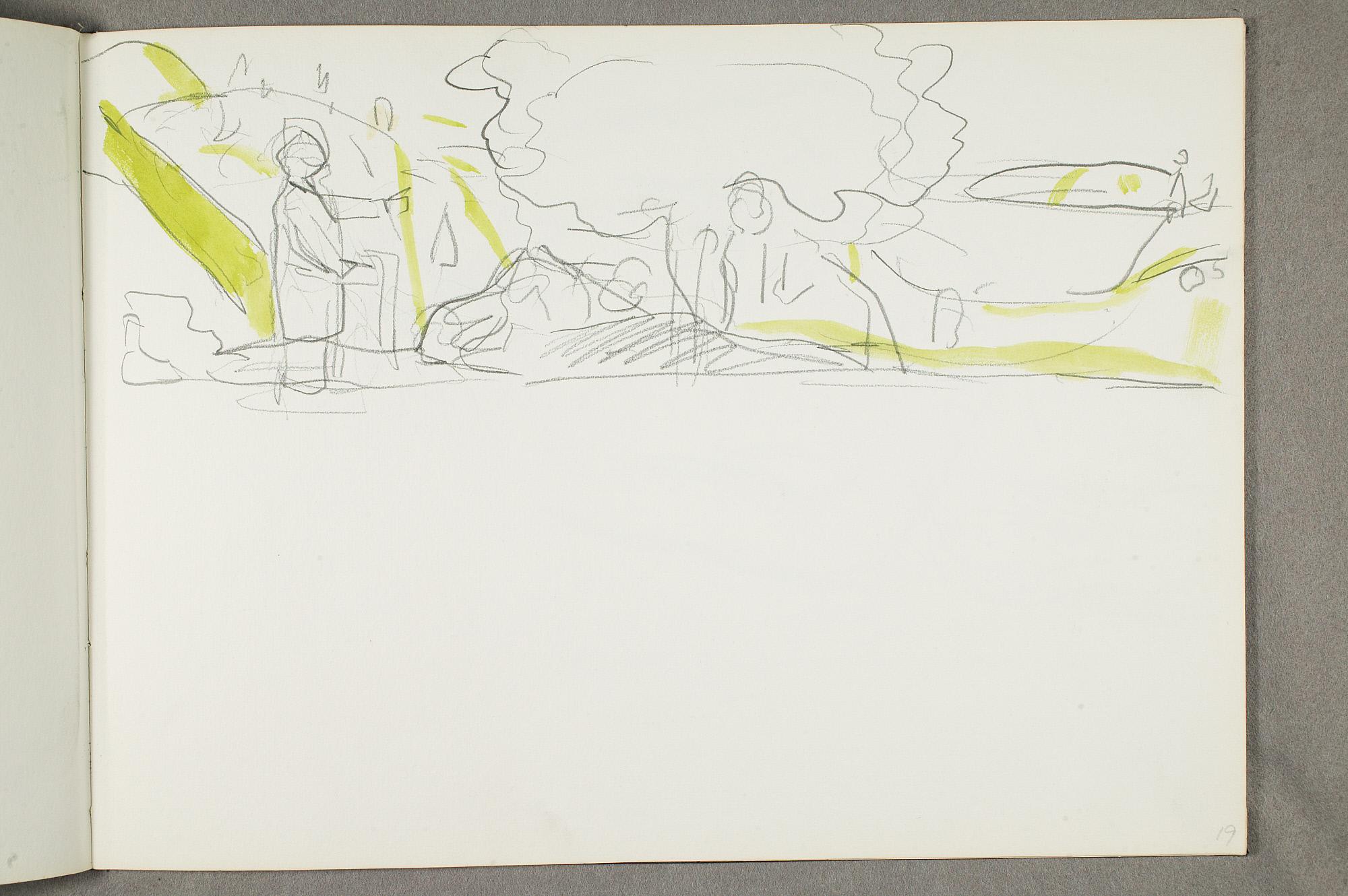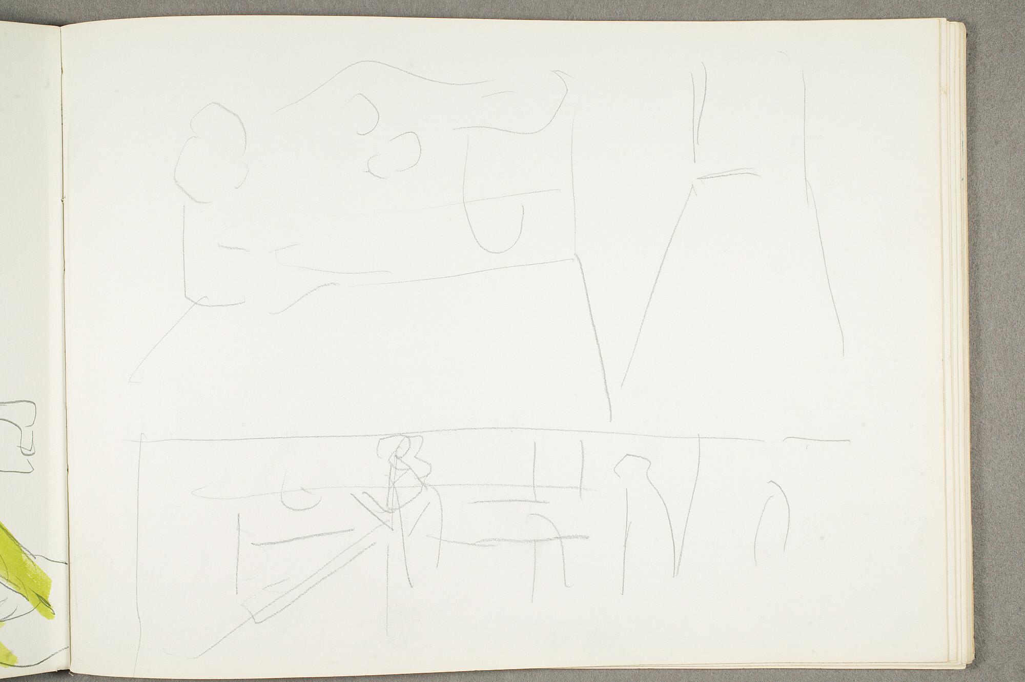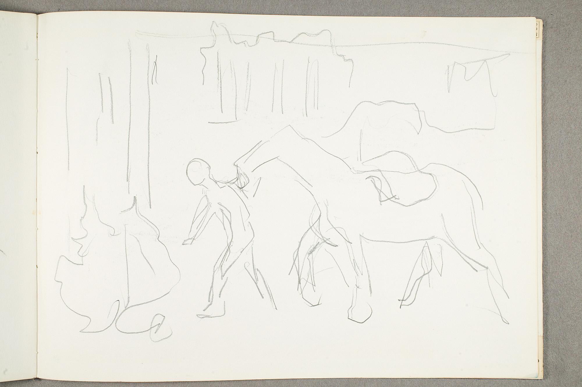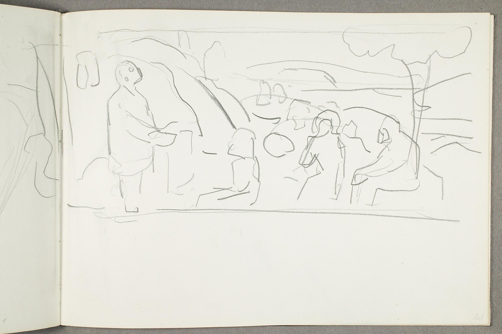 Comment:Denne typen skissebok, fra Winsor & Newton, finnes det 10 av i Munchmuseets samling, og alle er blitt brukt i Kragerø-perioden, 1909–15. Mange av tegningene i denne boken kan relateres til forskjellige utkast til auladekorasjonene. Flere av dem arbeidet Munch med våren og sommeren 1910, da han lette etter passende motiver til alle feltene. (PP)