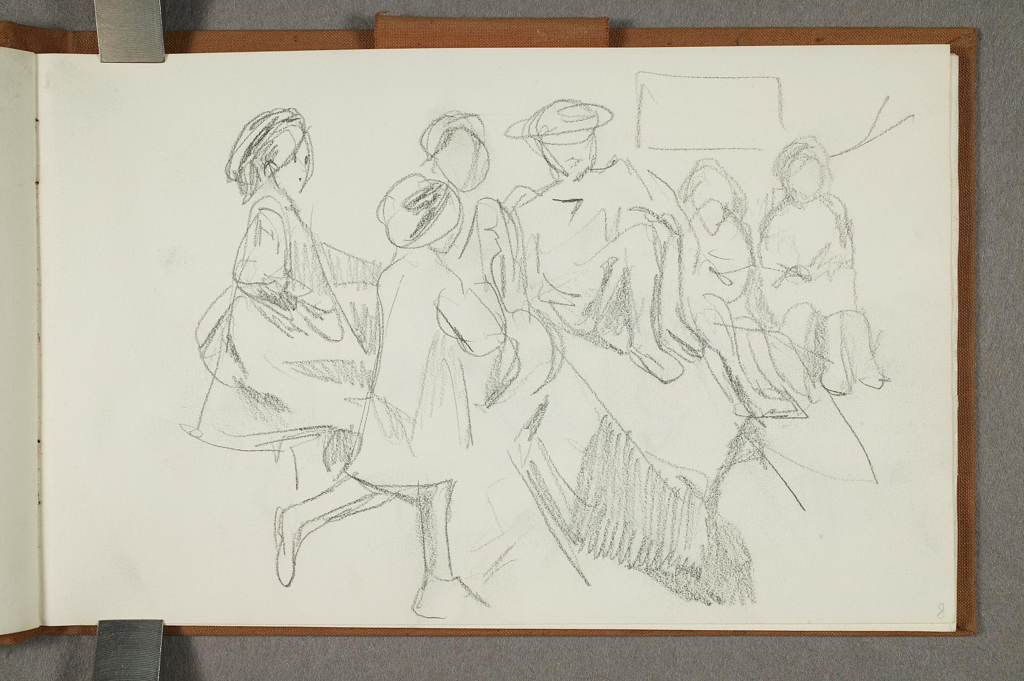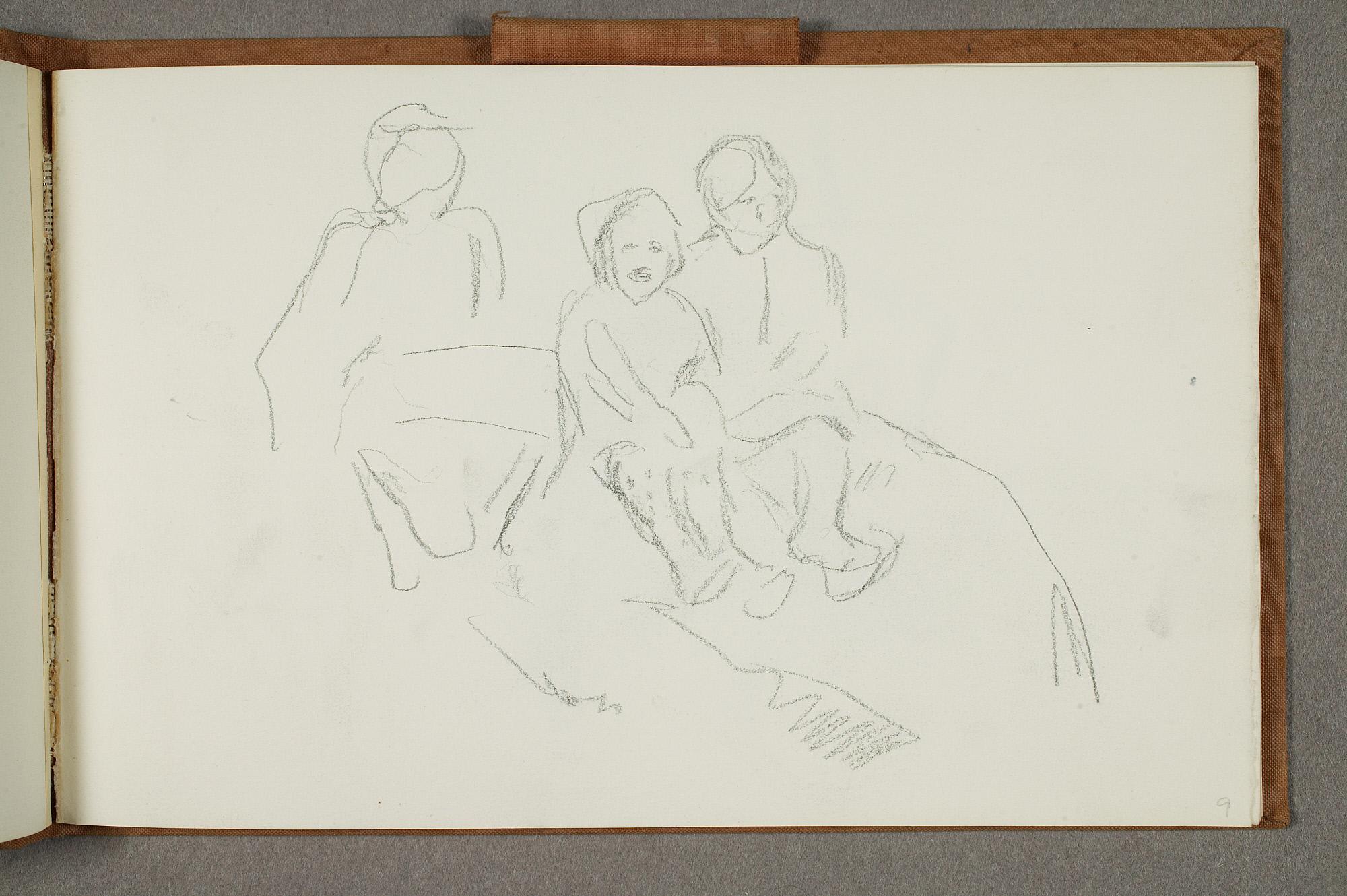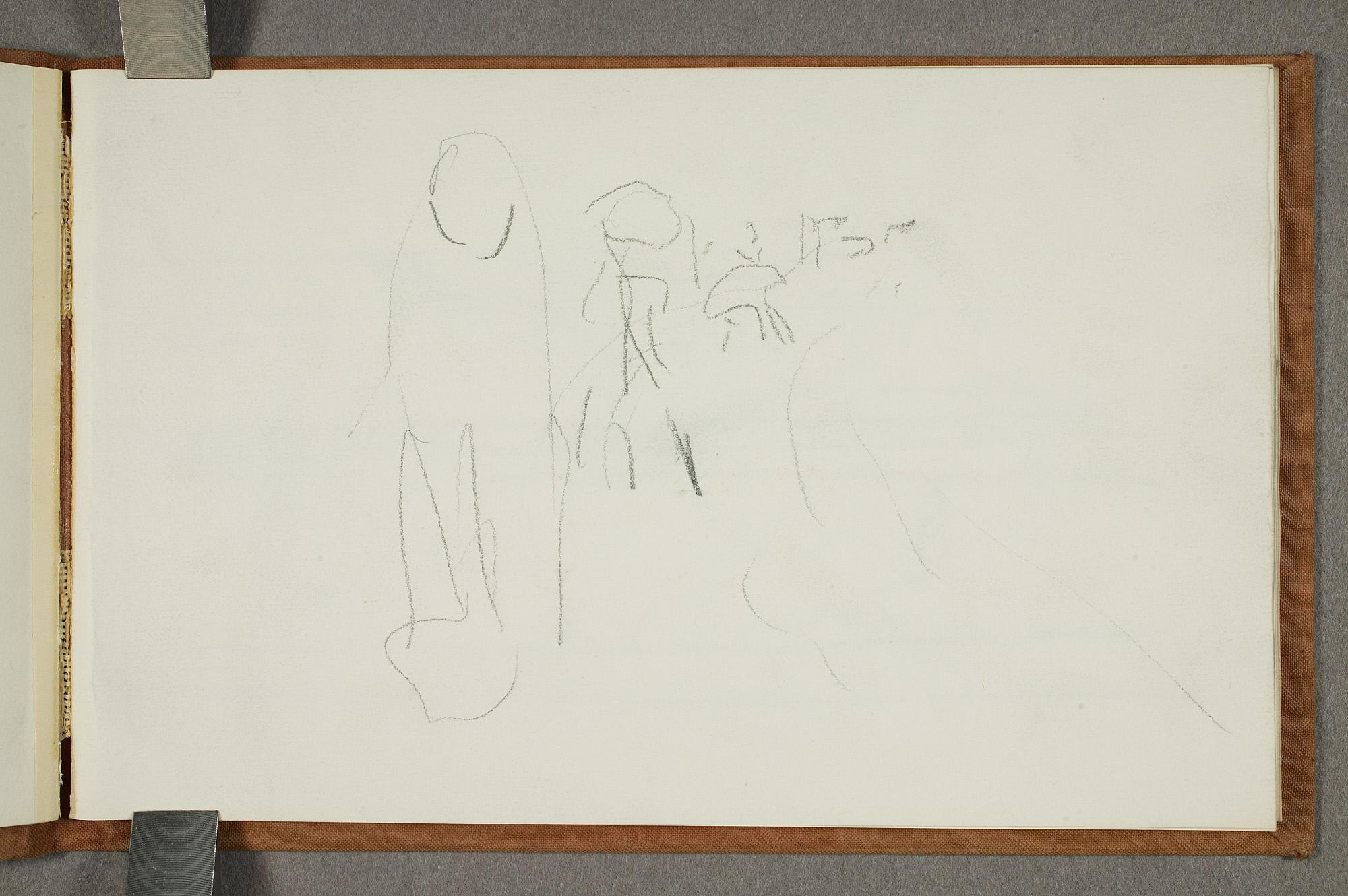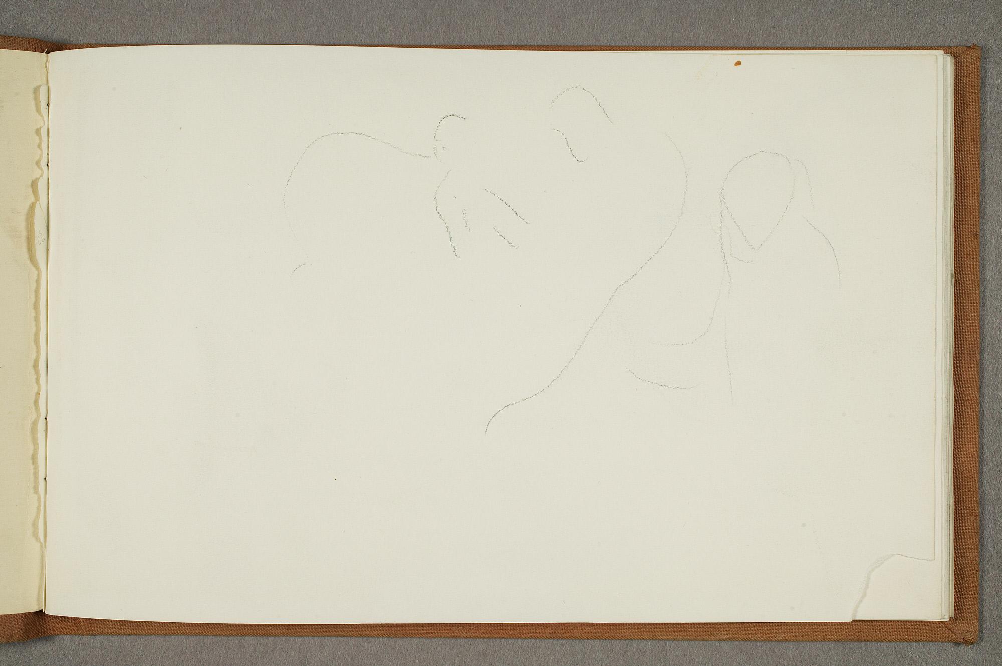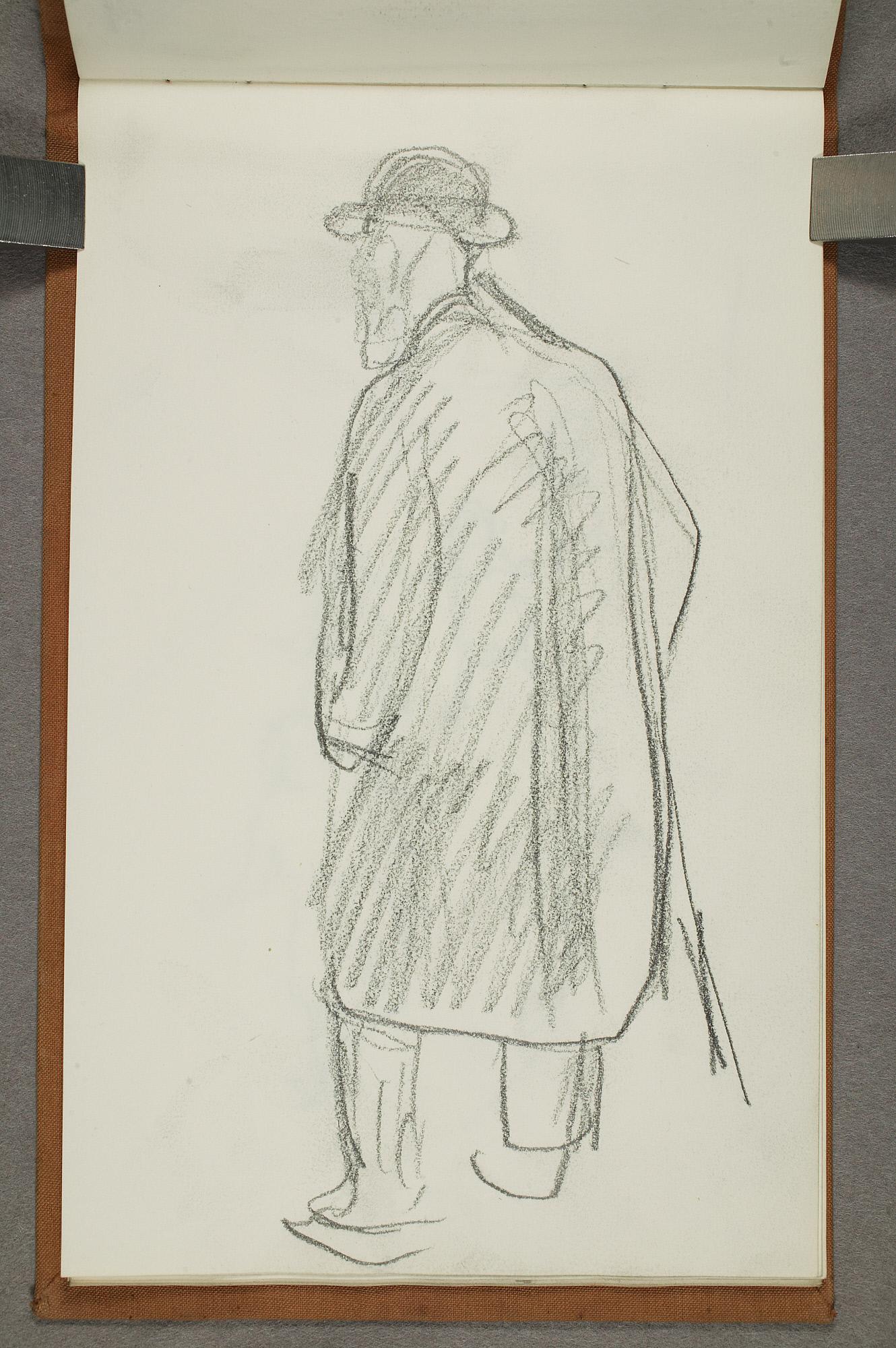 Comment:Skisser til gutten i "Historien" gir et godt utgangspunkt for tidfesting av denne skisseboken. "Historien" var ferdig utarbeidet da det ble sendt til konkurransen om aulautsmykking i august 1911, men under ferdigstillelsen av dekorasjonene i 1914–16 ble guttens positur forandret.