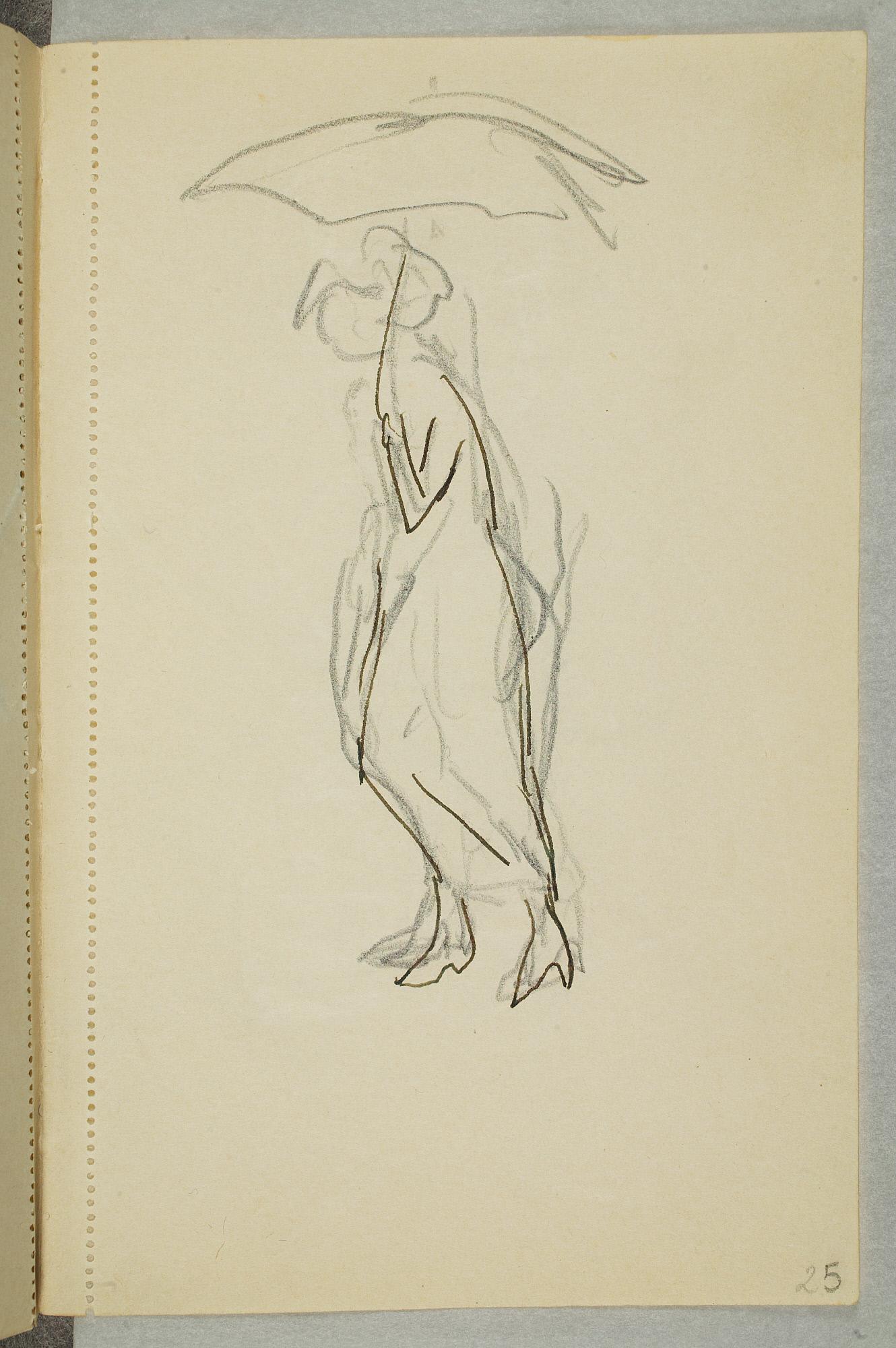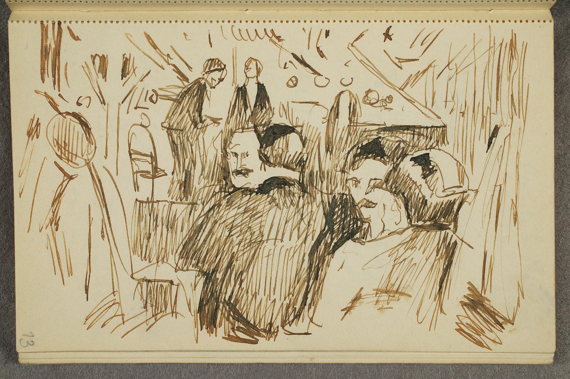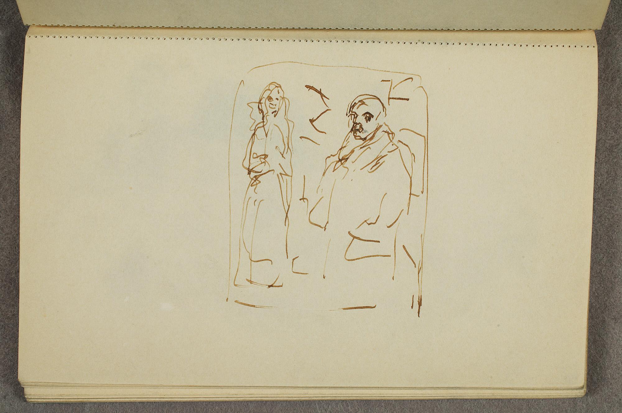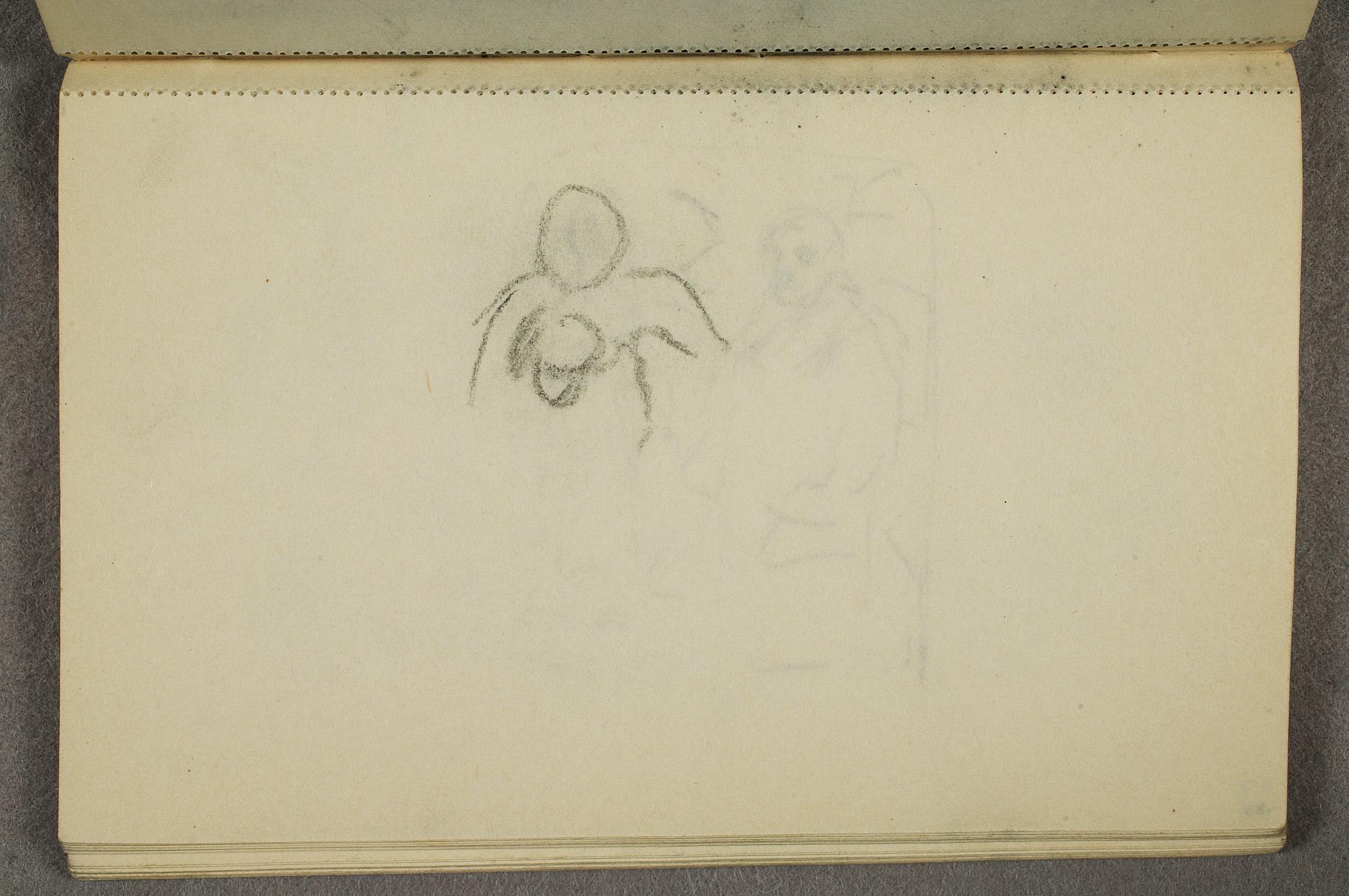 Comment:Selv om mange av tegningene i denne skisseboken ikke kan knyttes til andre kjente verk med etablert datering, og mange av skissene i boken ikke er fullført og vanskelig å identifisere, gjør påskriftene i boken – med anførte datoer og referanser – dateringen 1914 sannsynlig. (PP)