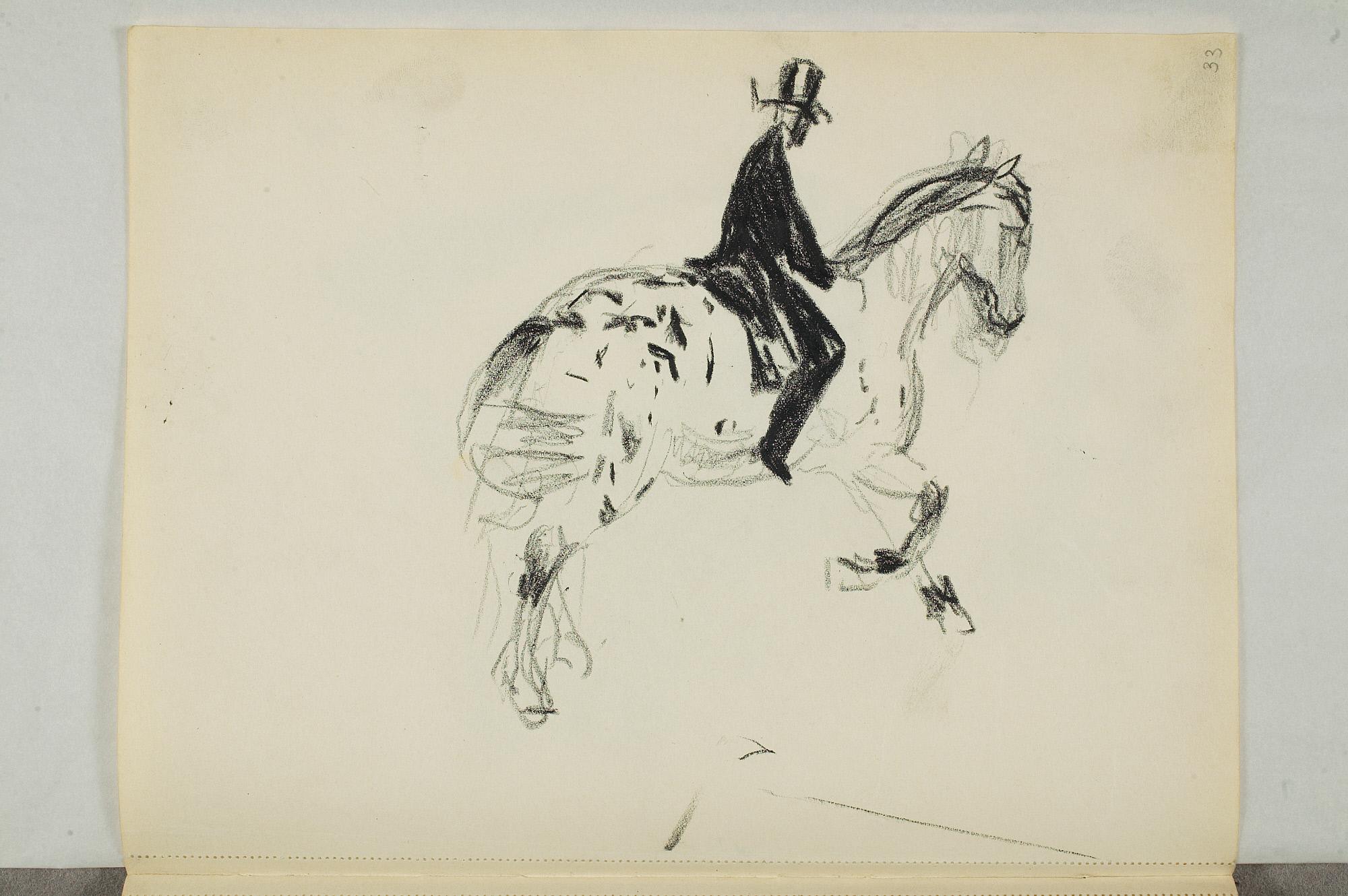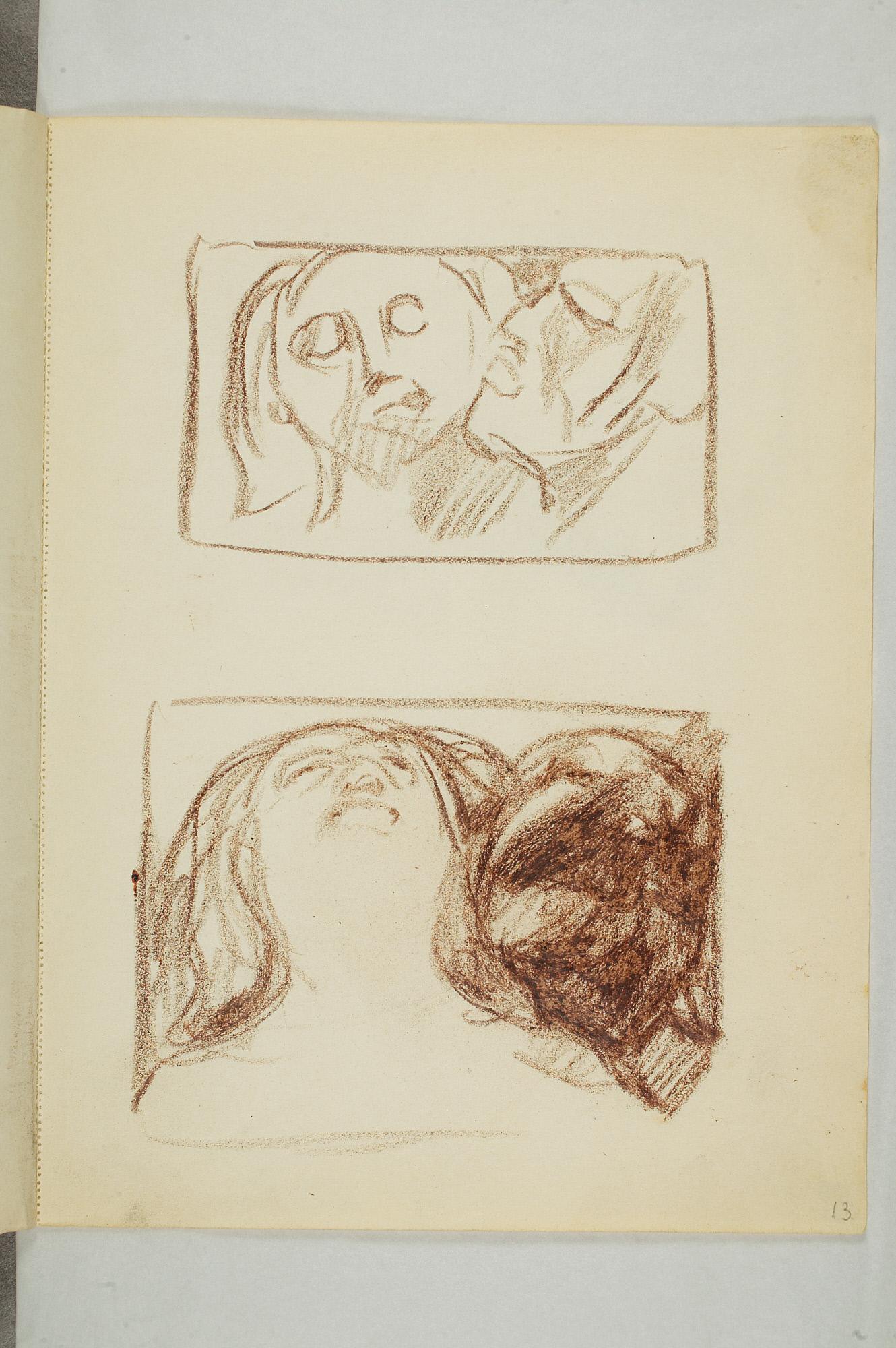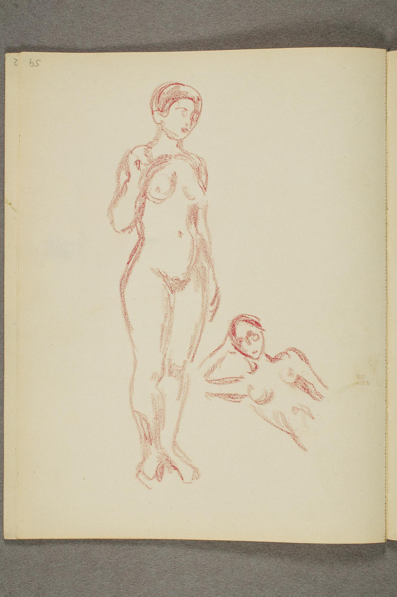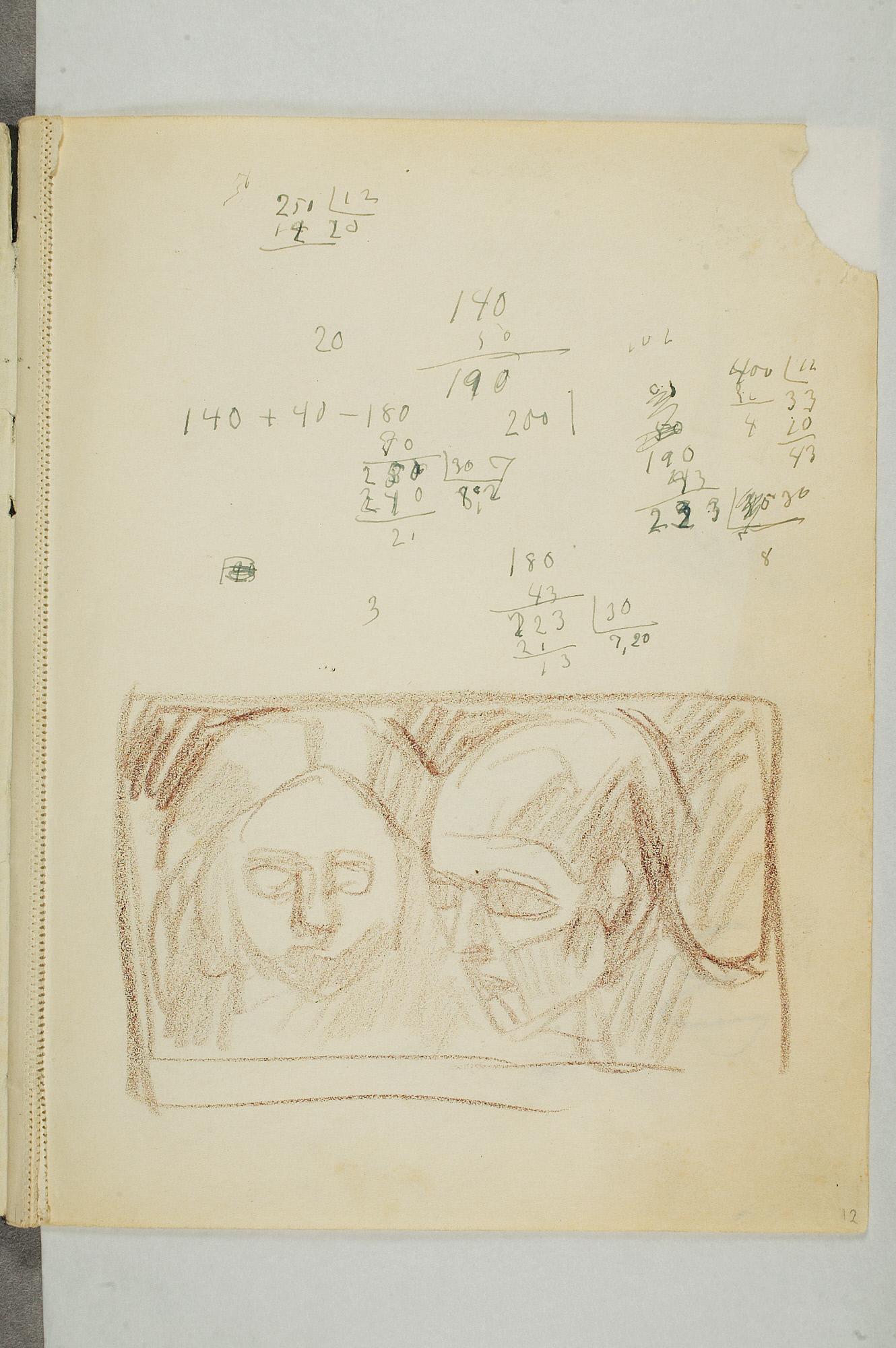 Comment:Skisseboken er av samme type (blå kartong, sort lerretsrygg) og samme mål som MM.T.00198 (1916–20). Flere av tegningene kretser til dels om samme tematikk, som kvinne og mann-motiver, Peer Gynt, eller kabaret. Skissene av den stående kvinnefiguren på side 23 og 24 er lik skissen på side 20 i MM.T.00198–20.
