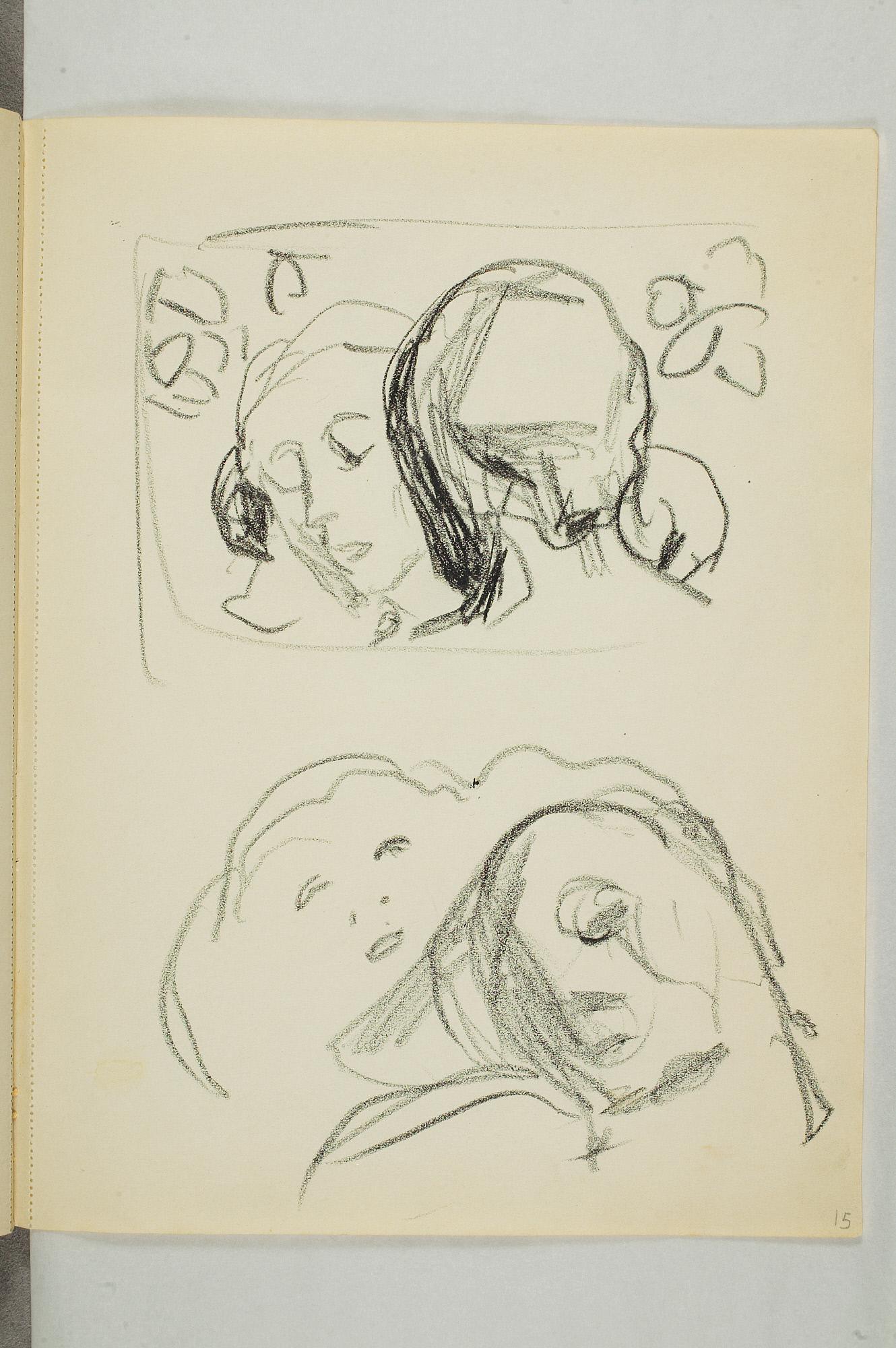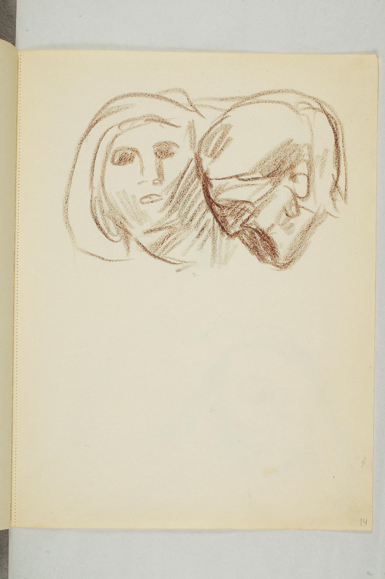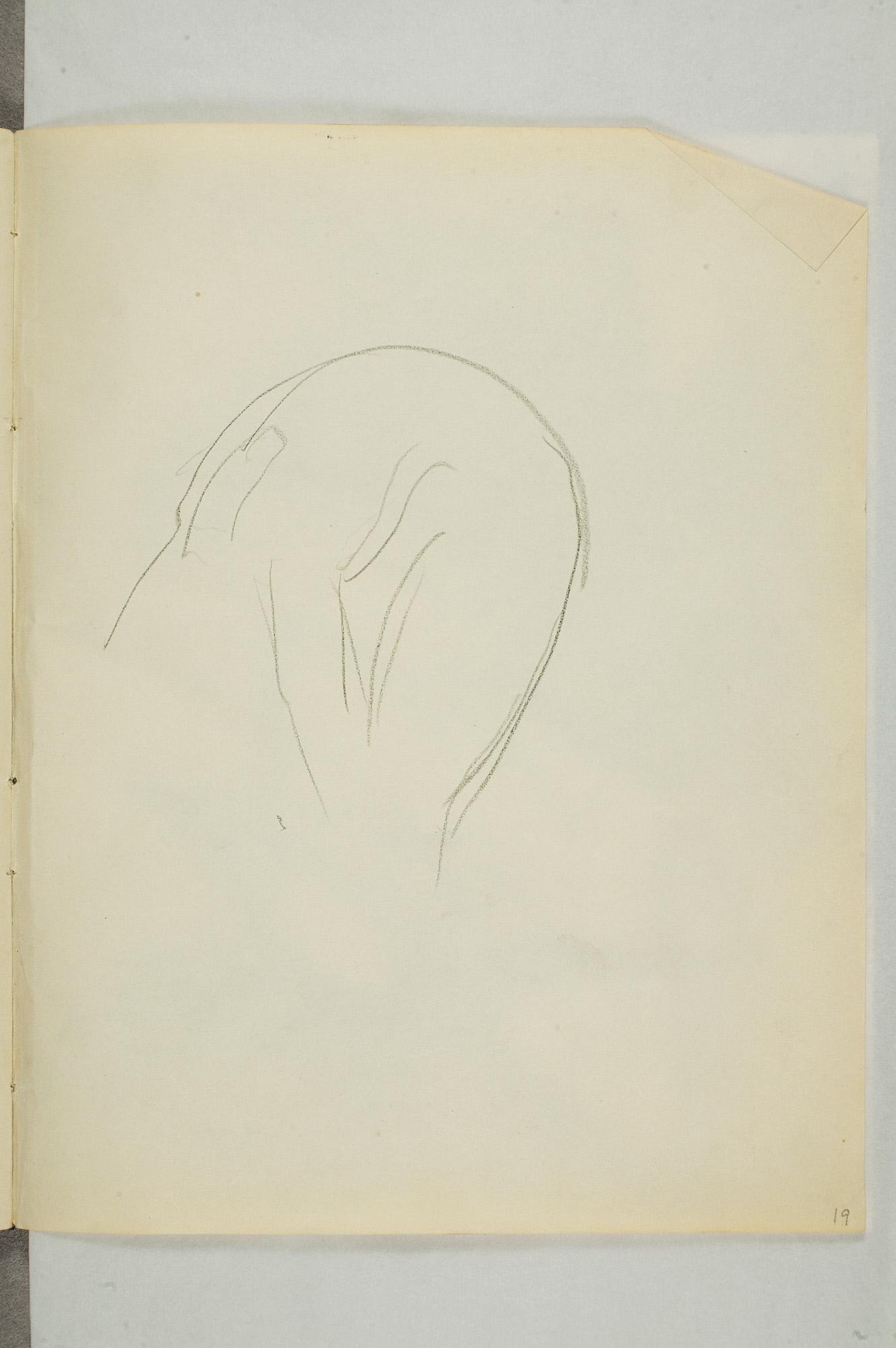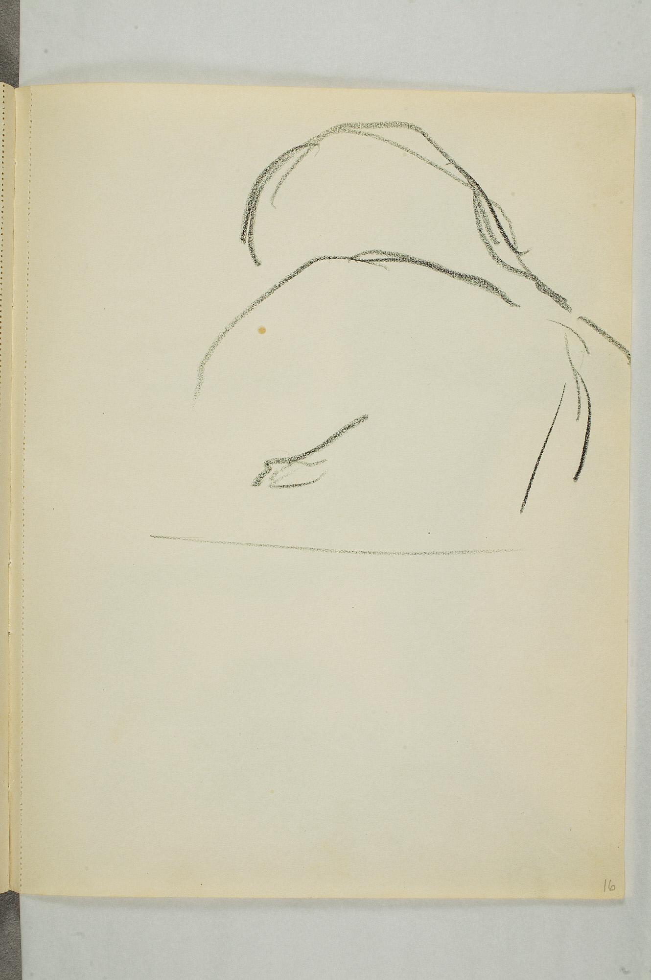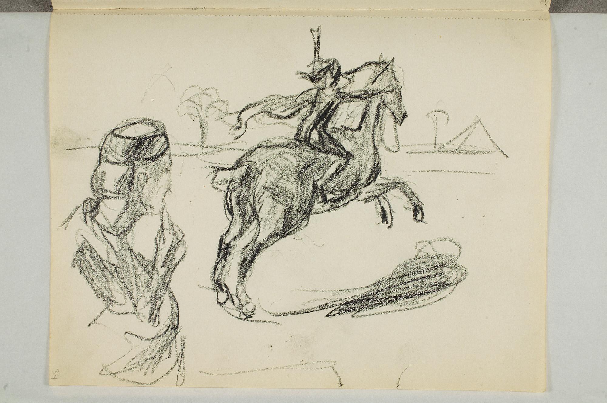 Tegningen av en liggende mann på side 37 minner om skikkelser fra litografiet "I krigen" (MM.G.00502) som er datert 1929, og det kan ikke helt utelukkes at den ble tilføyet senere, men litografiet kan også være basert på skisser gjort under krigen 1914–18. Skisseboken får dateringen 1914–1920. (PP)