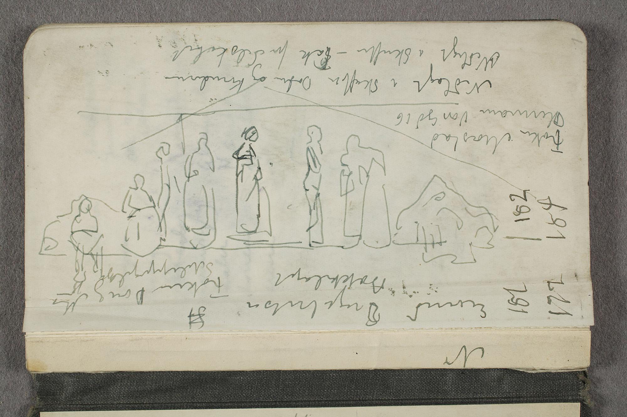 Tre påbegynte skisser med uidentifisert motiv