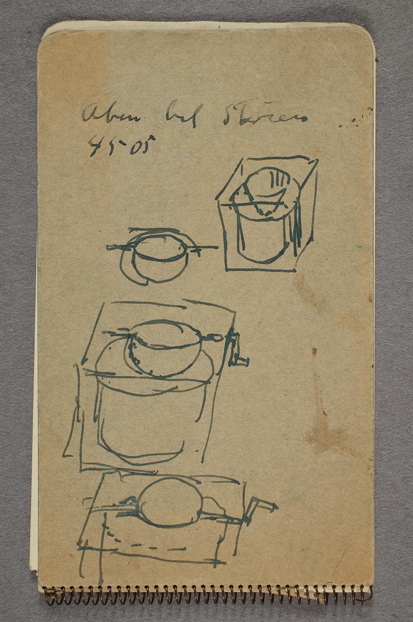 Sketchboo0k with four small sketches on the Cover. Coffee Grinder (?)