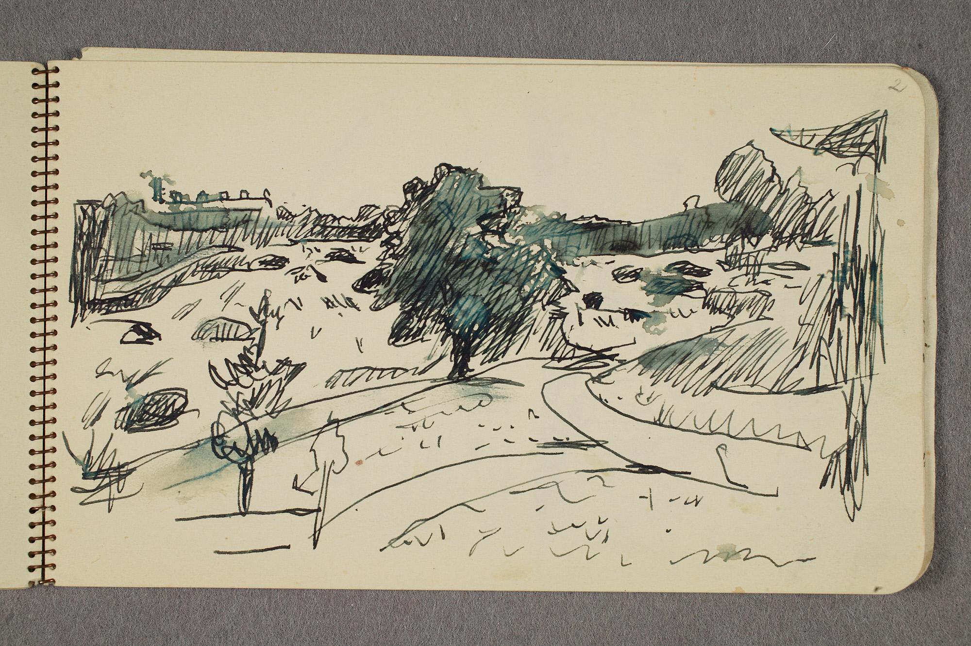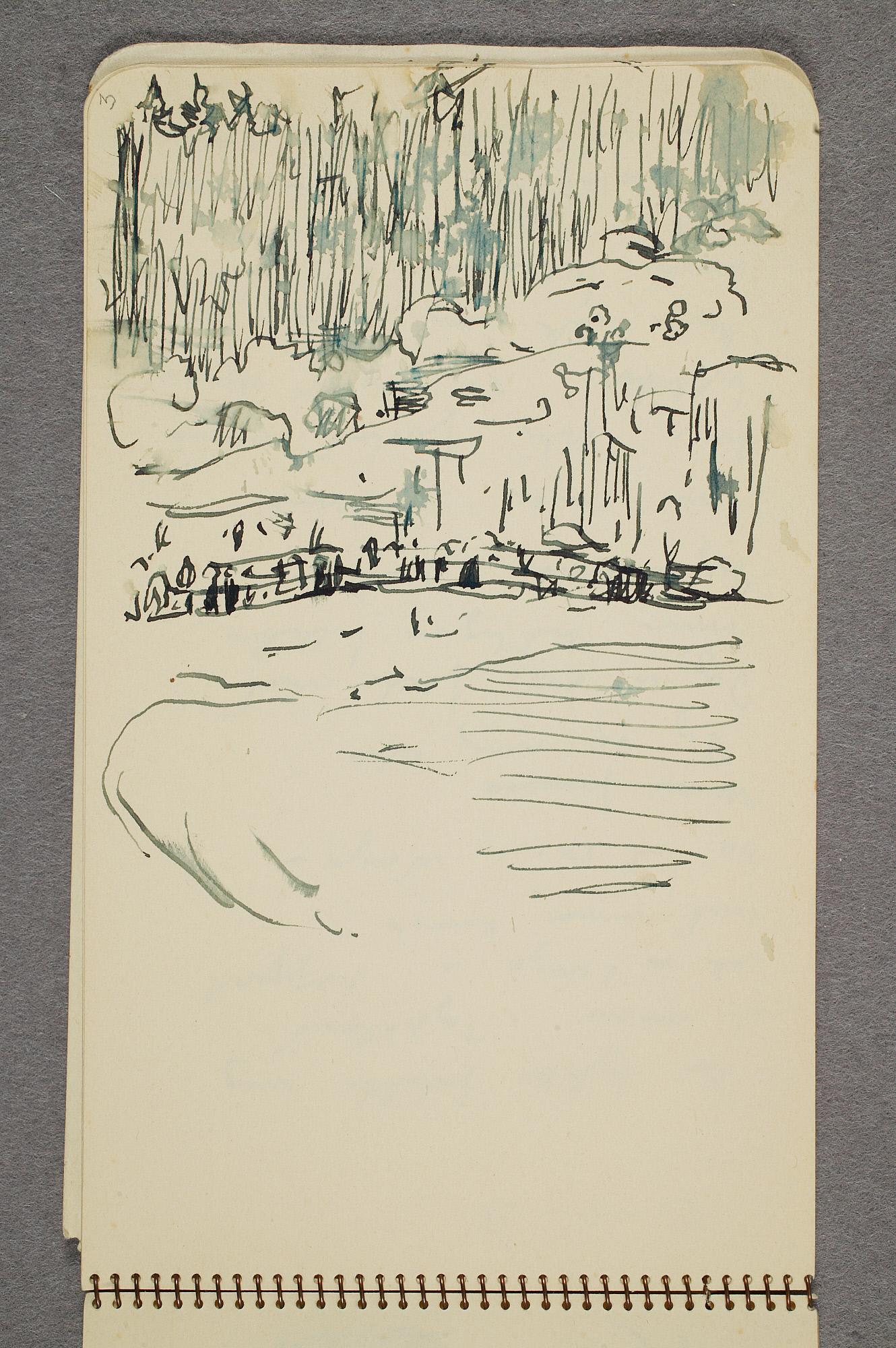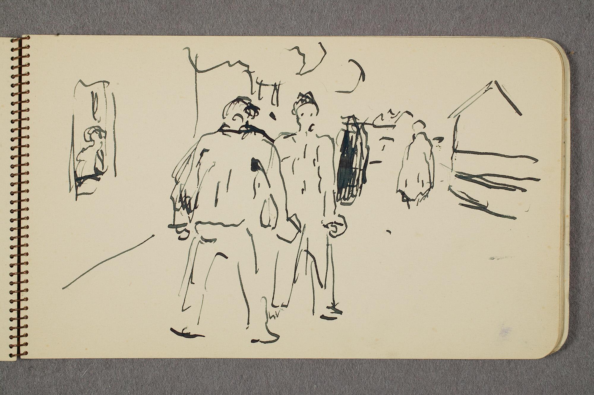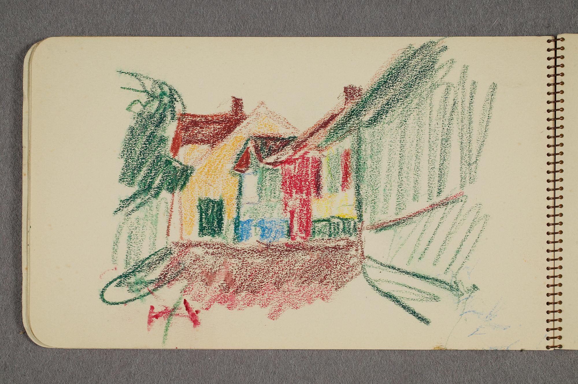 Skisseblokk med fire små skisser på omslaget. Kaffekvern (?)